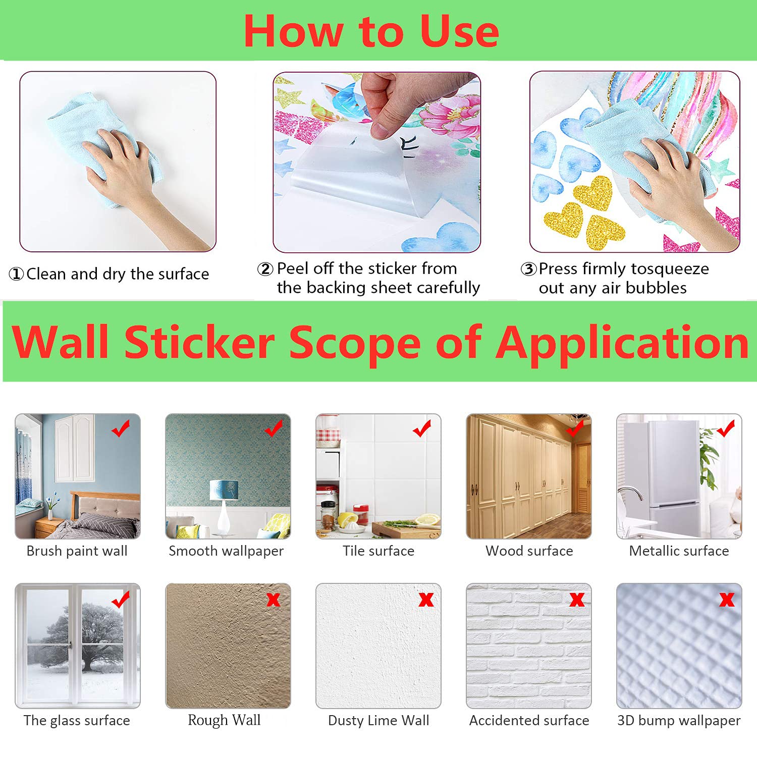 š¦ćPERFECT GIFT for GIRLS KIDSć-- Whether you are looking for your daughter's bedroom decoration ideas, Birthday gifts, Festival Gifts or just looking for girl wall decoration or merchandise,Your girls can put every part anywhere they want. This colorful Unicorn decals are perfect for girls'rooms, game rooms, living rooms, nurseries or places that want to be lovely