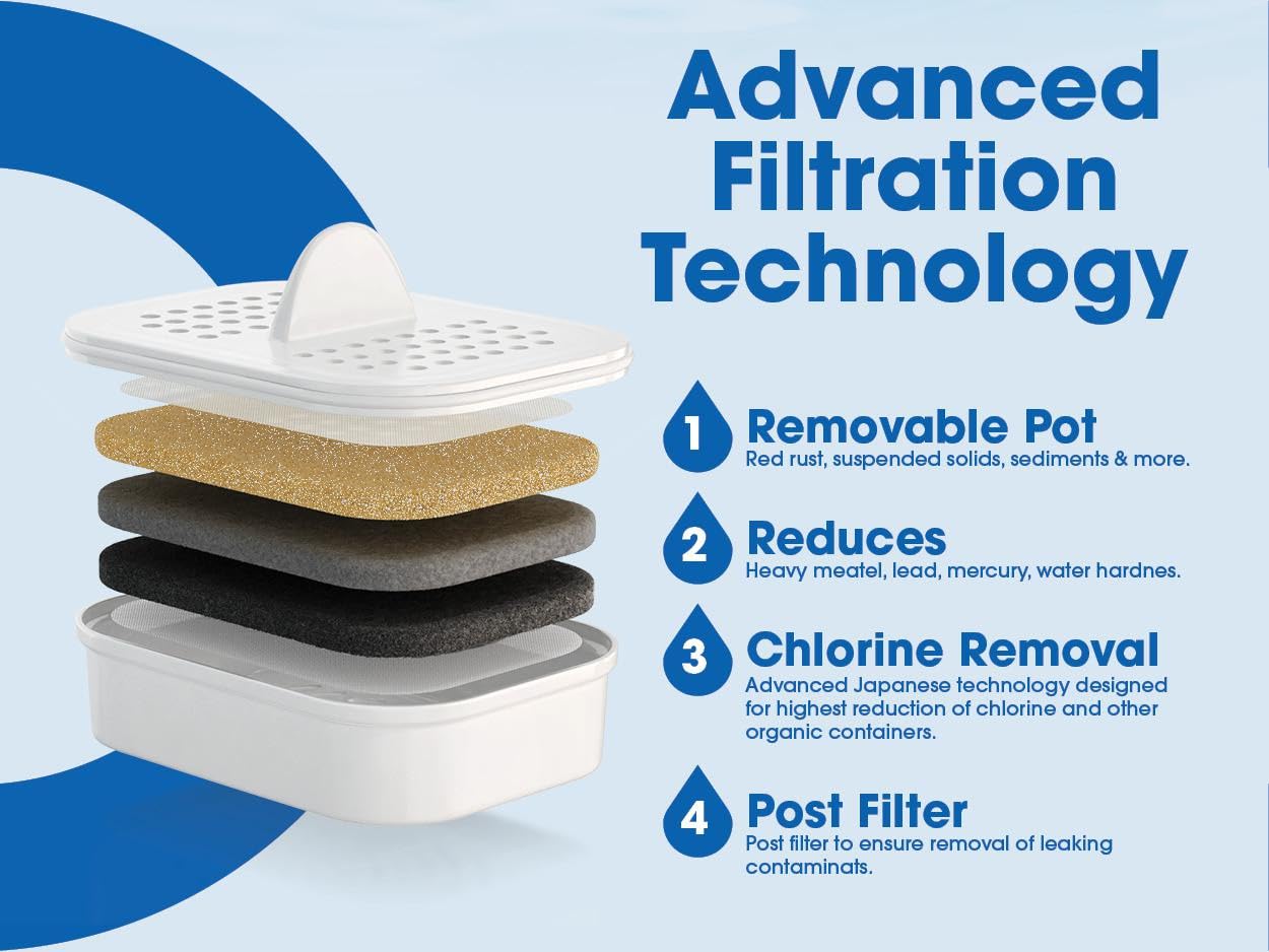 ADVANCED FILTRATION TECHNOLOGY- HIGHEST RATE CHLORINE AND MERCURY REMOVAL! The Nakii filter is the first in the USA to use the newest innovation for water filtration, using Activated Carbon Fiber (ACF) which isn't used in Brita filters or other brands, ACF features 98% of Chlorine, Mercury removal TO IMPROVE DRASTICALLY THE HEALTHINESS, Taste and odor, the highest rate in the market to reduce, lead, rust, sediment and suspended particles, eliminates unpleasant color and lime-scale.
