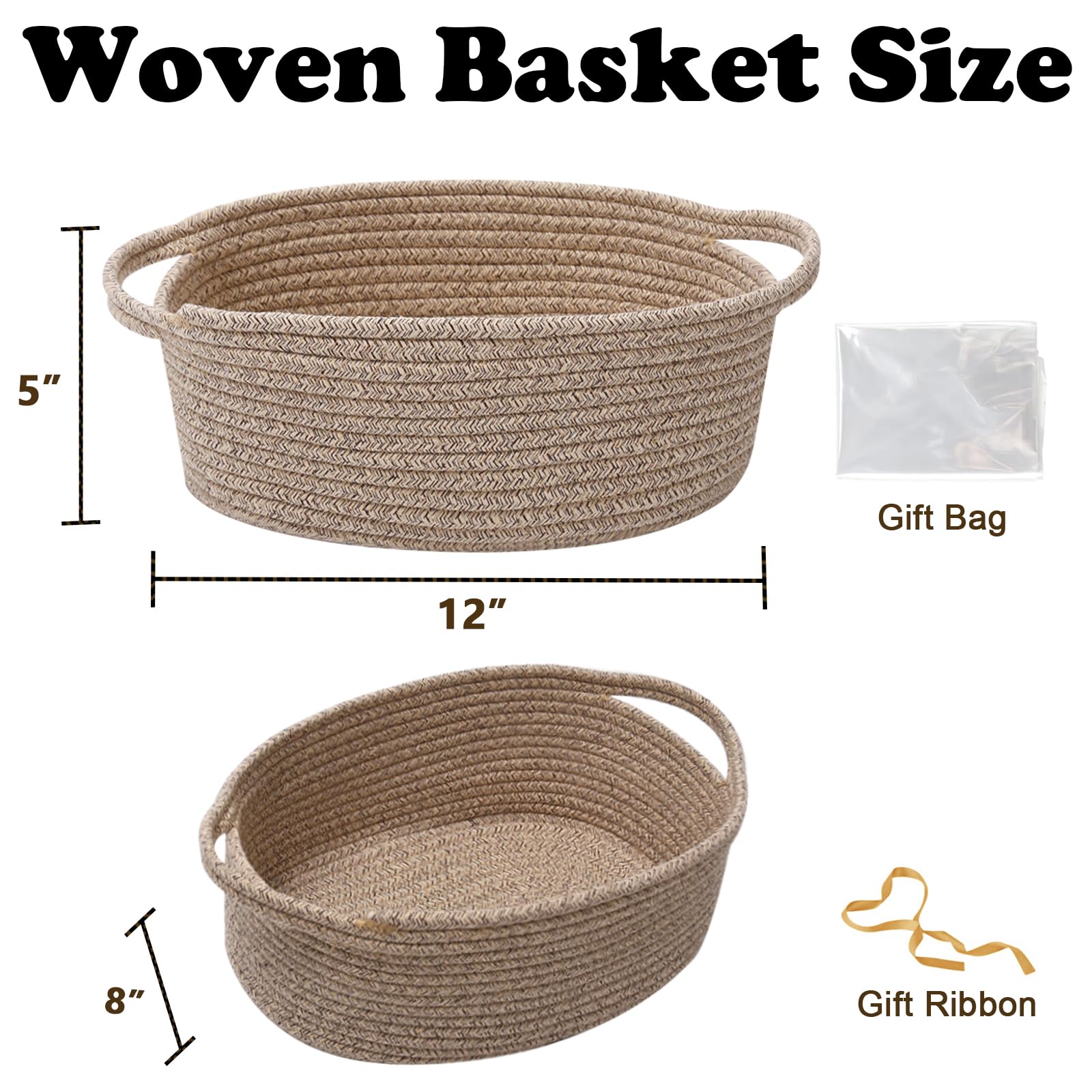 【Small Gift Basket】Handcrafted for Strength, Stability and Beauty.Storage basket measures 12" L x 8" W x 5" H, Use it to organize small items, The basket itself is also a great gift
