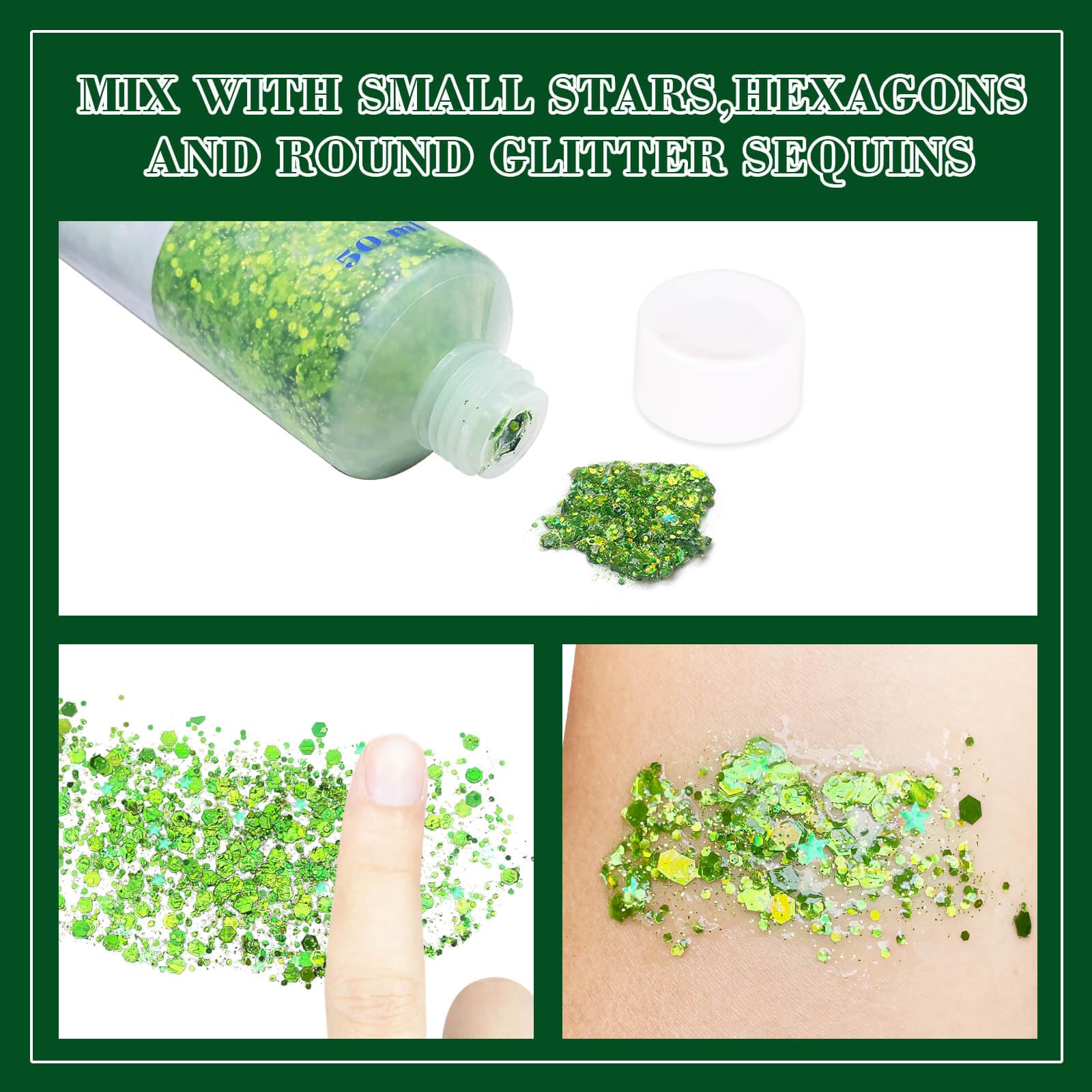 Versatile Sparkle for Any Occasion: Whether you’re getting ready for st.patrick's day,a music festival, a costume party, a themed event, or simply adding a touch of glam to your everyday look, this chunky glitter makeup is the perfect accessory. Its bold and vibrant hue adds a dazzling sparkle that stands out at any celebration. The versatility of this glitter allows it to complement a variety of outfits and occasions, from Halloween costumes to casual outings. Ideal glitter makeup for face, body, and hair.