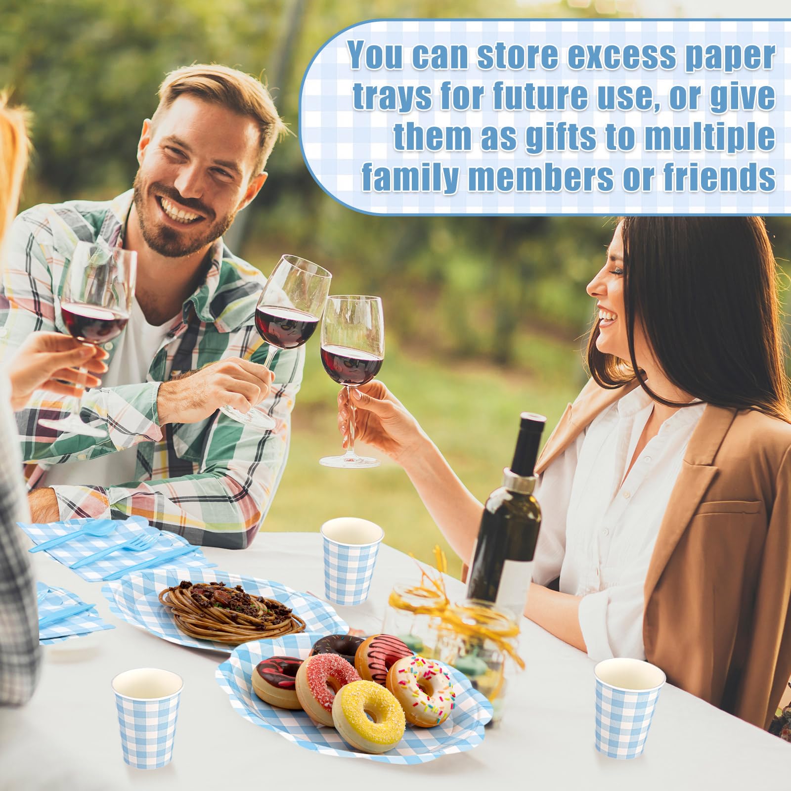 Quality Materials: the gingham plates, napkins and cups are made of thick paper, not easy to tear, and the knives, forks and spoons are made of quality plastic, which is reliable and you can use them with confidence