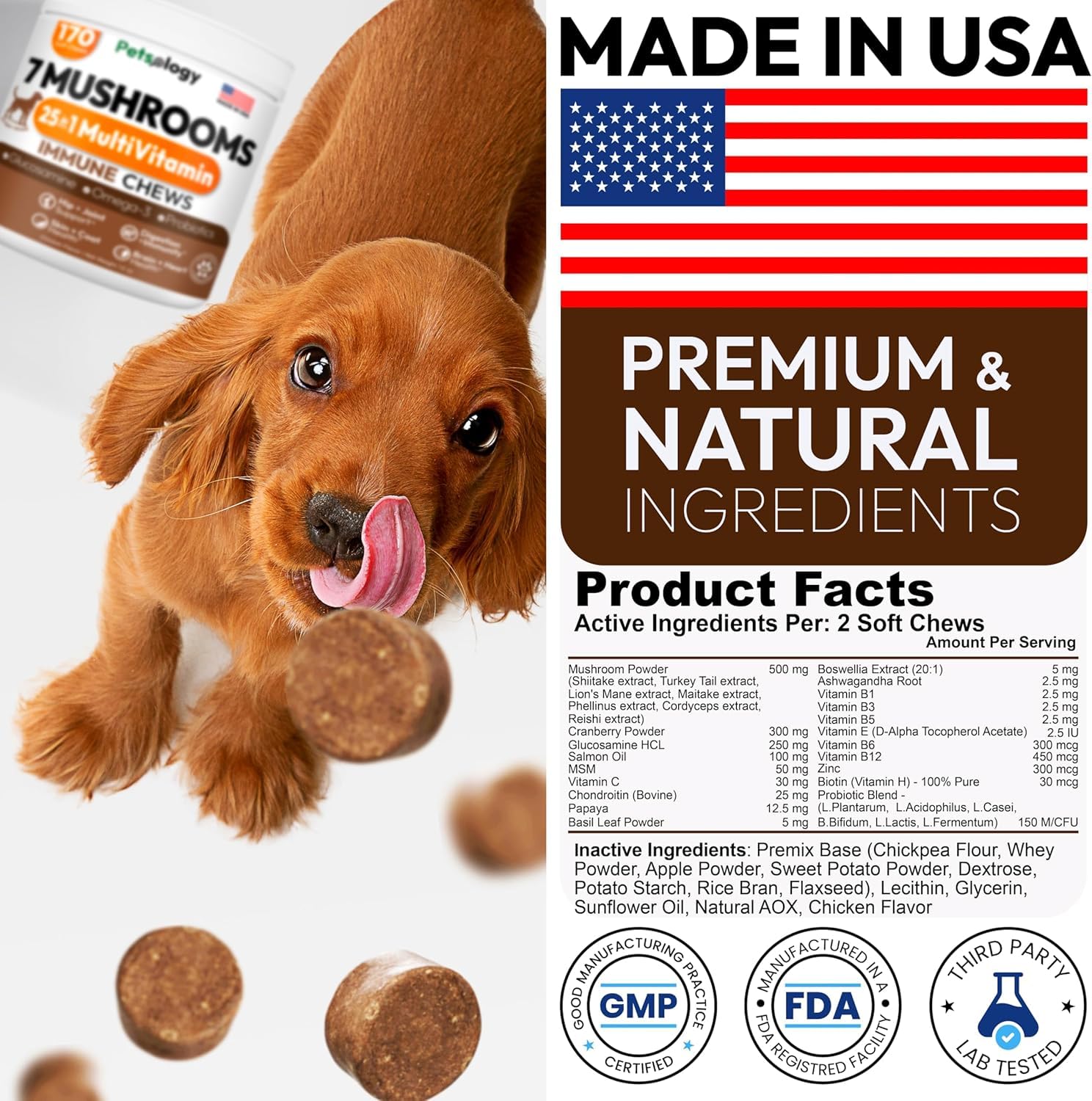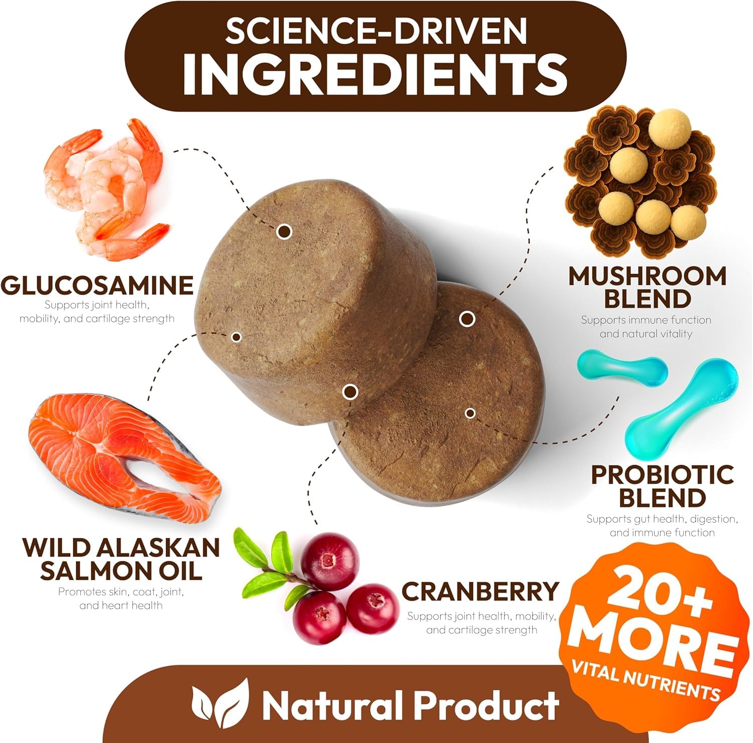 Premium and Natural Ingredients Formulated by Veterinarians: Carefully crafted with 7 functional mushrooms, glucosamine, and superfoods — no sugar, wheat, corn, or GMOs — just pure wellness support.
