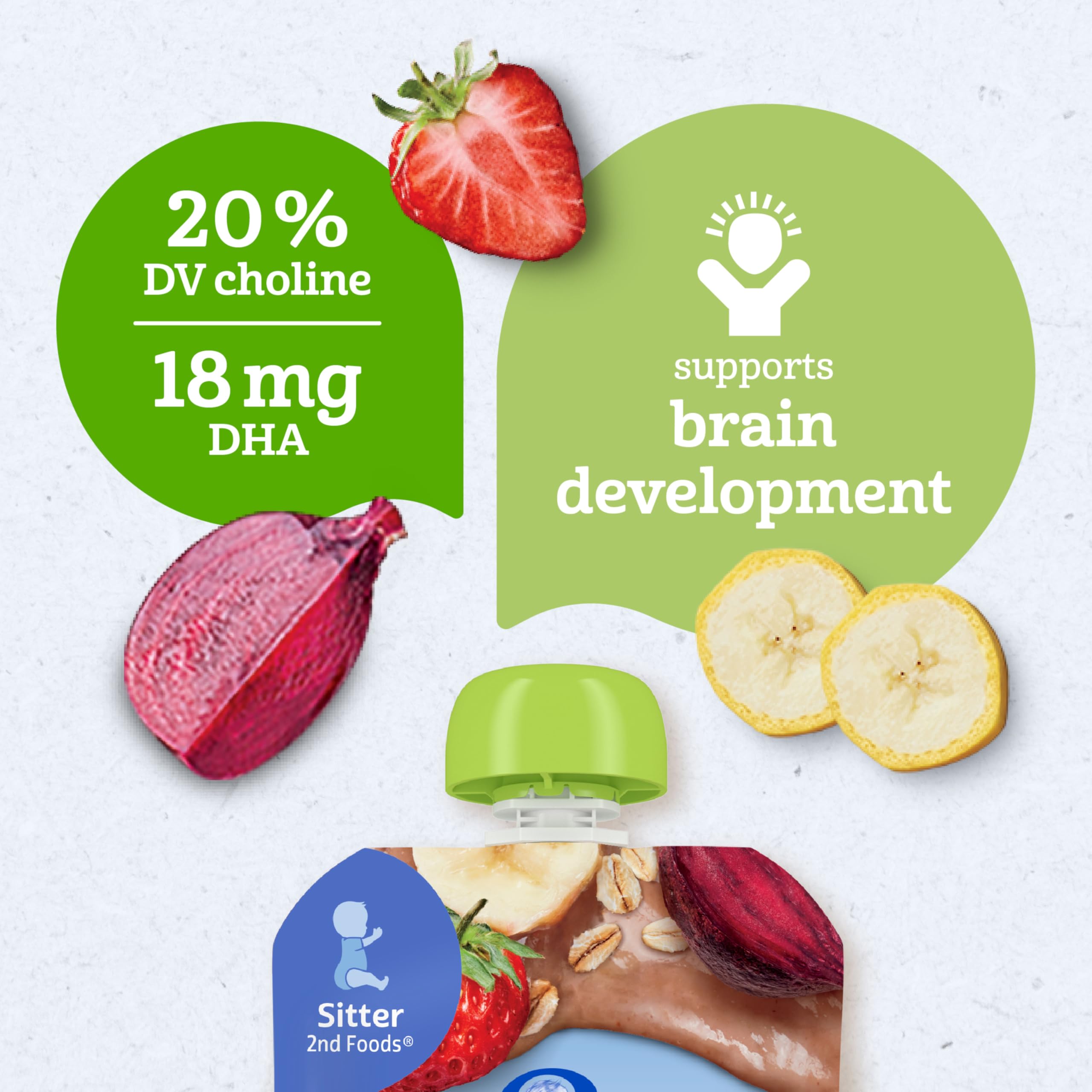 HELPS SUPPORT BRAIN DEVELOPMENT: These organic baby food pouches have 20% of the daily value of choline and 18mg DHA to help support brain development
