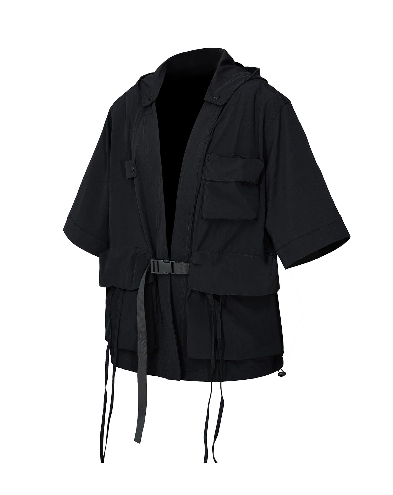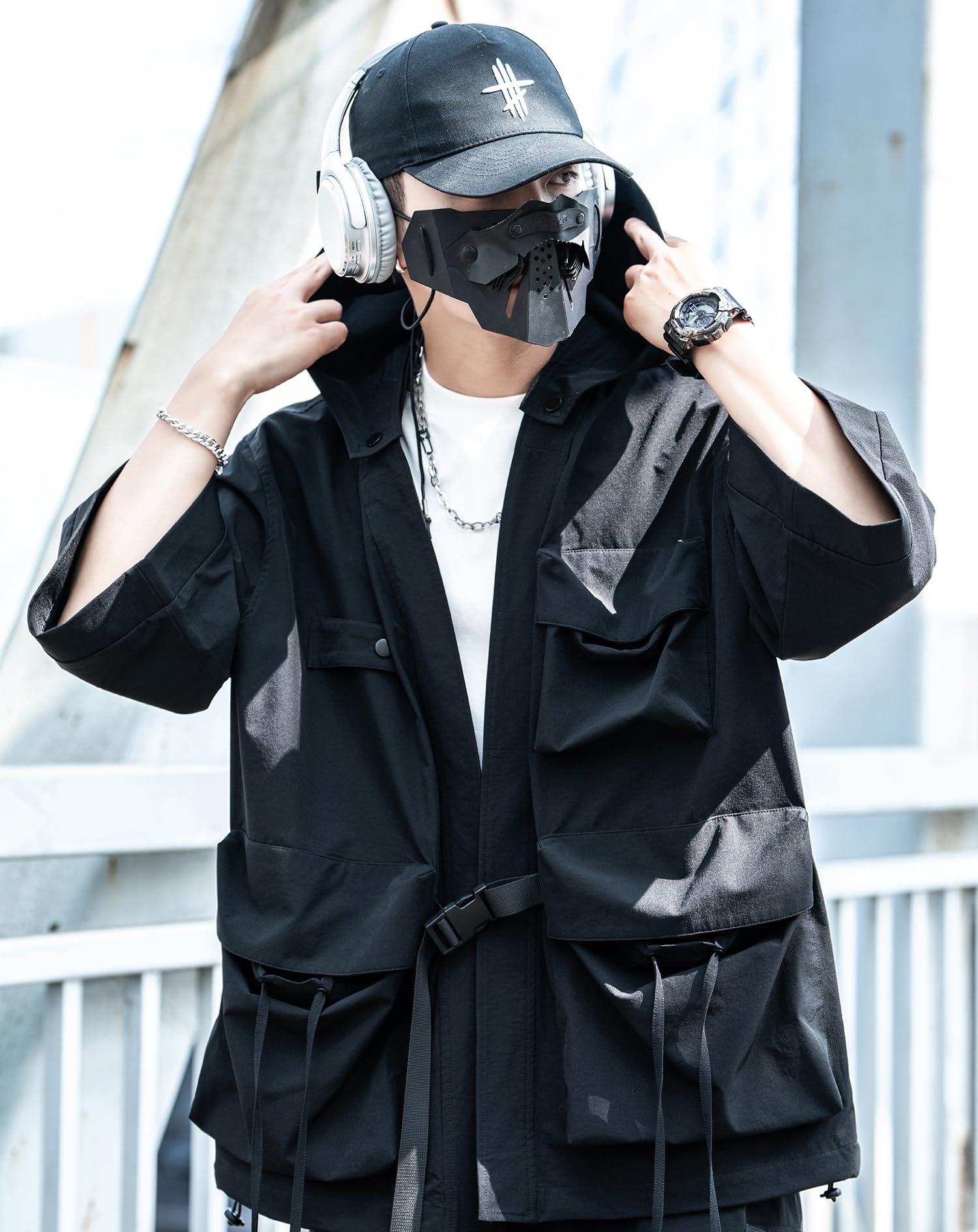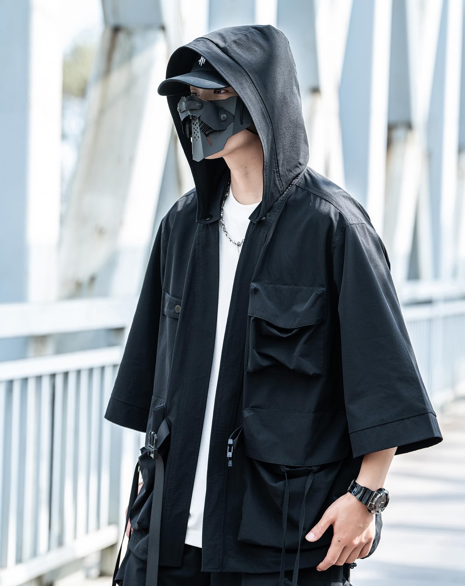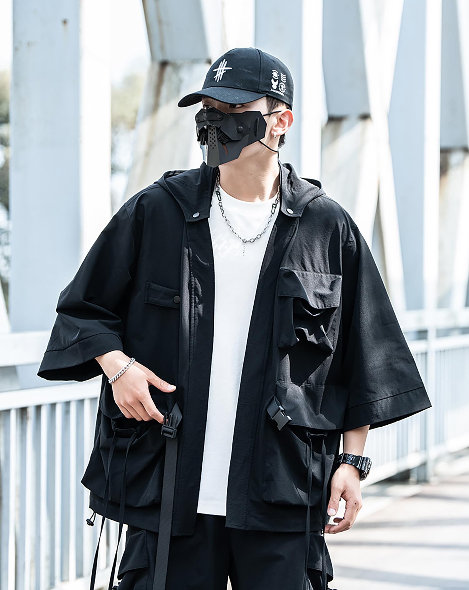 Drop down straps in the front add an edgy touch, blending modern techwear aesthetics with traditional Japanese kimono style influences.