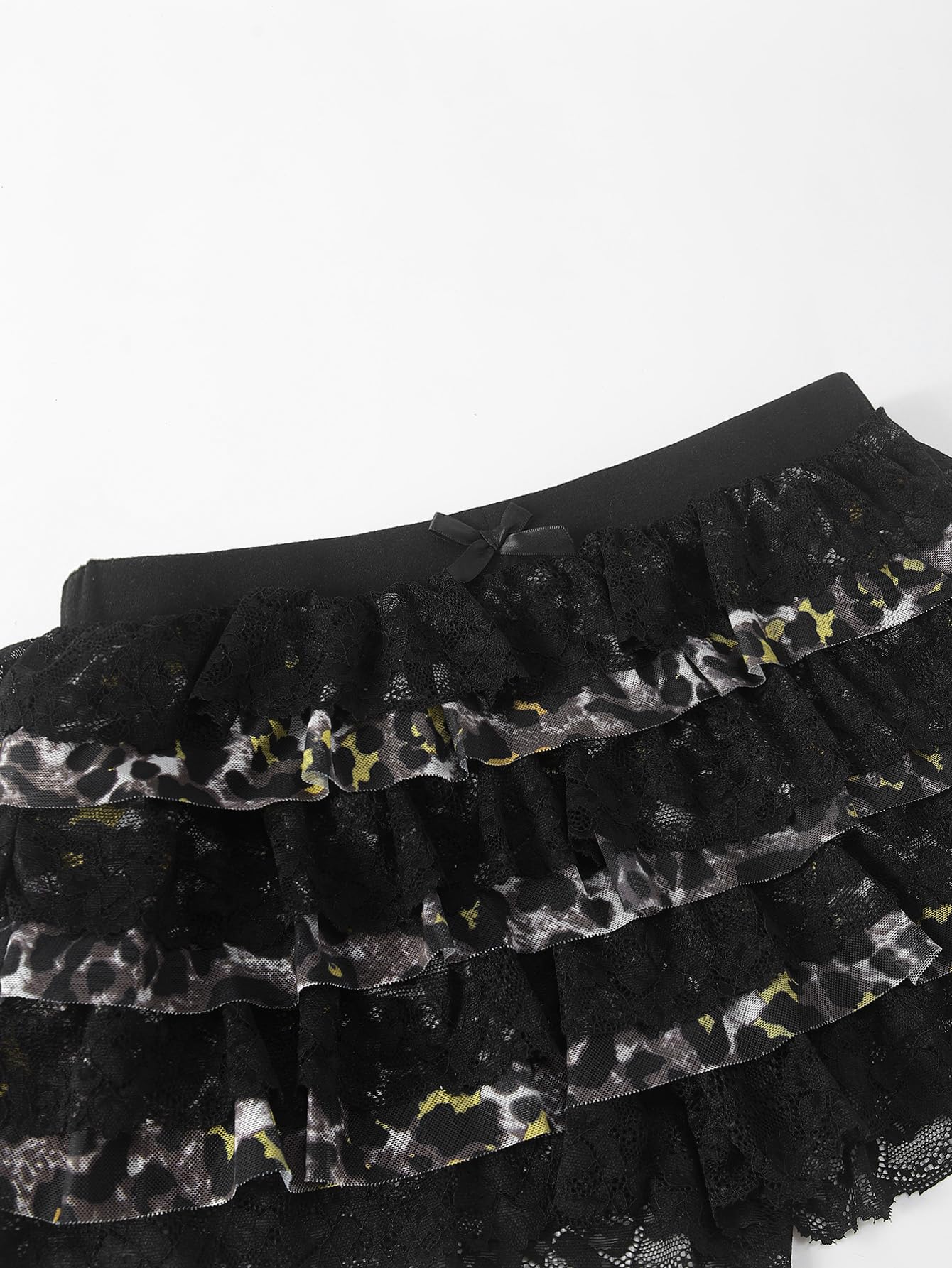 Features: This lace panty is decorated with layered ruffles of lace, a small bow at the front, an elasticated waistband, a rise, and a solid color design. This panty has a cute, sweet, and trendy feminine style, and it looks a lot like a mini skirt when