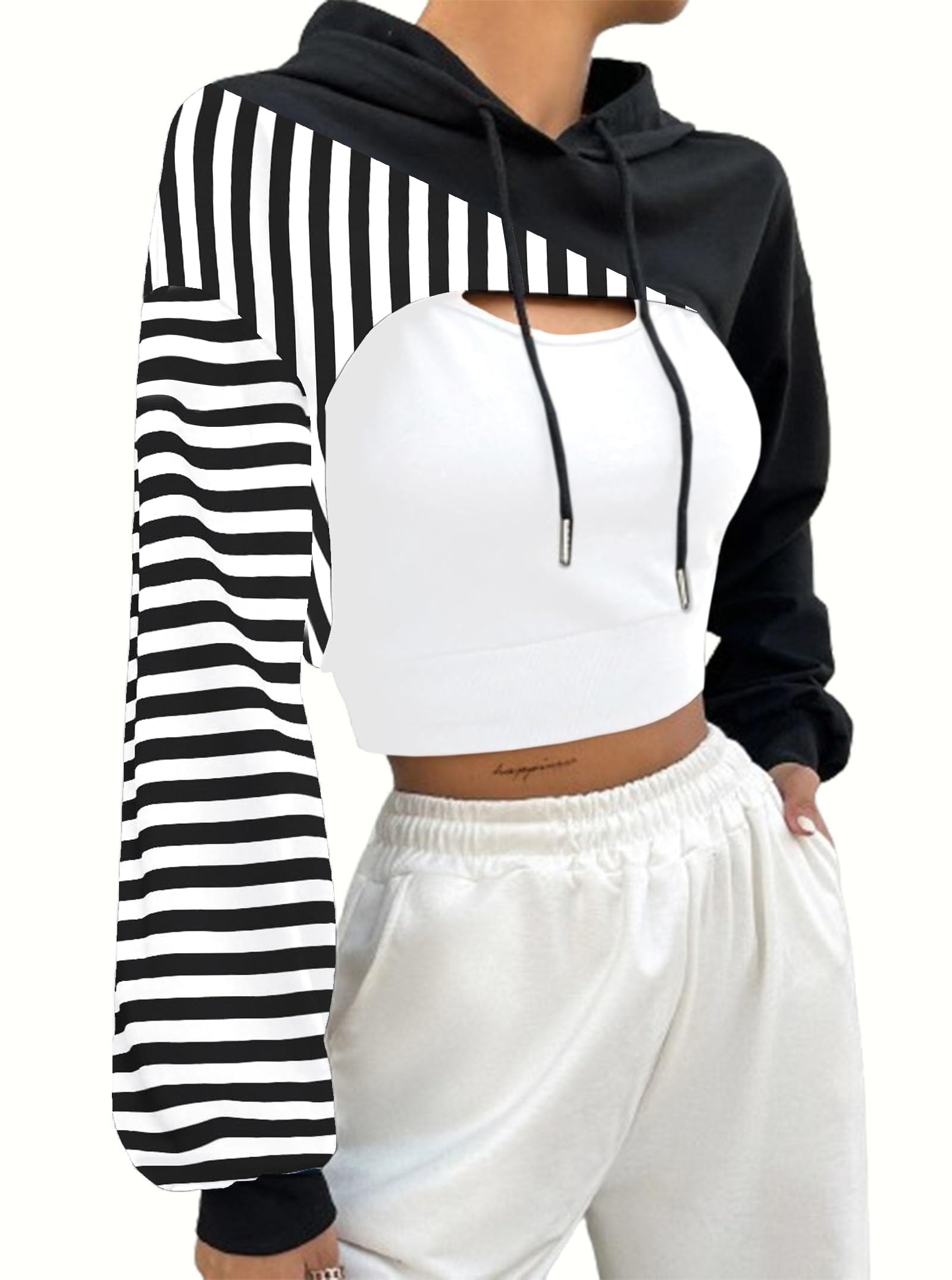 FEATURES: Crop hoodies for women, long sleeves, cropped length, drop shoulder, loose fit, drawstring hooded, one piece, workout crop tops for women