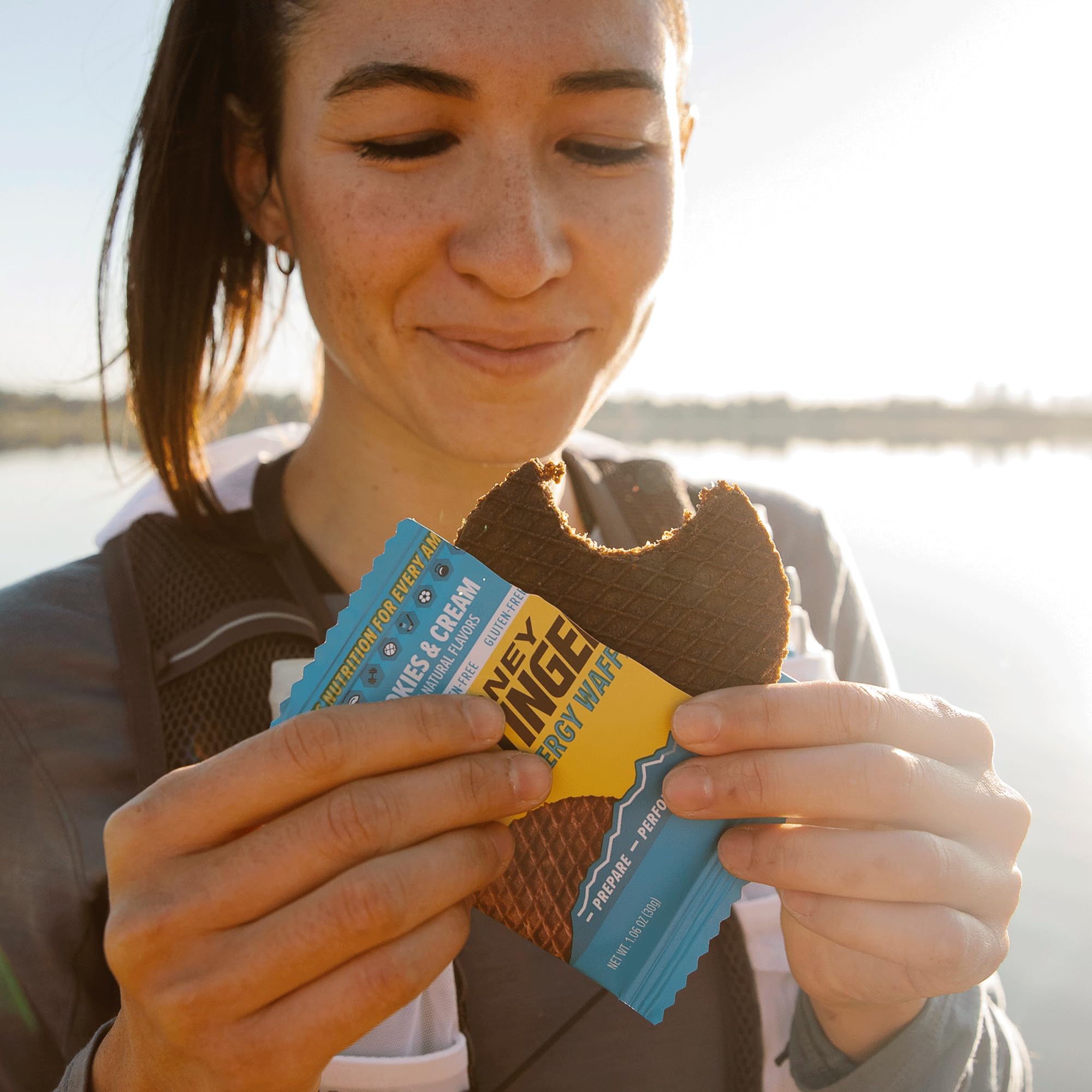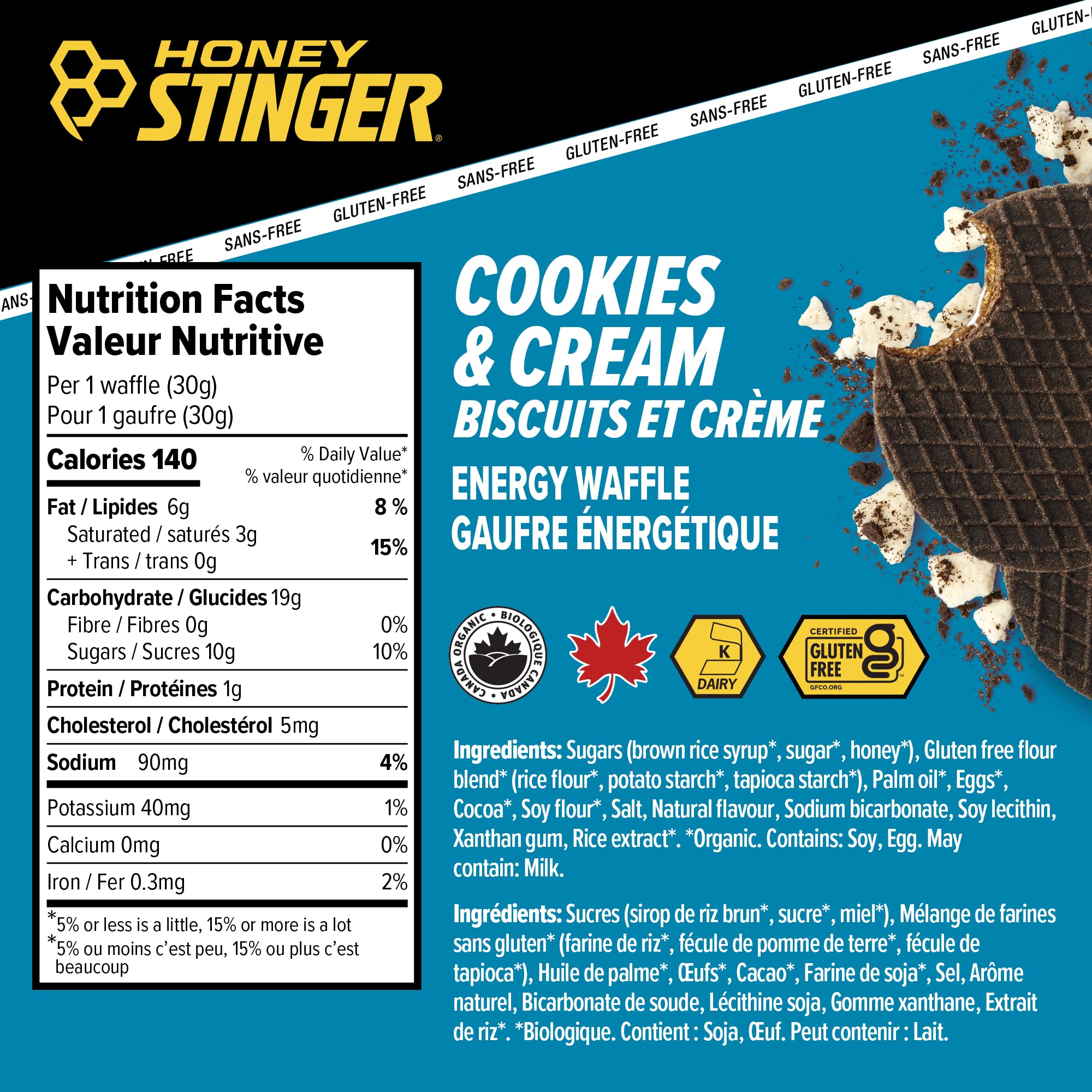 DELICIOUS Cookies & Cream is everyone's new favorite! Vanilla cream flavored filling is sandwiched between two gluten free dark chocolate waffles. The perfect combo of gooey filling and crispy waffle, it’s the fuel you’ll crave while on-the-go