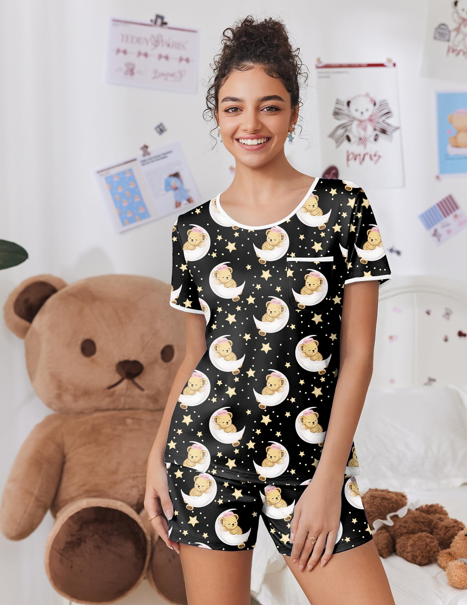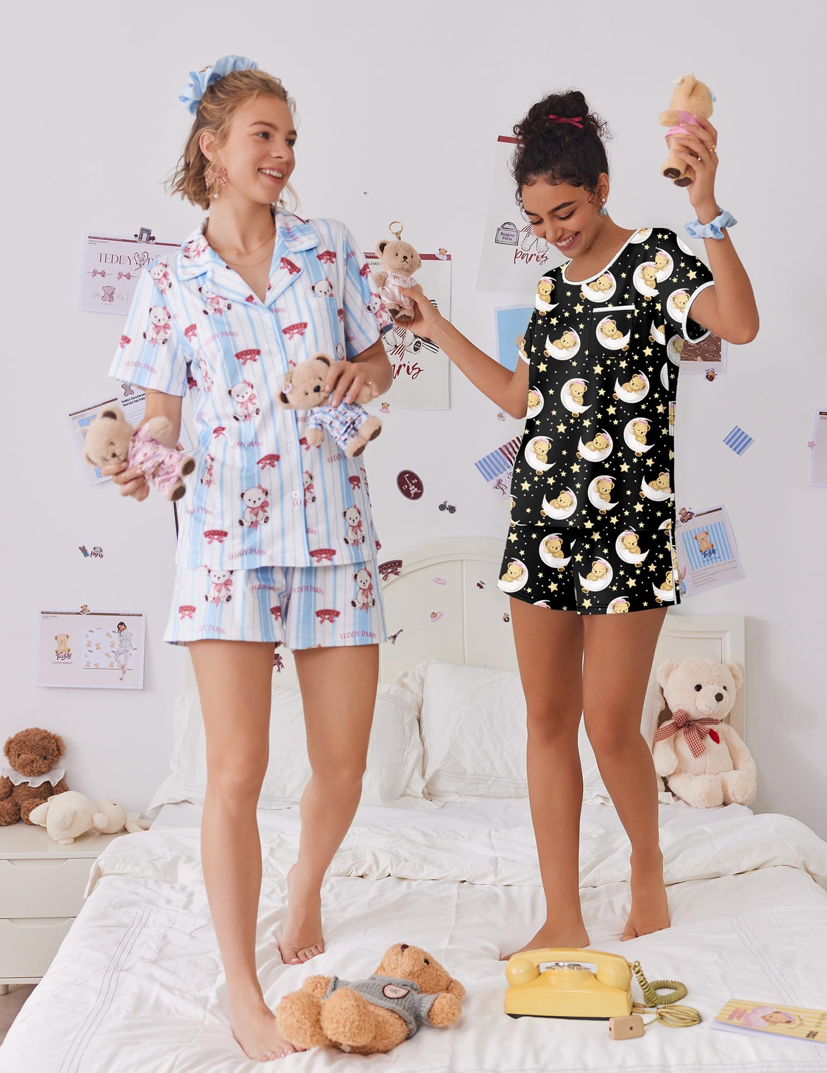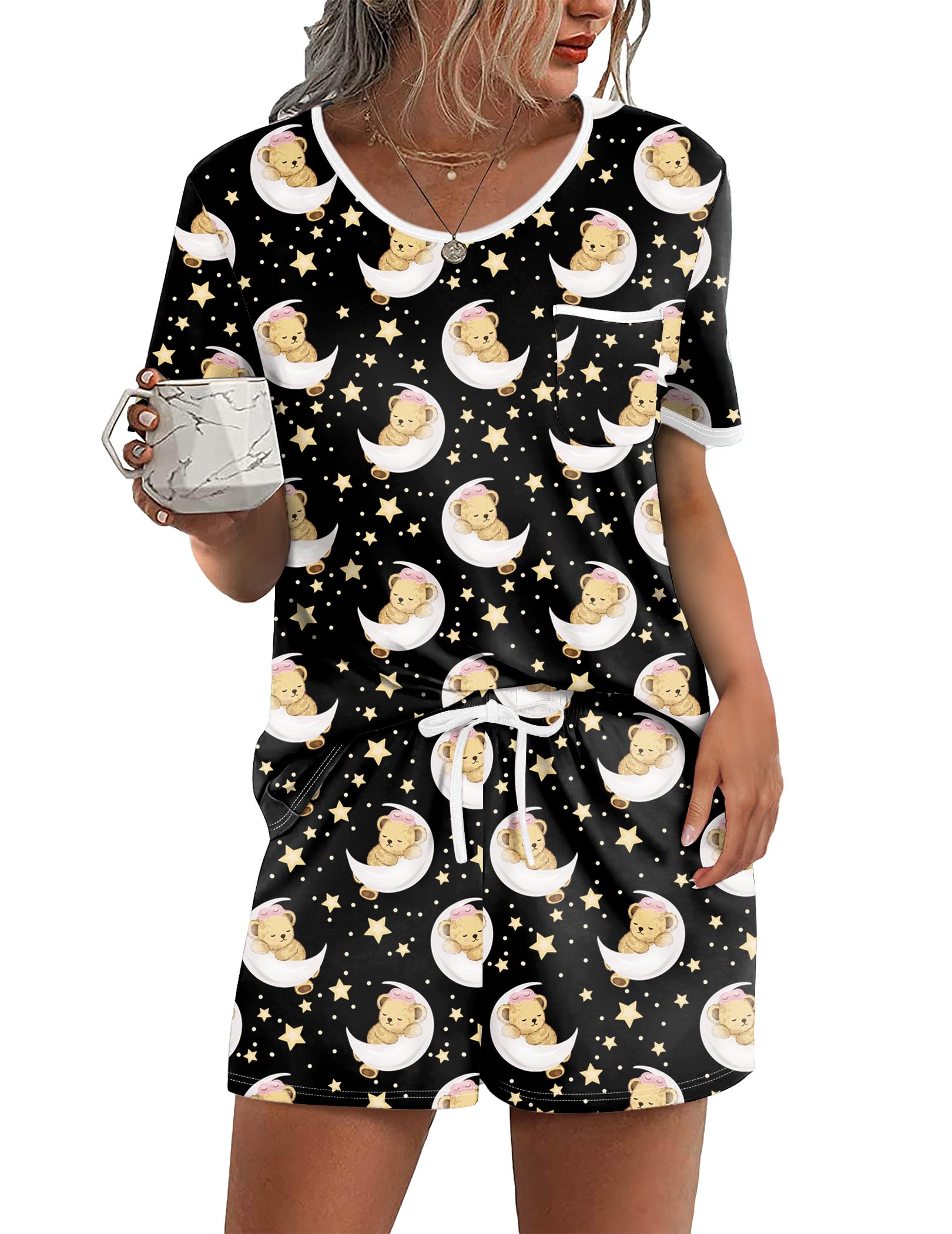 Two Piece Pajama Set: Sleepwear with tops and shorts has a loose fit for added comfort. Extra soft, comfy, and breathable sleepwear set for bedtime