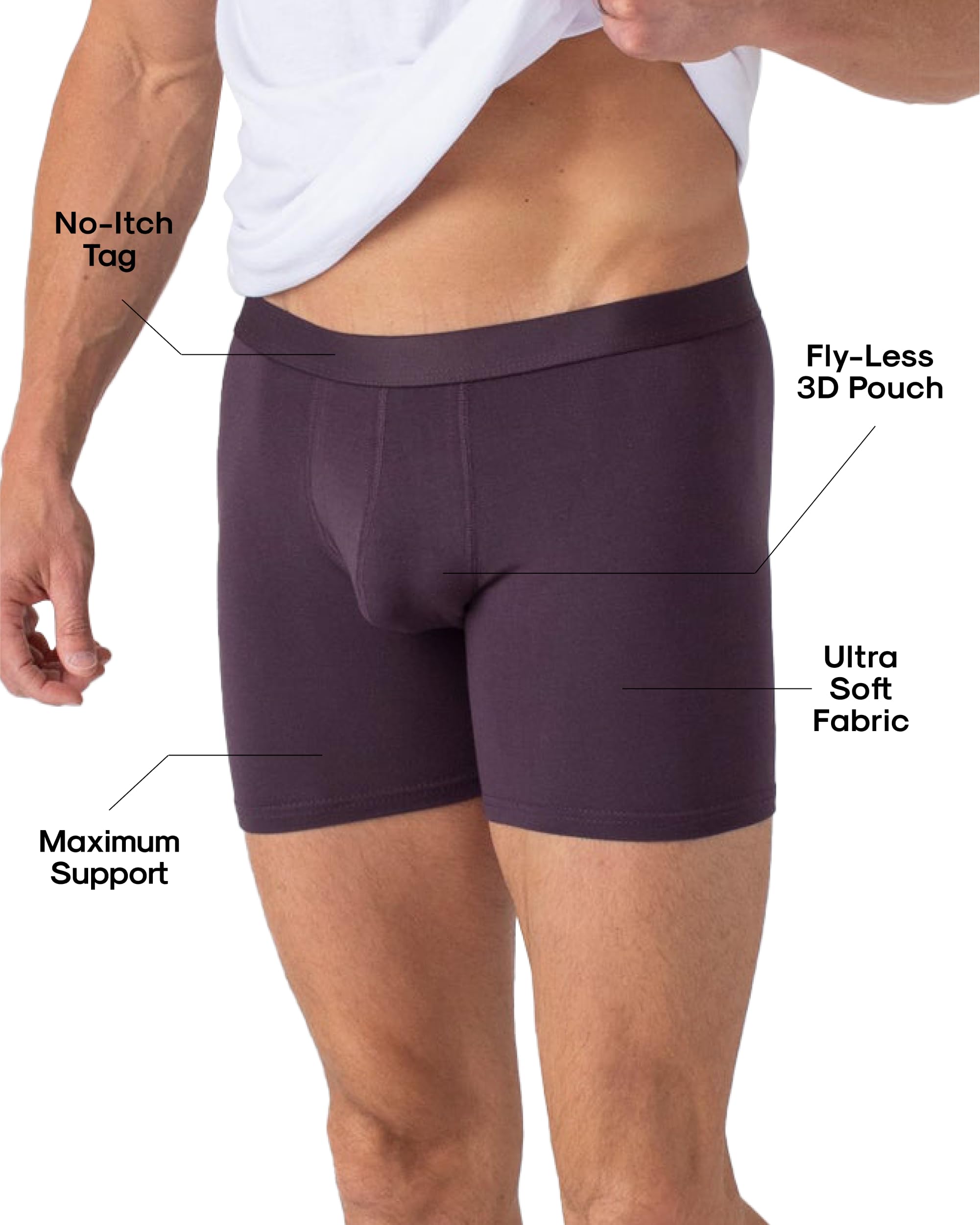 NO BUNCHING, NO RIDING UP: Our mens underwear packs are designed to hold shape wash after wash. The no-dig stretch waistband, smooth seams, and minimal shrinkage (about 5% on low heat) keeps the fit consistentβdurable comfort in men's boxer briefs.