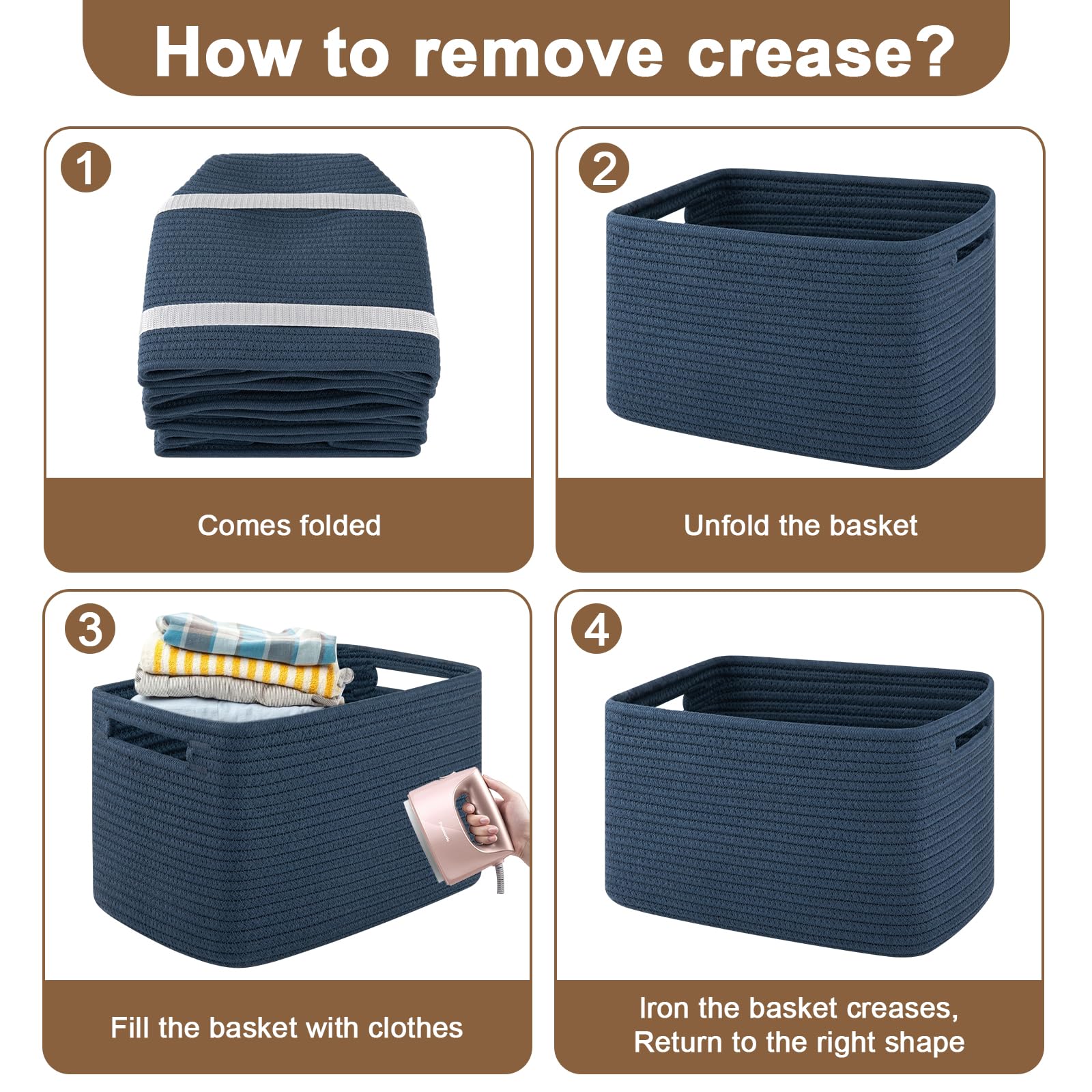 NOTE: The woven baskets is folded for shipping, It will turn back to its elegant shape quickly by filling it with towels or blankets, and ironing is a great idea to regain the creases. Also, you can fold it into a flat shape for easy storage when not in use