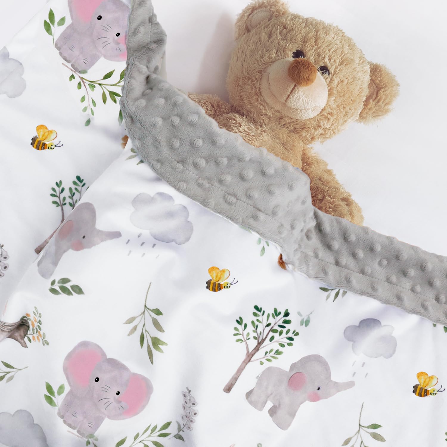 SKIN FRIENDLY FABRIC: Our baby blankets are made of soft fabric that are more suitable for baby's delicate skin. Each toddler blanket features a double layer design with a dotted backing that your child will love