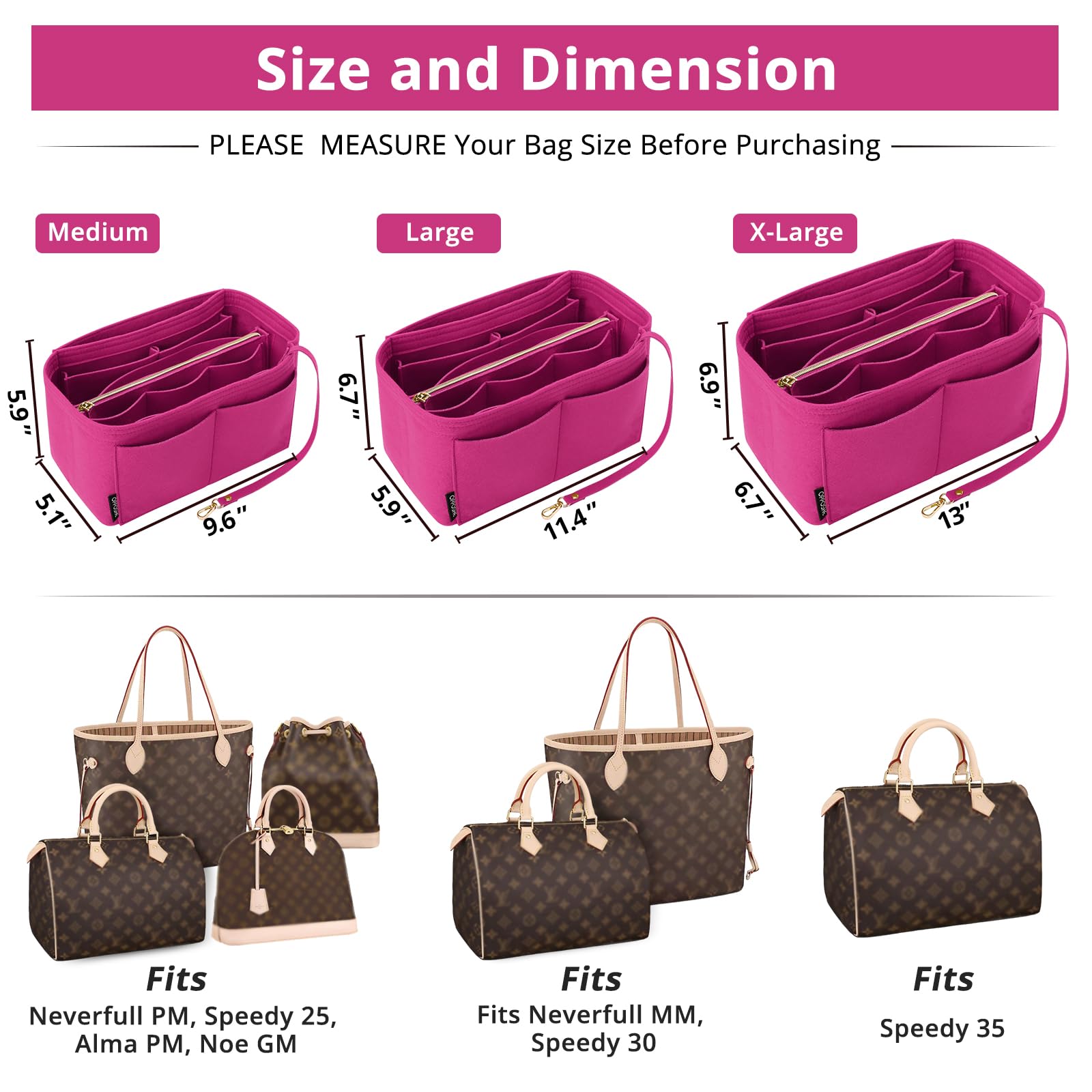 7 Sizes, Better Fit: In addition to the standard 5 sizes, we've introduced a smaller purse organizer insert for compact handbags like Onthego PM and Alama BB, as well as an XXL insert for larger totes like Onthego GM, Neverfull GM, and Coach Field Tote 40