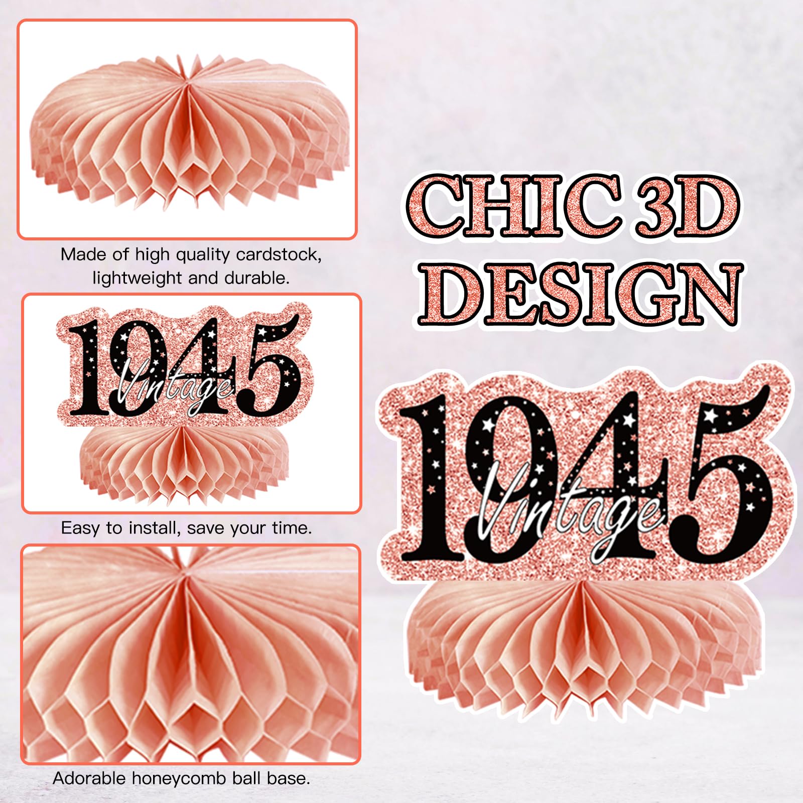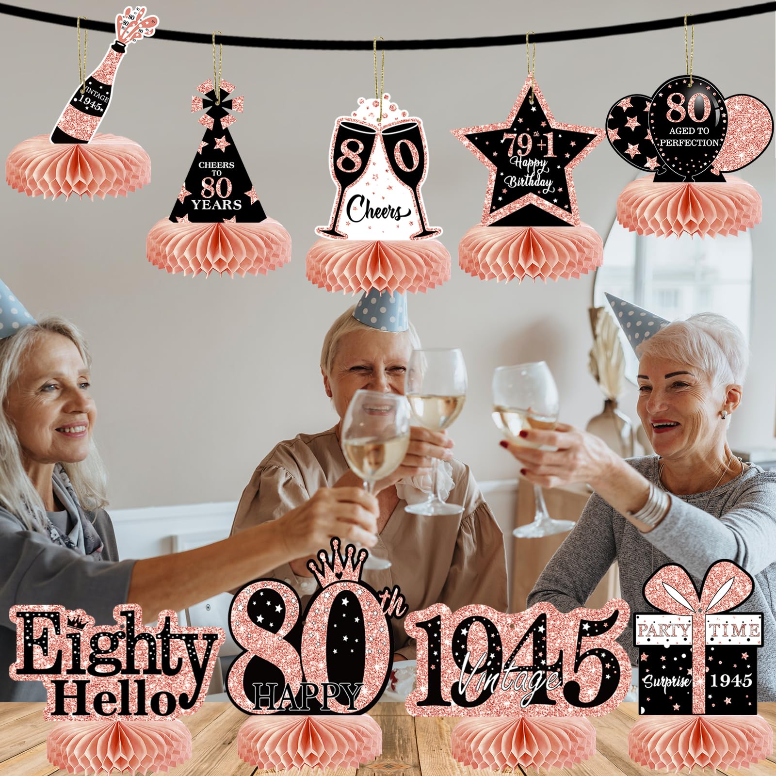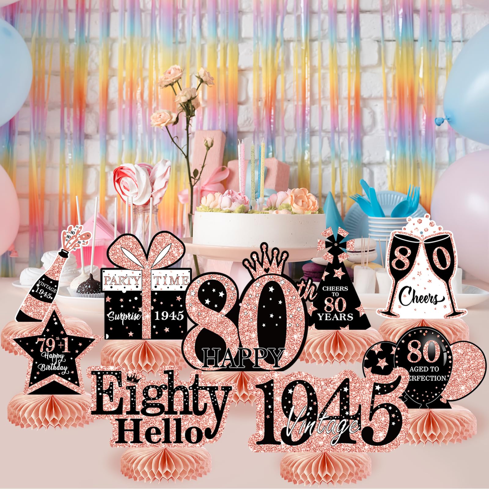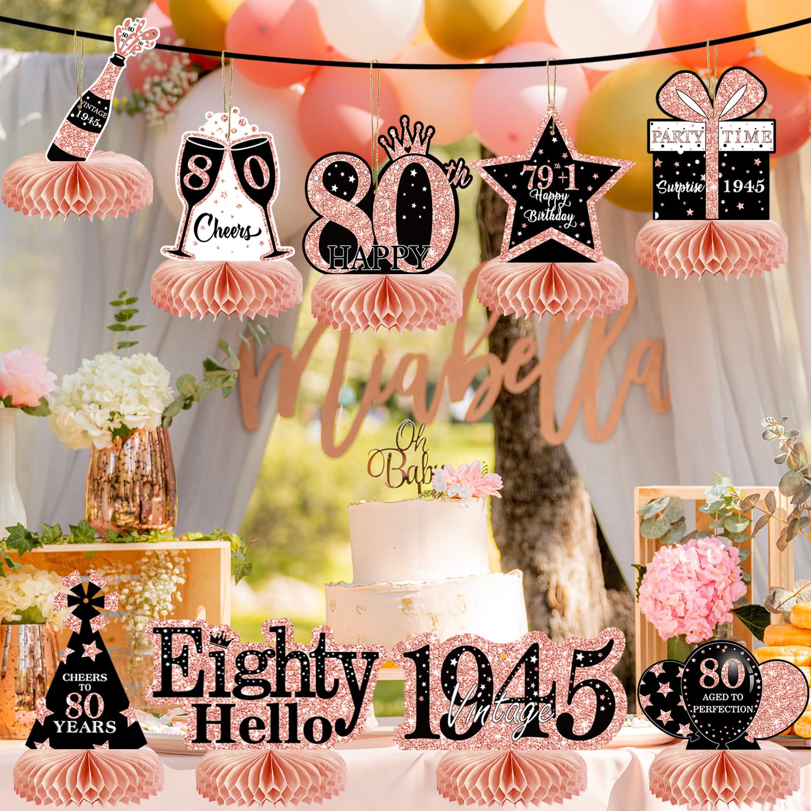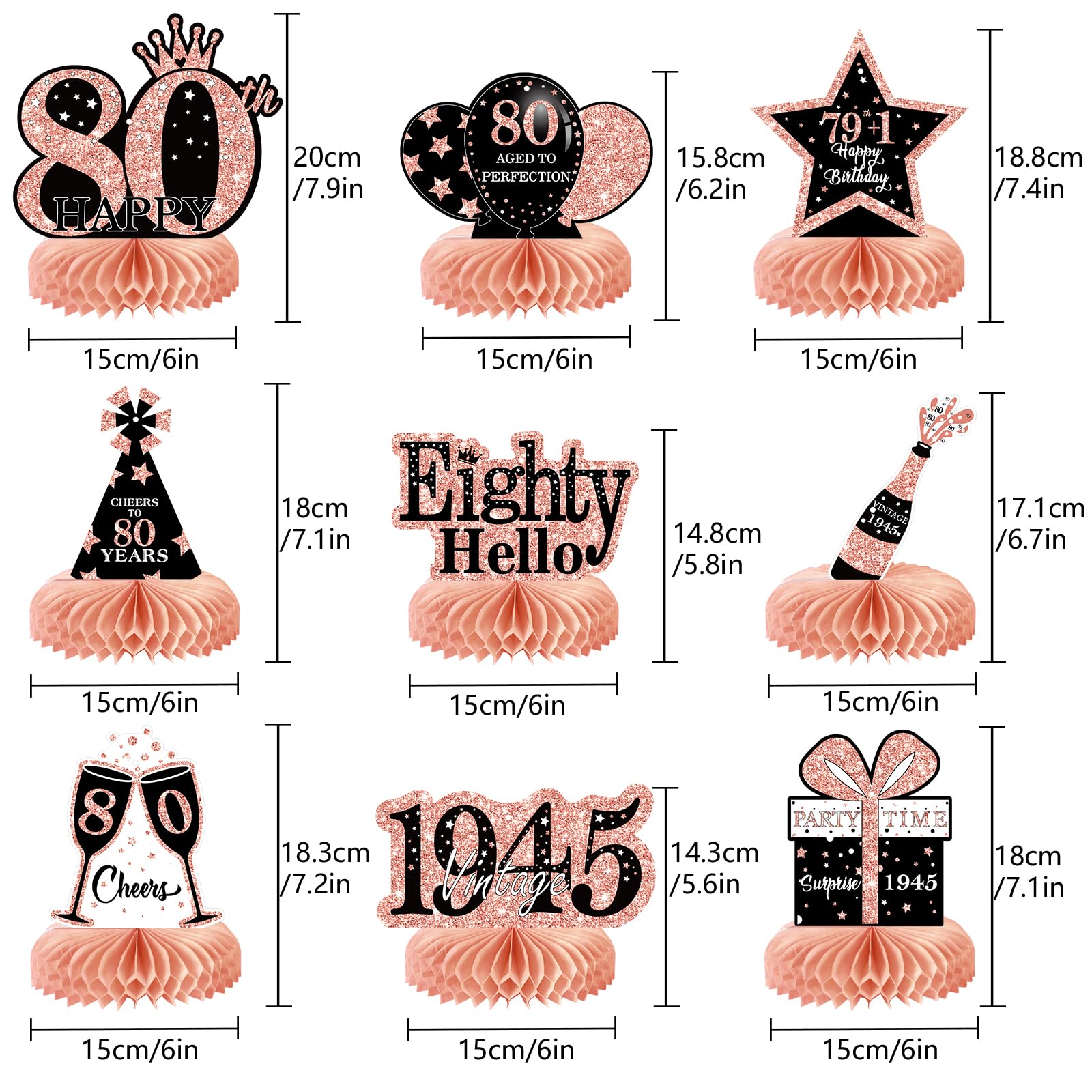 [You Will Get] - 9 pcs rose gold 80th birthday decorations honeycomb table centerpieces for women, it contains 9 patterned cardboards and 9 paper honeycombs,and matching lanyards.These chic 80th birthday table decorations are enough to decorate your themed party.