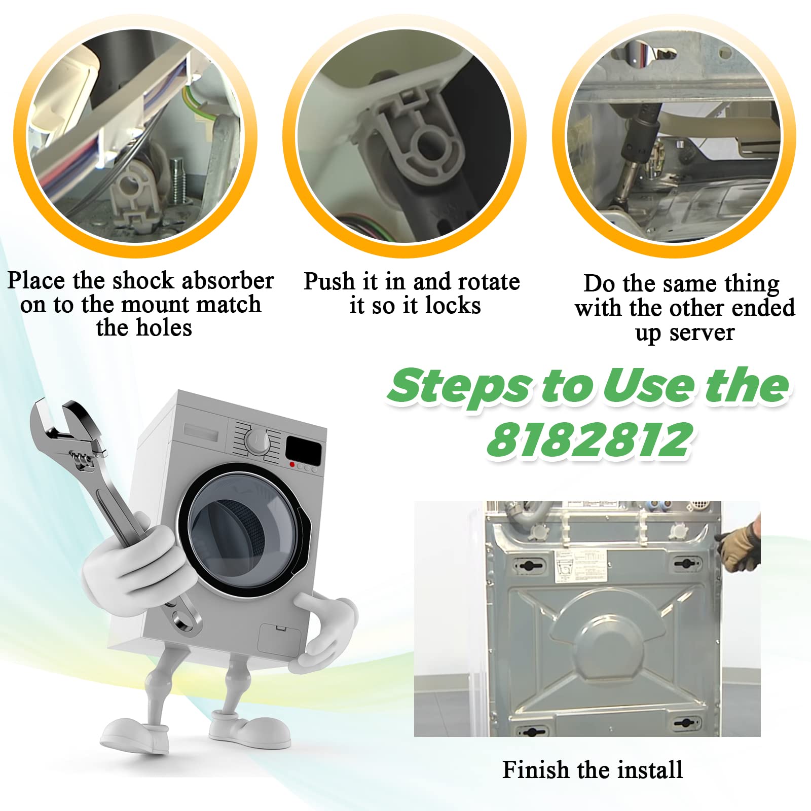 ✔✔【FIXES THE SYMPTOMS】:▶8182812 Washer shock absorber w10822553 can fixes the following symptoms: ①Shock Absorbers were badly worn out ②washer is running noisy ③washer is running shaky ④Drum moving excessively in the spin cycle. 8182812 W10822553 washer shock absorber can restore your washing machine to normal