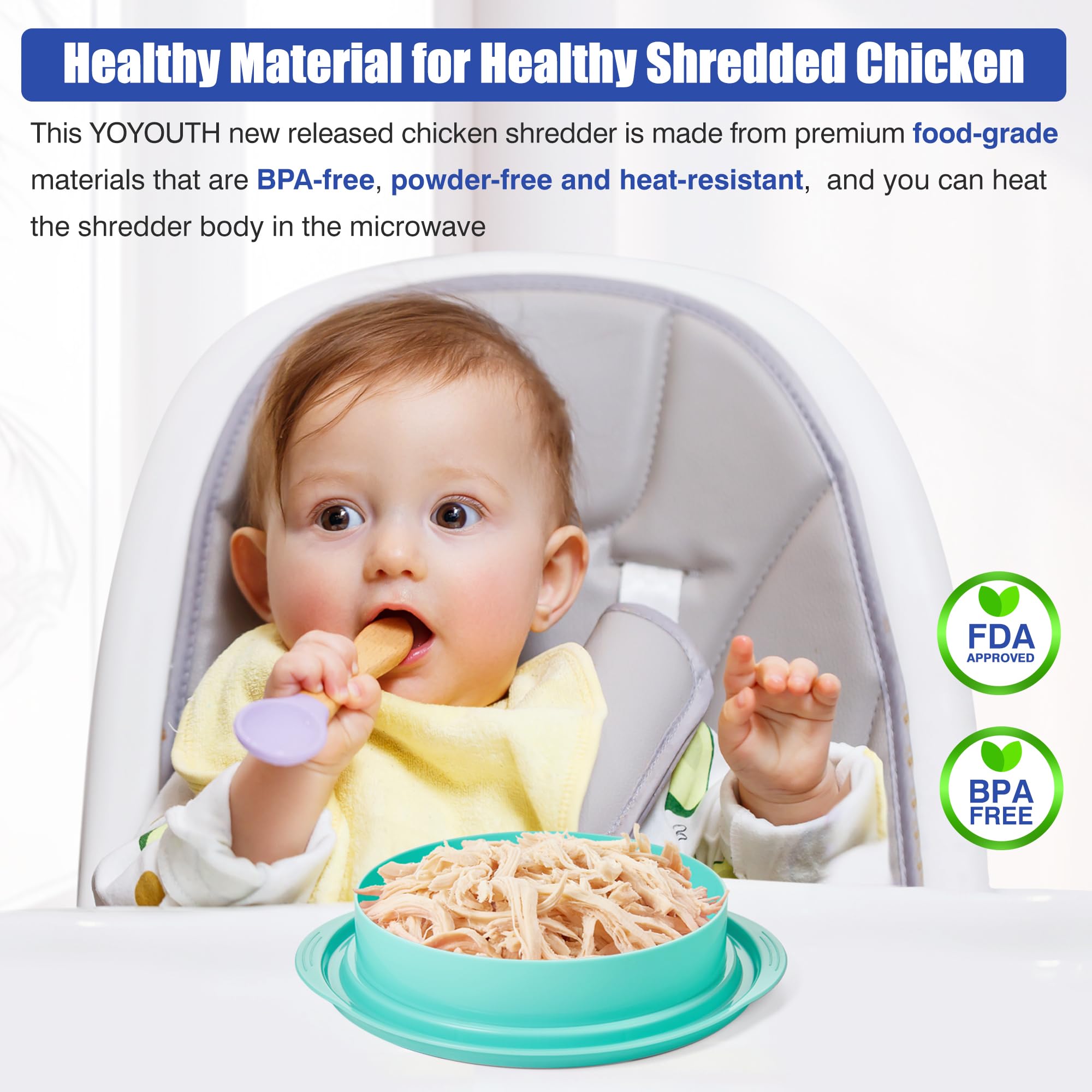 【Healthy & Dishwasher Safe】: This meet shredder is made from premium FOOD-GRADE materials that are BPA-free, powder-free and heat-resistant, and you can heat the shredder body in the microwave. Additionally, the whole chicken breast shredder is dishwasher safe, making cleanup a breeze