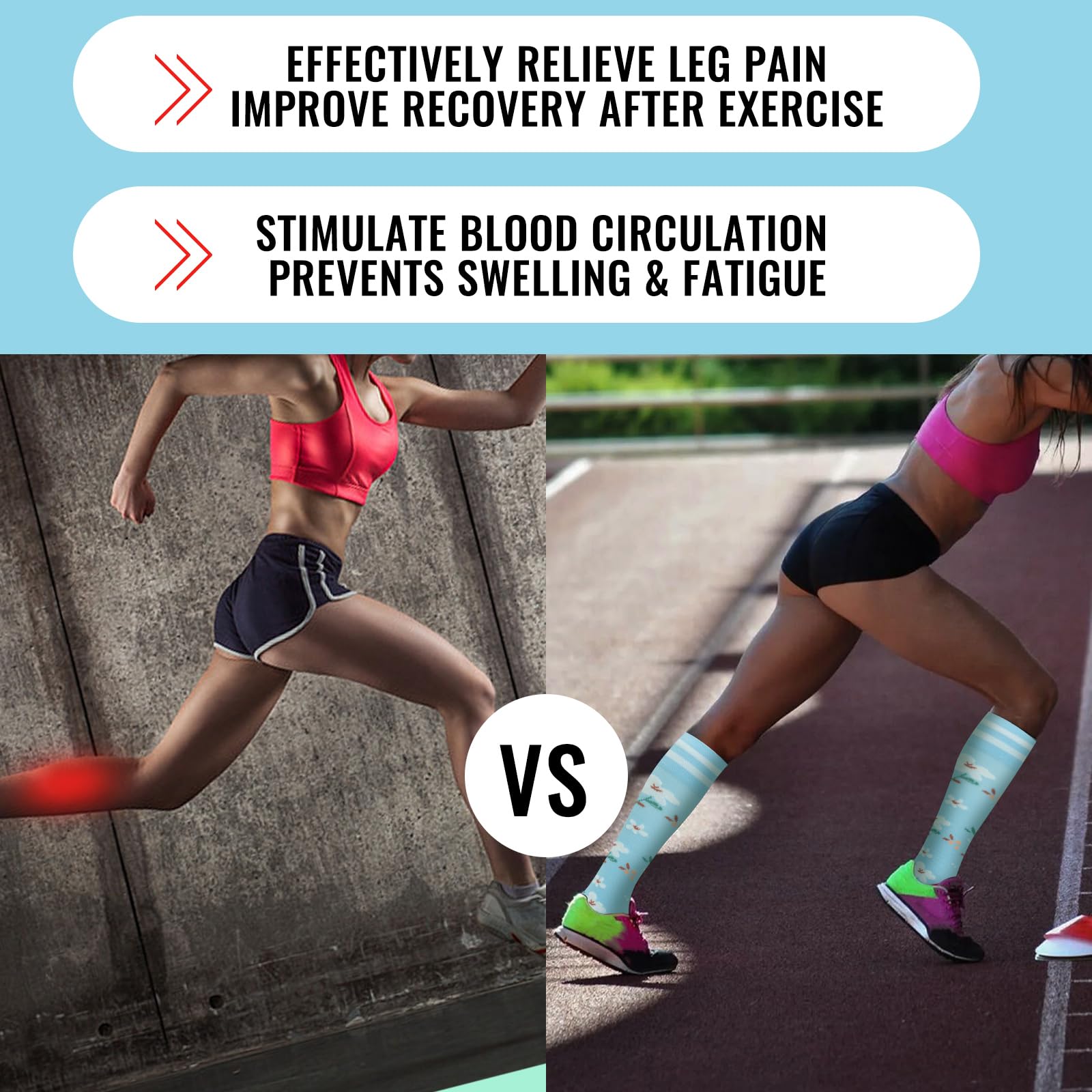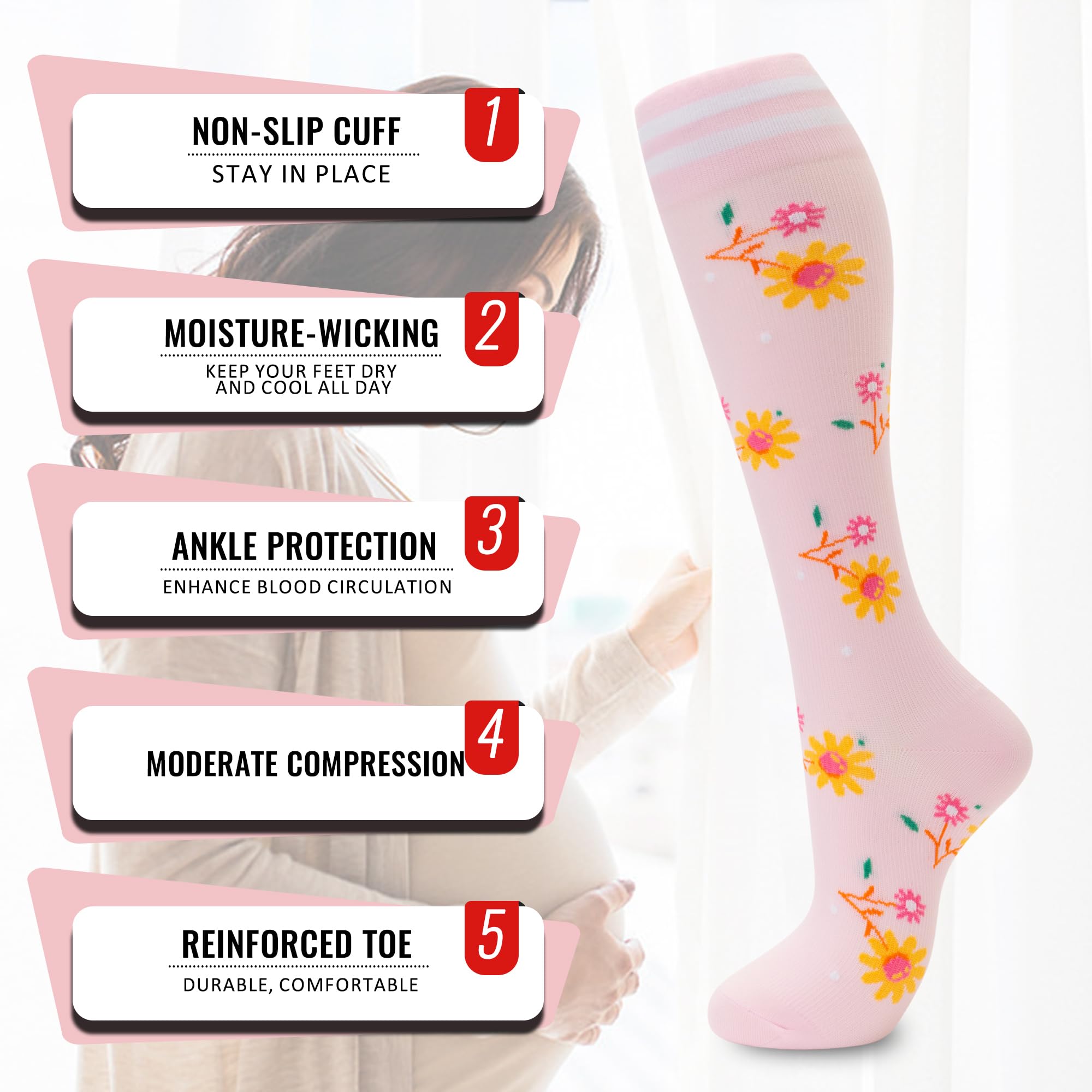 SUITABLE FOR VARIOUS OCCASIONS Support compression socks are suitable for a variety of people, whether you are nurses, runners, joggers, pregnant womenοΌ office workers, airplane travelers, or on other occasions, They can promote blood circulation and reduce pain. It is an indispensable part of your life