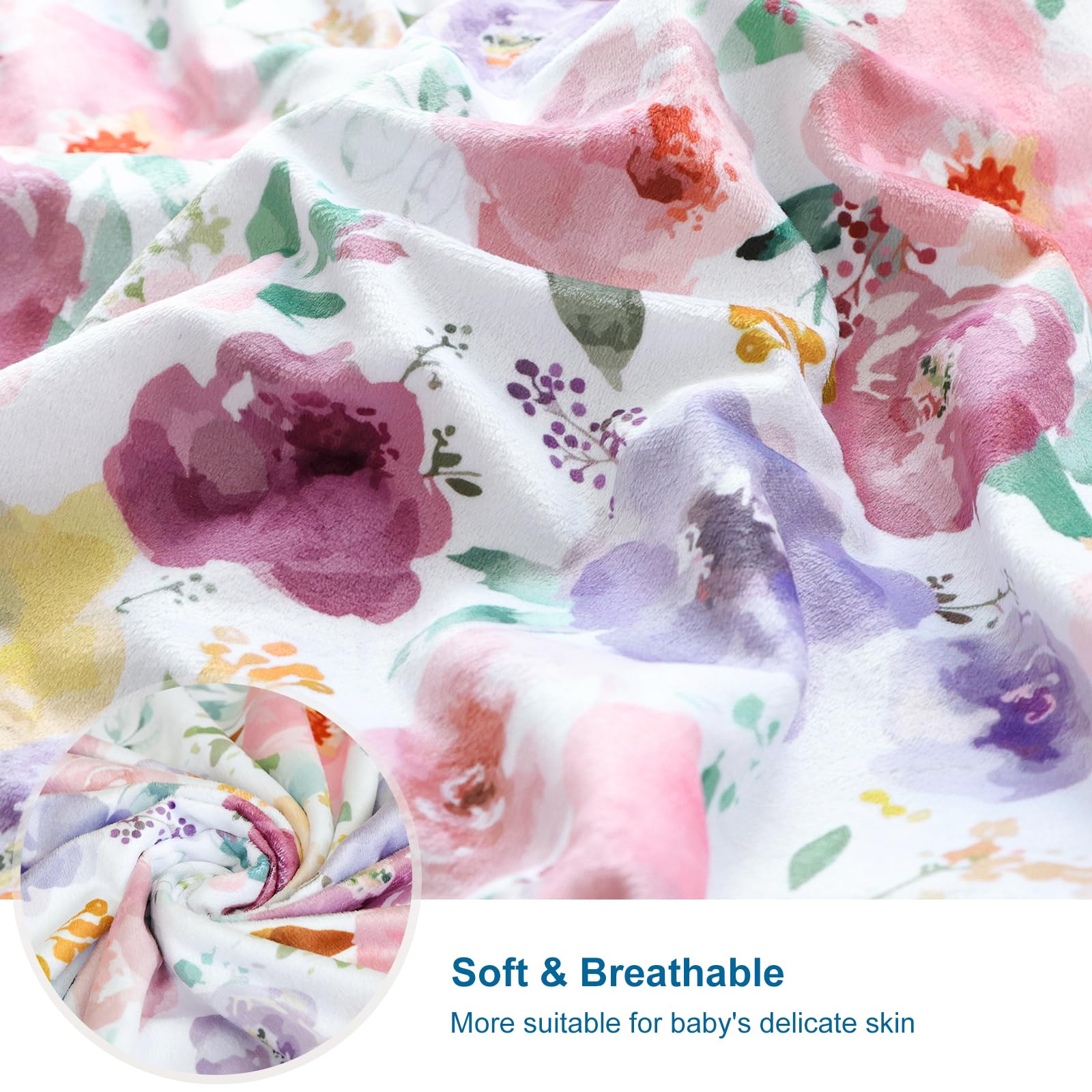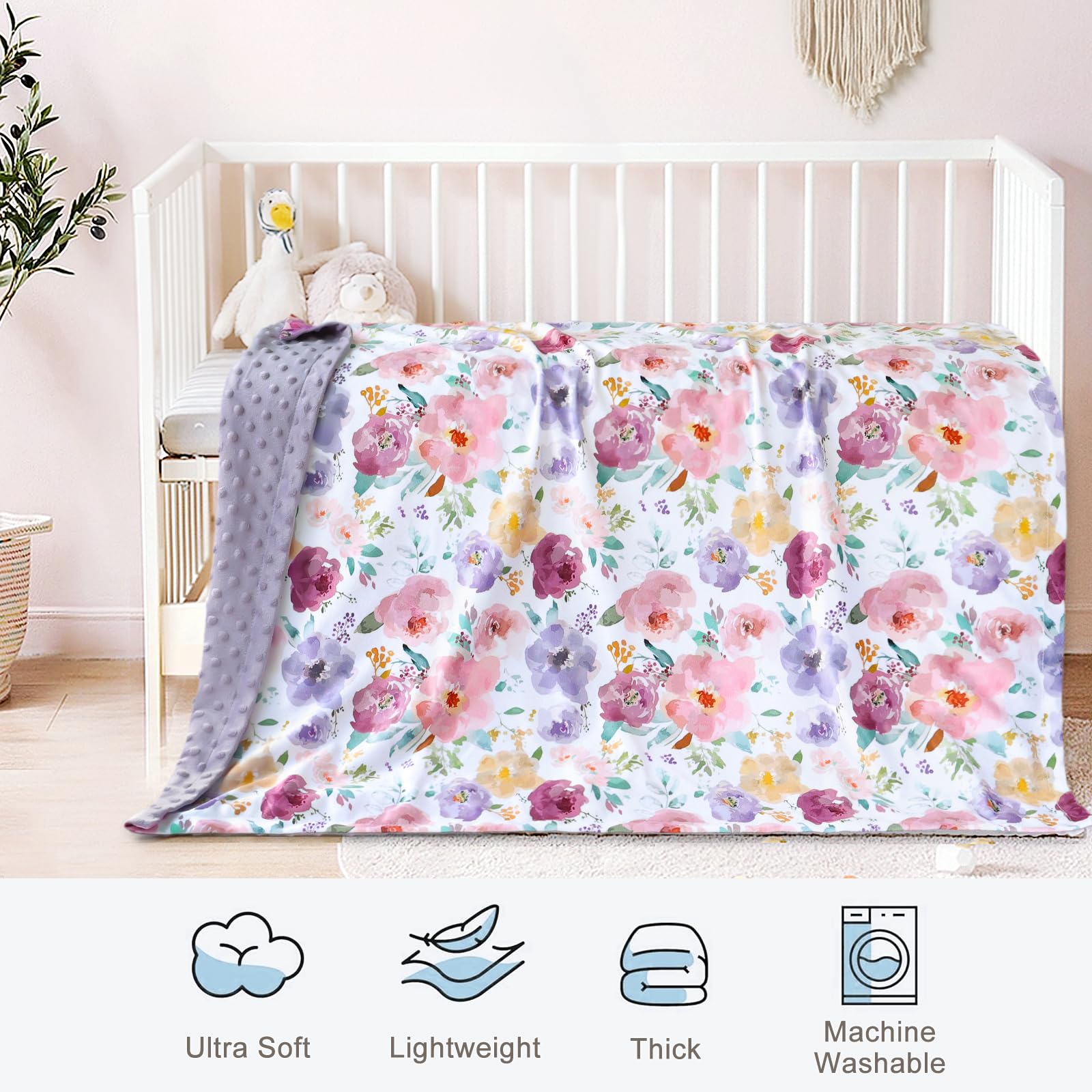 GENTLE SOFTNESS: Made with extra soft plush microfiber, our floral toddler blanket offers comfot touch, providing warmth and cozy for all seasons. Its double layer design with a dotted backing without feeling heavy