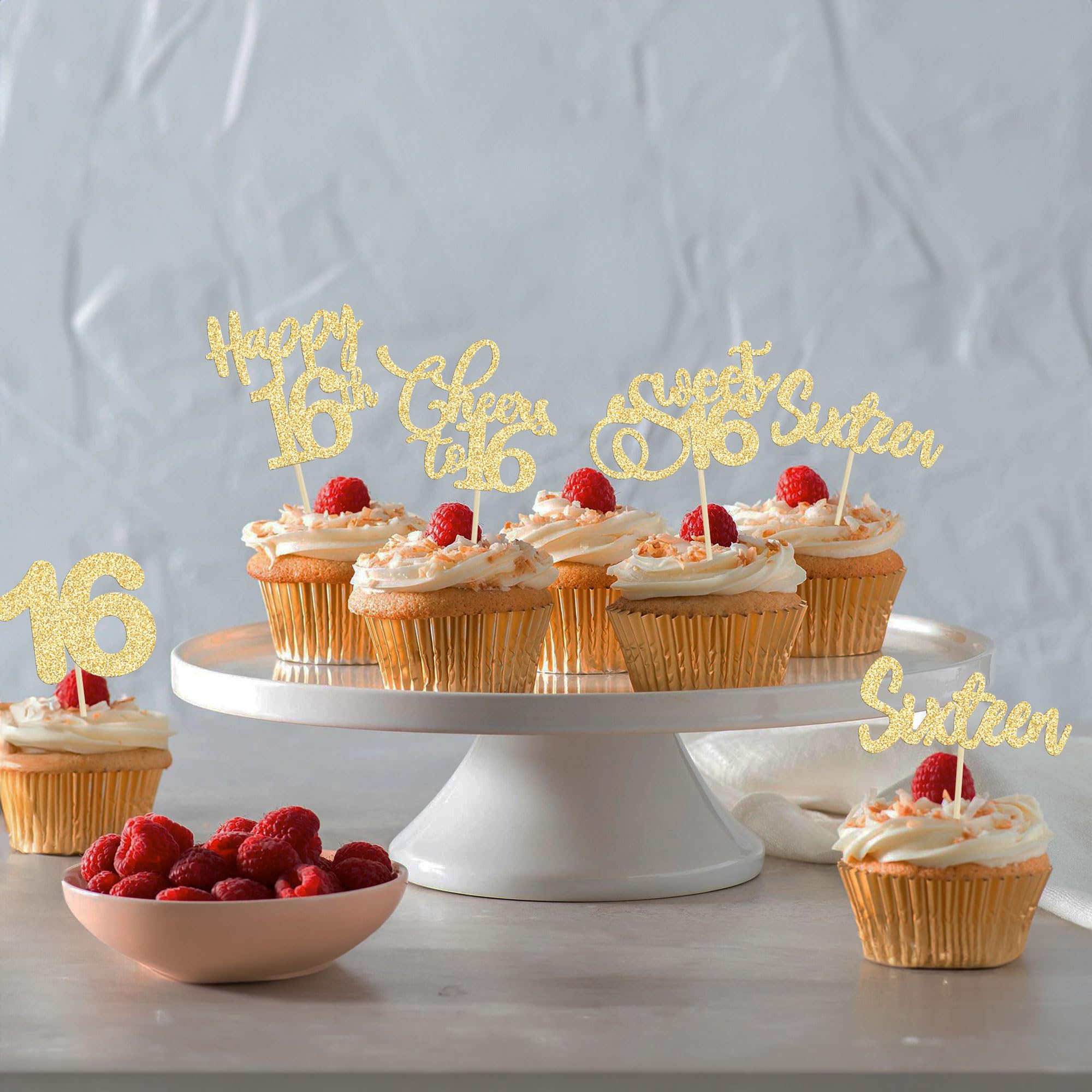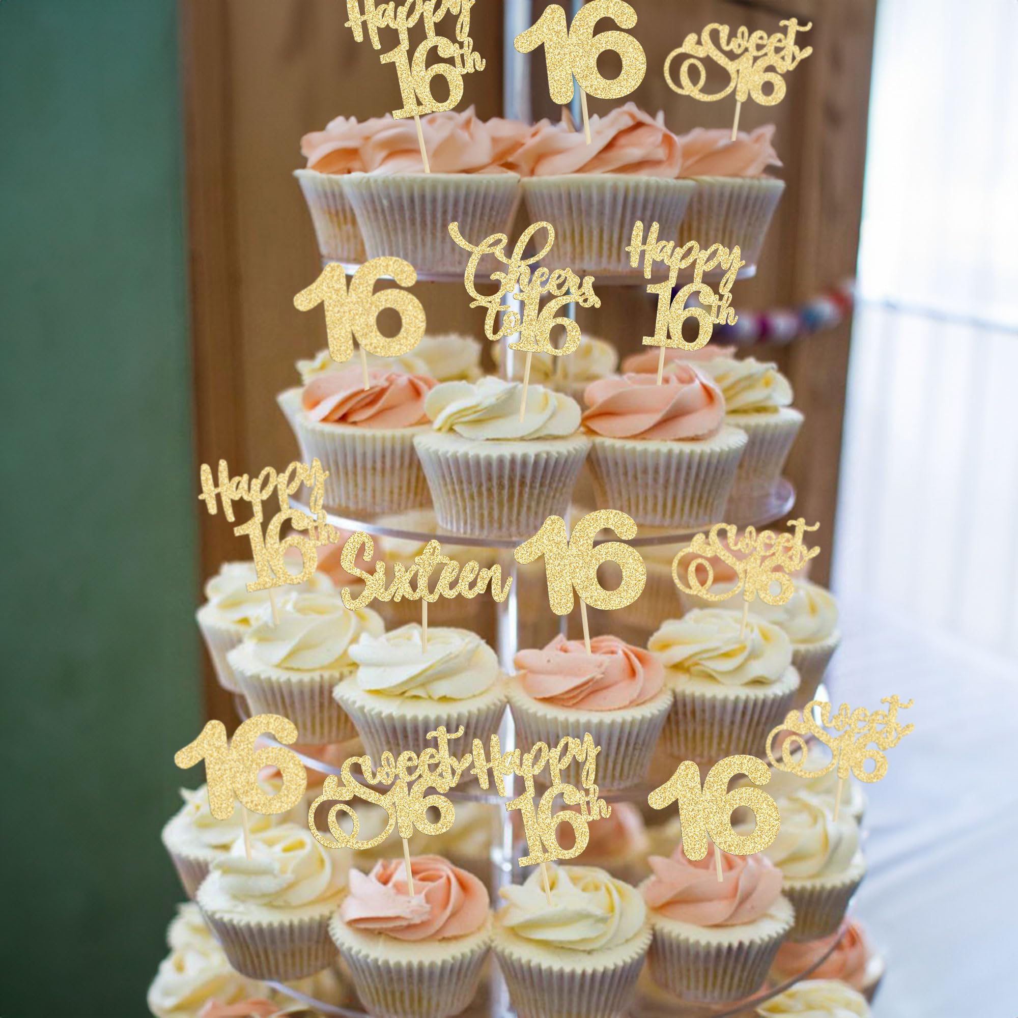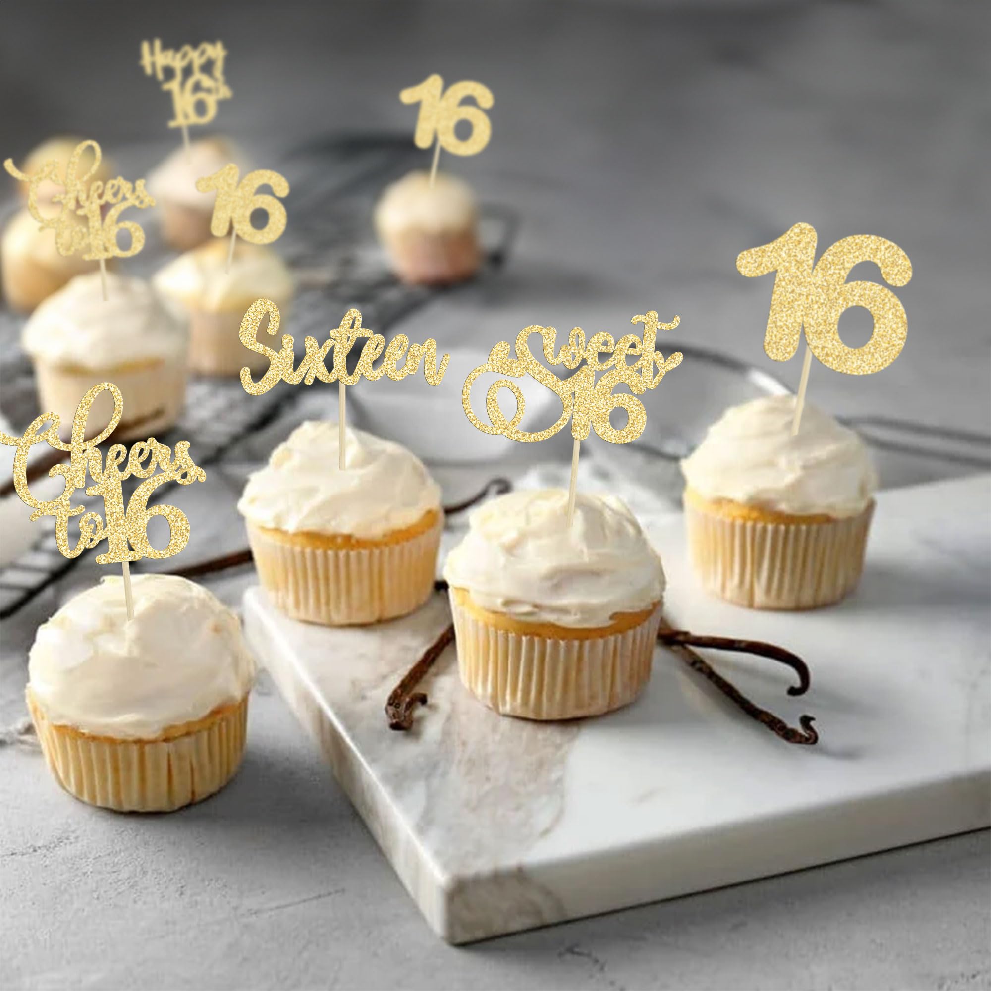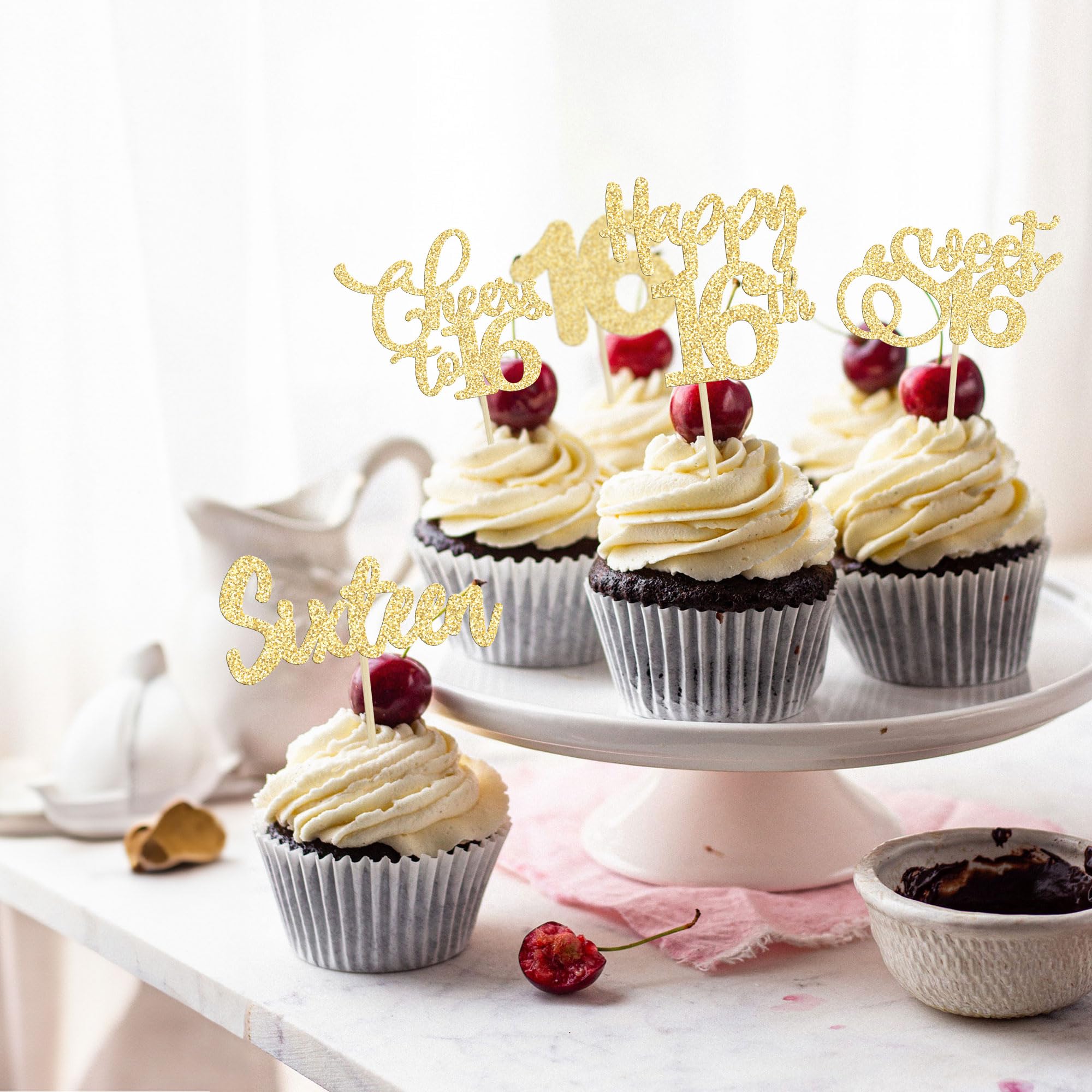 💖【No Assembly Required】: 30Pcs 16th Birthday Cupcake Toppers can put in the cake directly! These 30Pcs 16th Birthday Cupcake Toppers save your time and super easy to use. You can easily dress up your 16th theme cakes, yes! but don't stop there, put them into desserts, cookies, fruit pieces, appetizers, muffins and so much more!