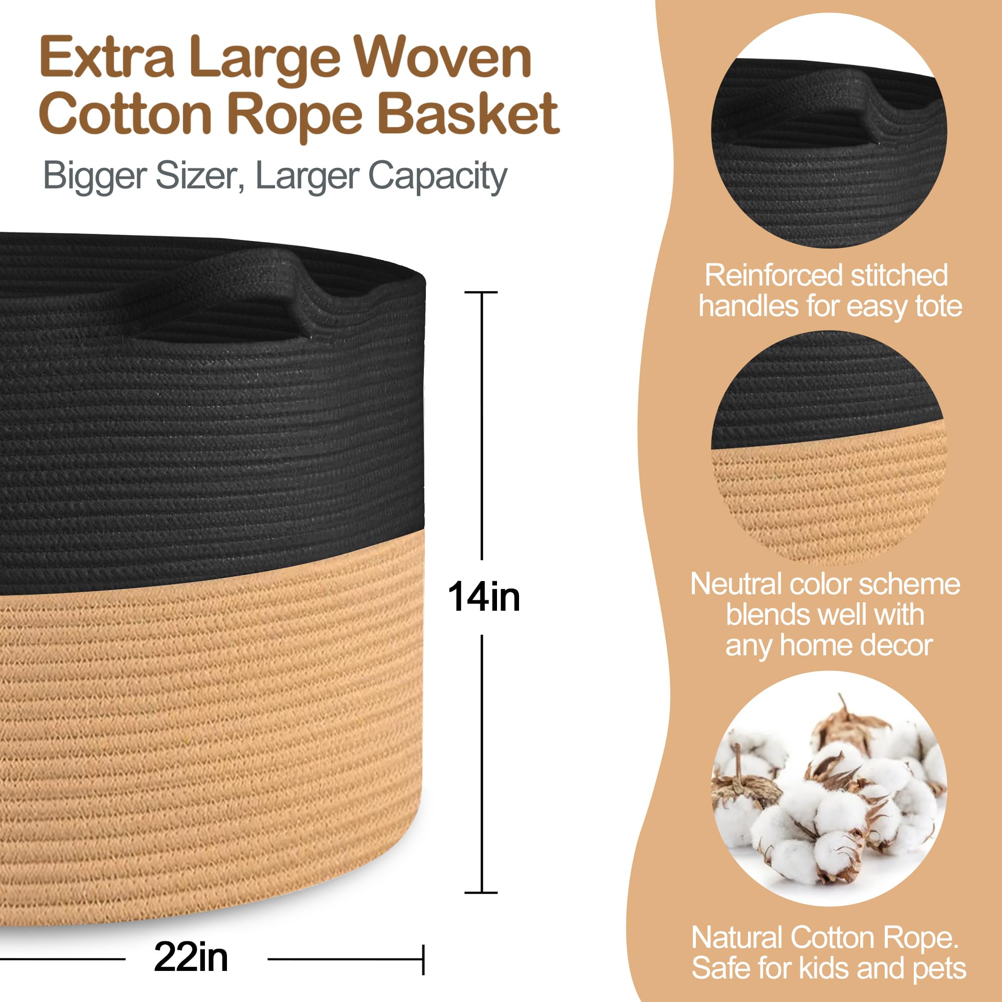 Sturdy and Reinforced Handles: The big woven basket is equipped with built-in foldable handles making transporting convenient even when filled with items. Plus, it's easy to clean. The basket is hand or machine washable and can fold flat so you can take it with you as a laundry basket. 2023 All-new XXL basket can stand up easily and take its round shape quickly. Cotton with better recovery. Good elasticity.