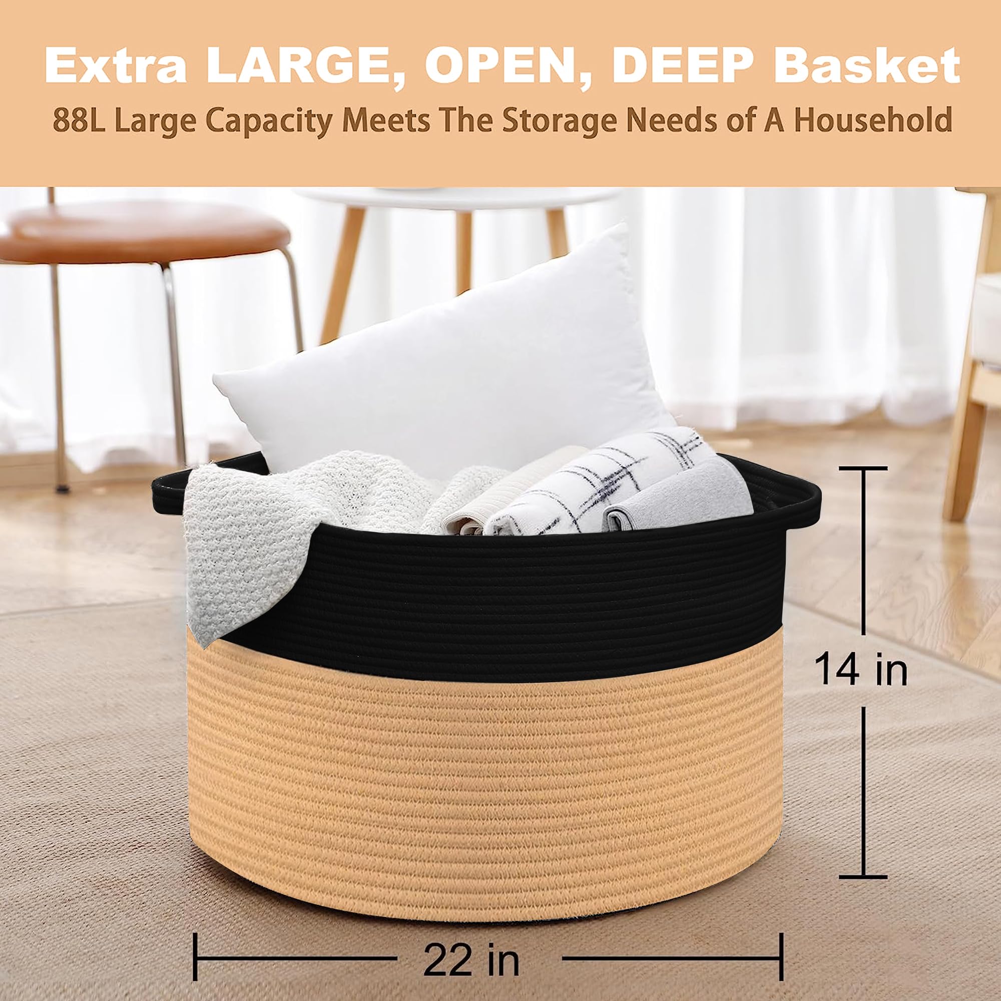 88L Large Capacity Baskets for Blanket: The oversized blanket basket has dimensions of 22 x 14 inches and a storage capacity of 88 Liters. XXL wicker blanket holder is huge and deep enough to store multiple blankets. Perfect for storing extra throw blankets and pillows within reach of the sofa in the living room.