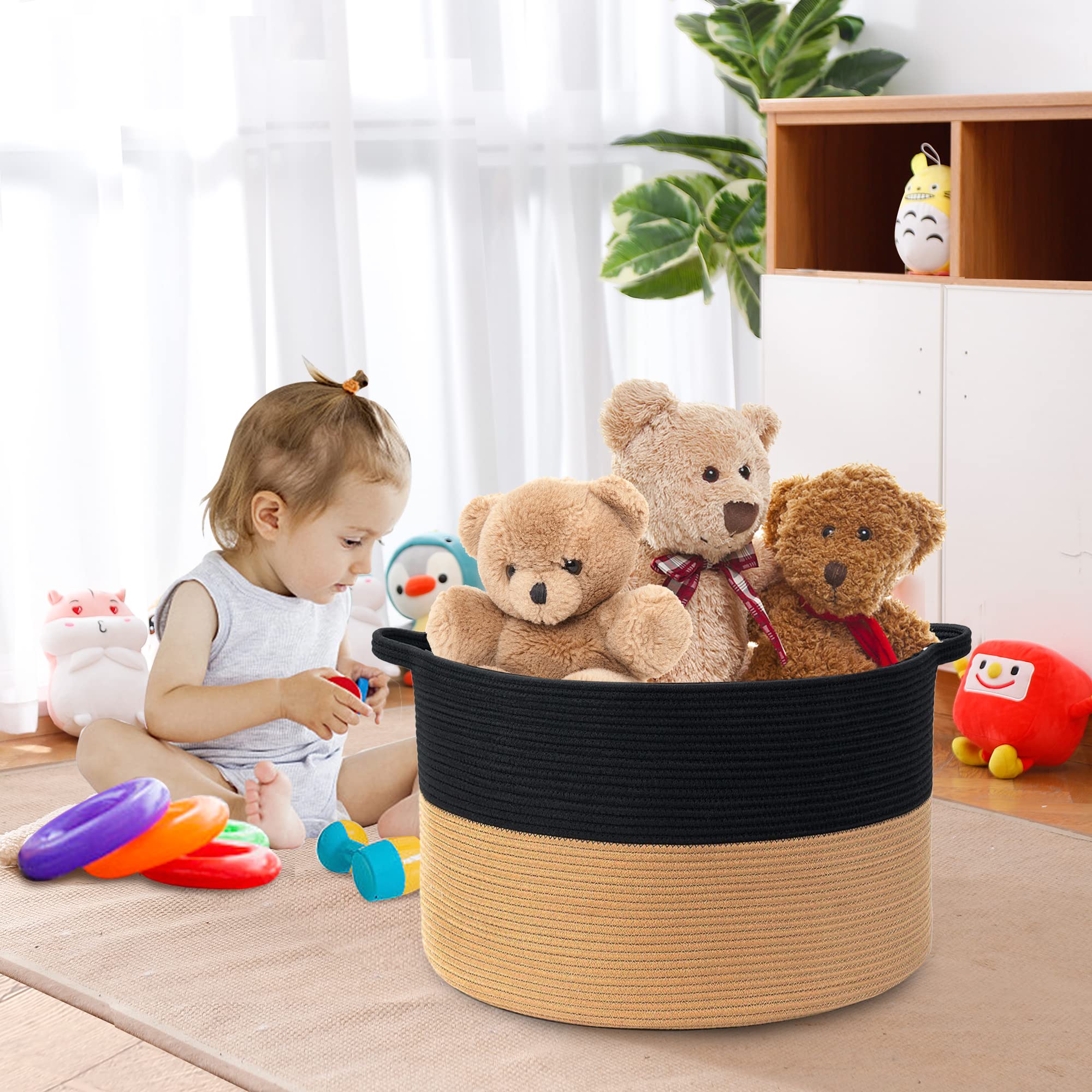 Versatile Use Baskets for Organizing: A giant storage organizer for storing tons of cozy blankets and extra pillows in living room, a jumble of toys in kids room, a pile of bedding in bedroom and a stack of towels in bathroom. Or use it as a tall laundry basket hamper to fit dirty or clean clothes. Keeping these stuffs tidy and easily accessible.
