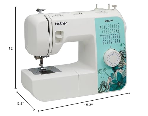 With a full range of user-friendly features and lightweight design, the Brother SM3701 is perfect for both beginners learning to sew and more advanced sewers looking for versatility. The SM3701 offers 37 built-in stitches including a blind hem, decorative, and quilting stitches with an automatic one-step buttonholer for virtually perfect buttonholes. Included are 5 quick-change sewing feet, including a buttonhole, zipper, zigzag, blind stitch, and button sewing foot. Plus, enjoy the ease of sewing cuffs, sleeves, and pant legs with the built-in free arm. Designed for ease of use, the SM3701 comes with a built-in easy needle threader, jam-resistant Quick-Set top drop-in bobbin, and an automatic bobbin winding system. Includes instructional DVD, English and Spanish user manual, 25-year limited warranty, and free technical phone and online support for the life of the product. Expand your creative potential with this easy to use, versatile machine!