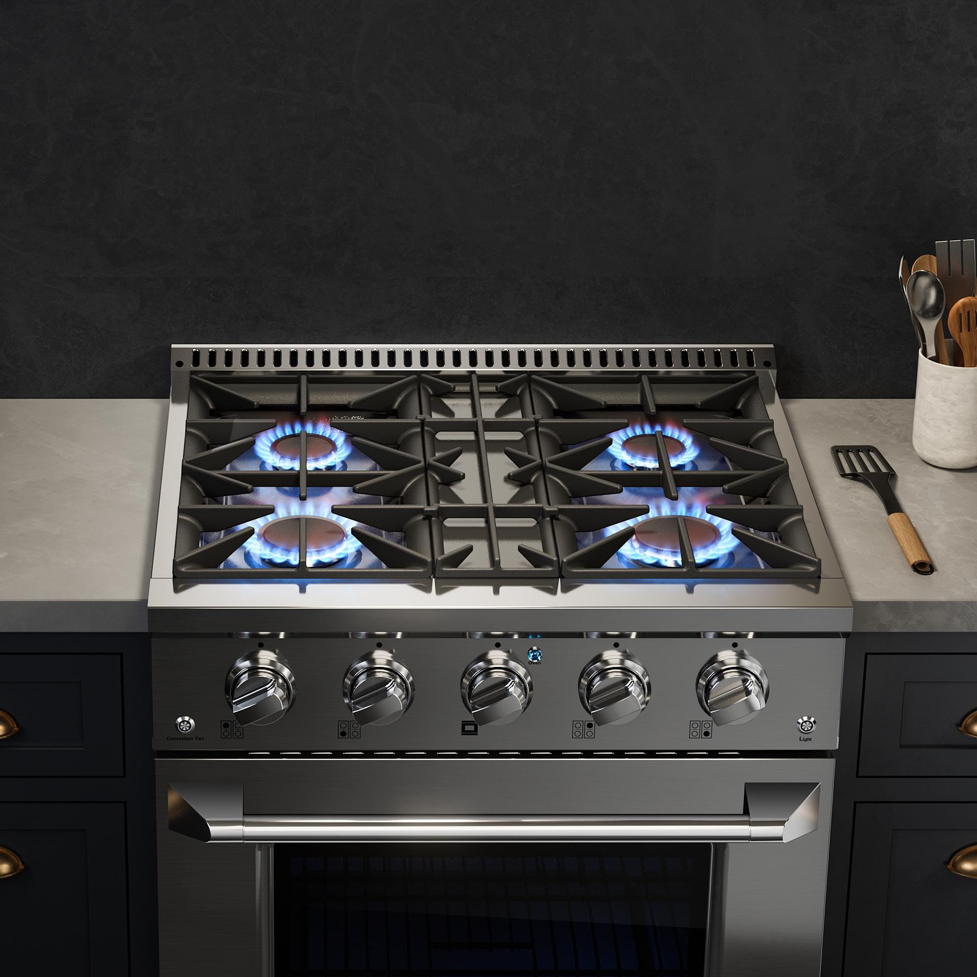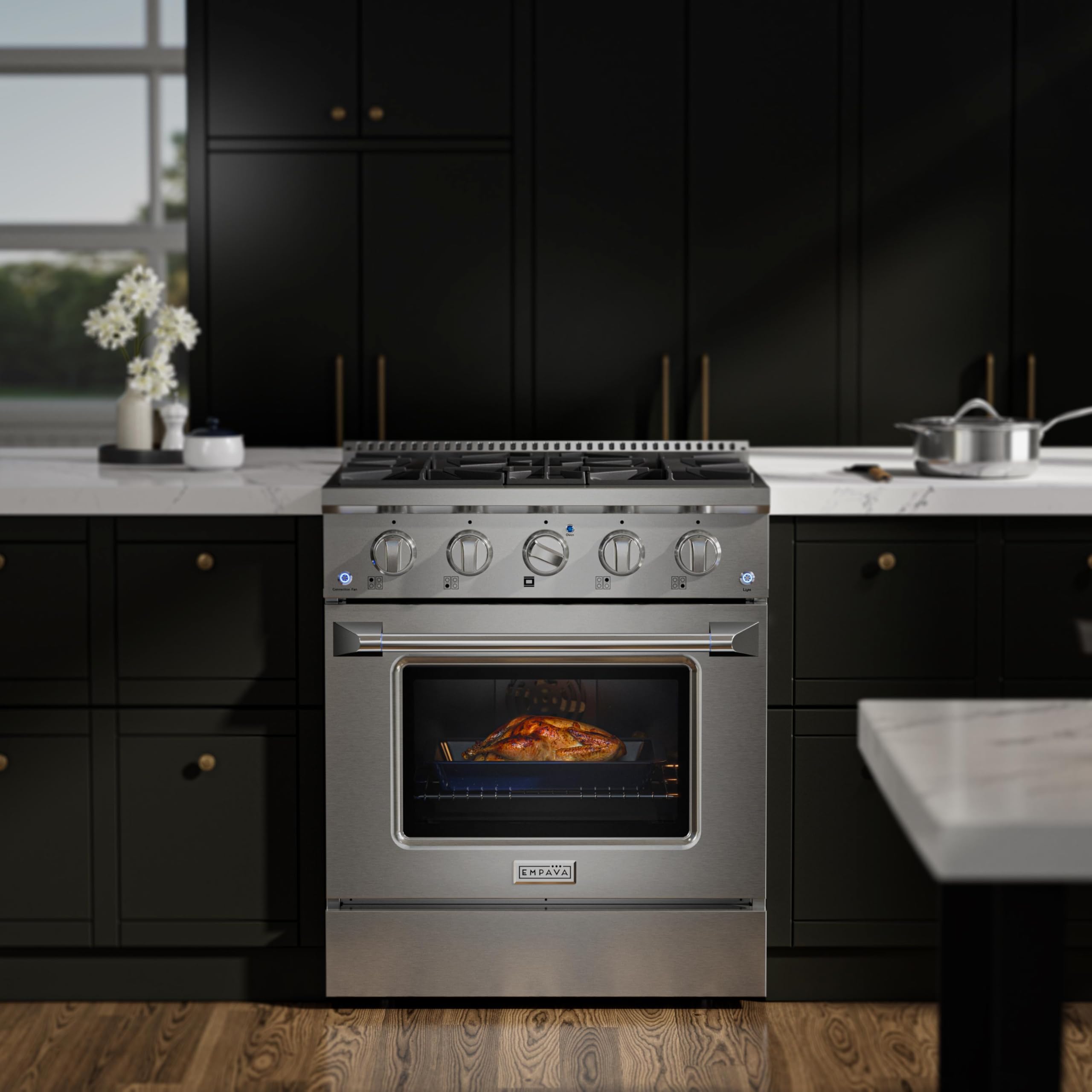 Empava 30" Professional Gas Range with 20K Dual-Ring Power Burner, Convection Oven, Infrared Broiler & Precision Simmer Control for High-Performance Home Cooking, ETL Certified