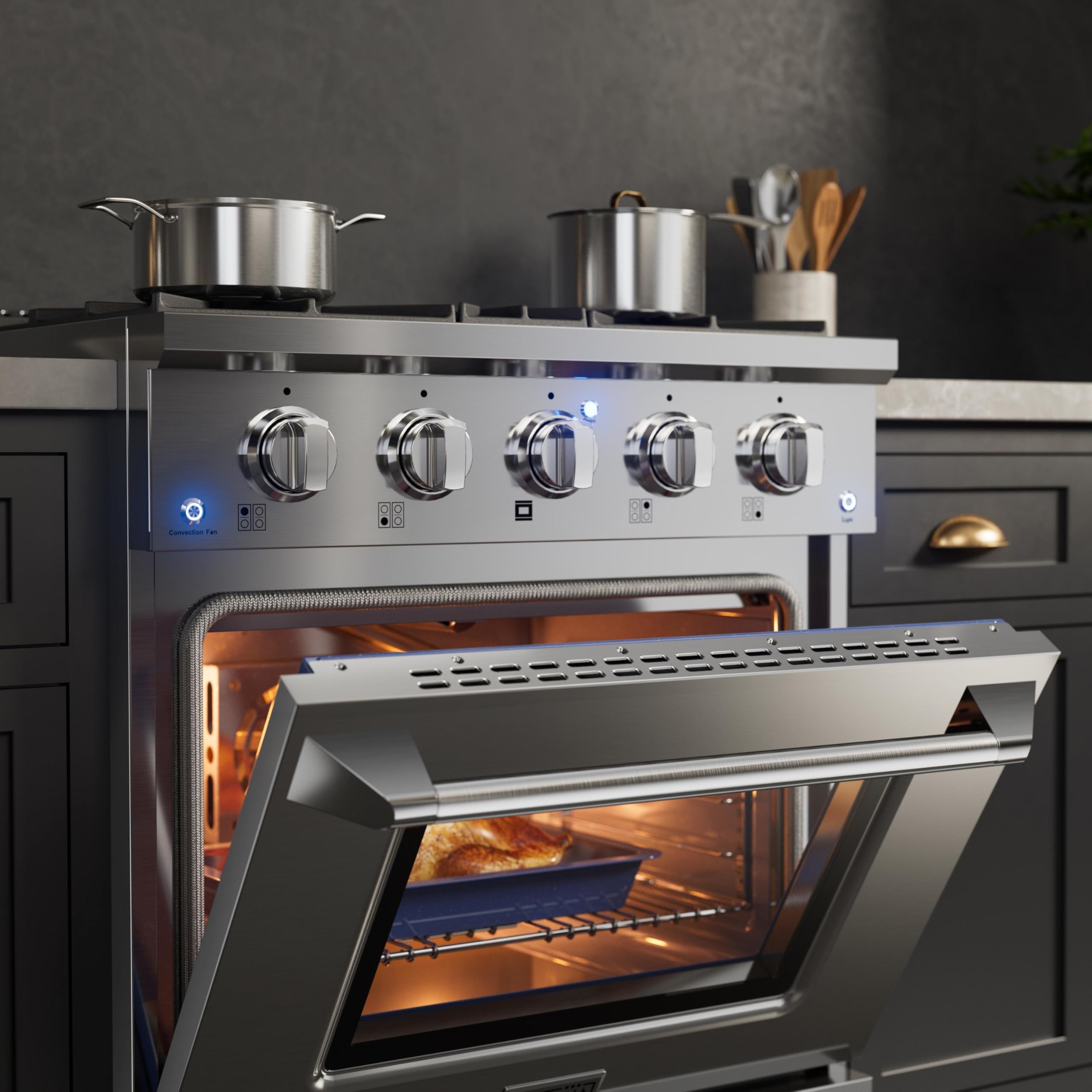 Dual Fuel Freedom for Any Home Vision: Convertible for natural gas or propane, this range adapts to your layout—ideal for rural retreats, city remodels, or custom kitchens seeking uncompromised cooking performance