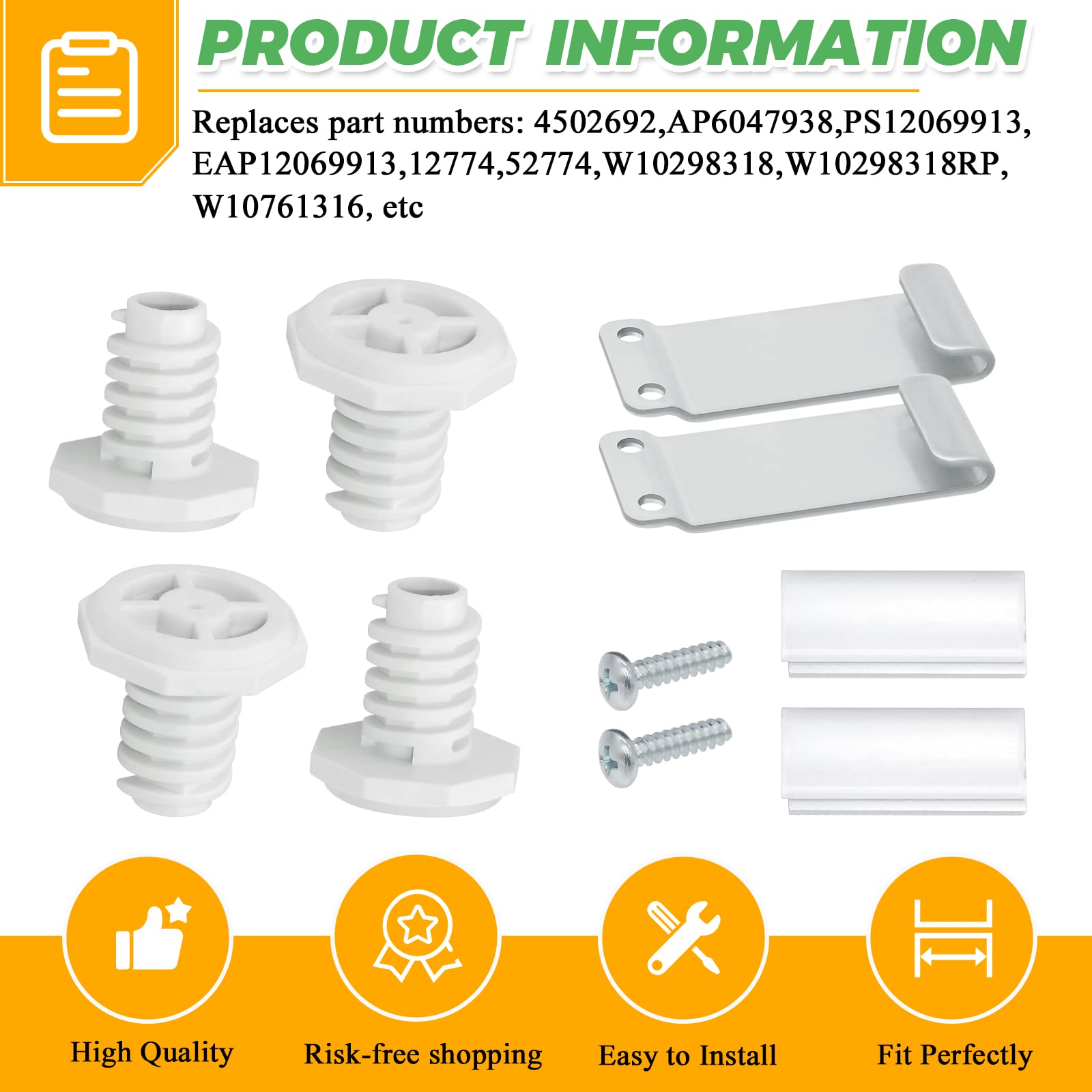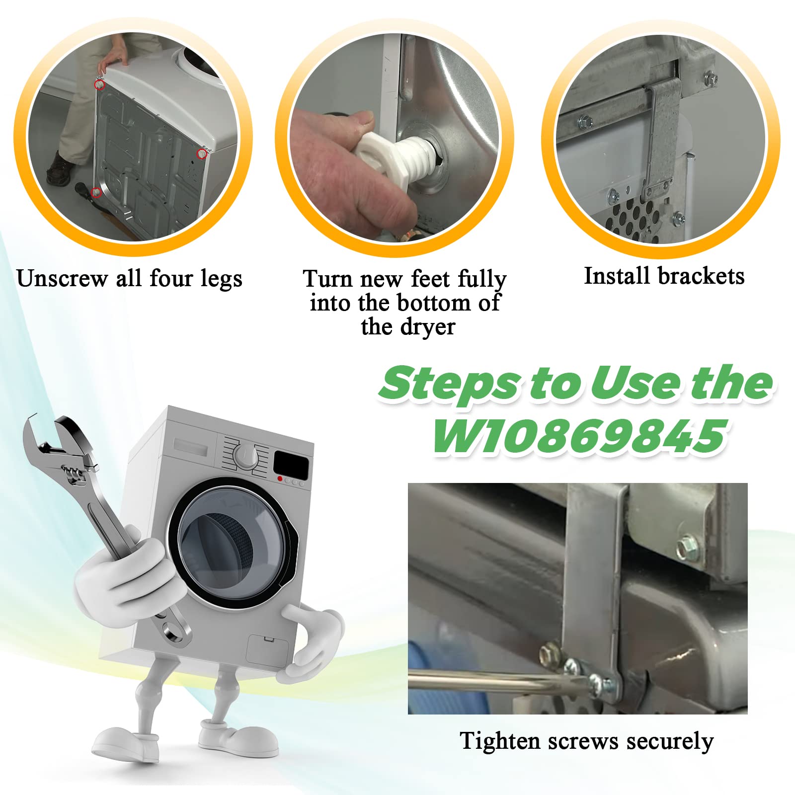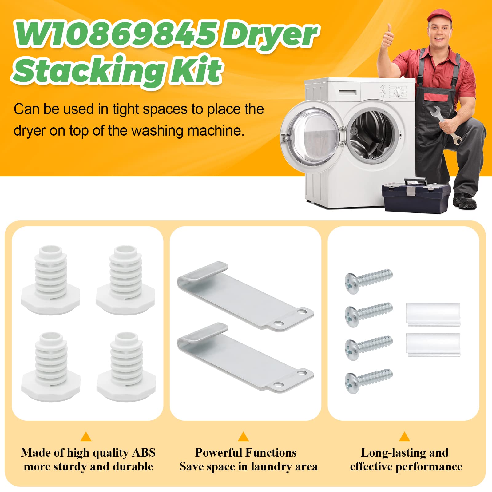 ✔✔【W10869845 STACKING KIT】Includes 4 x washer feet, 4 x pan head screws, 2 x plastic clips, 2 x hooked brackets, 1 x installation instruction. Washer feets and plastic clips are made of high quality durable ABS material, Pan head screws and hooked brackets are made of zinc plated carbon steel, ensure long-lasting and effective performance and provide strong support for installation