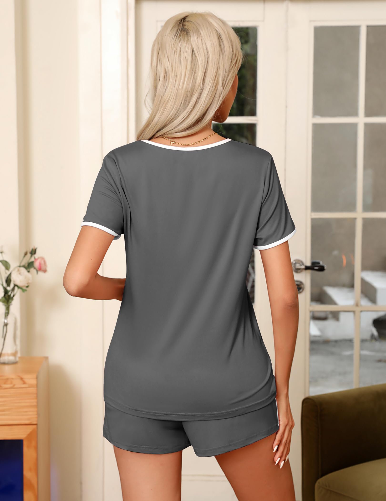 Two Piece Pajama Set: Sleepwear with tops and shorts has a loose fit for added comfort. Extra soft, comfy, and breathable sleepwear set for bedtime