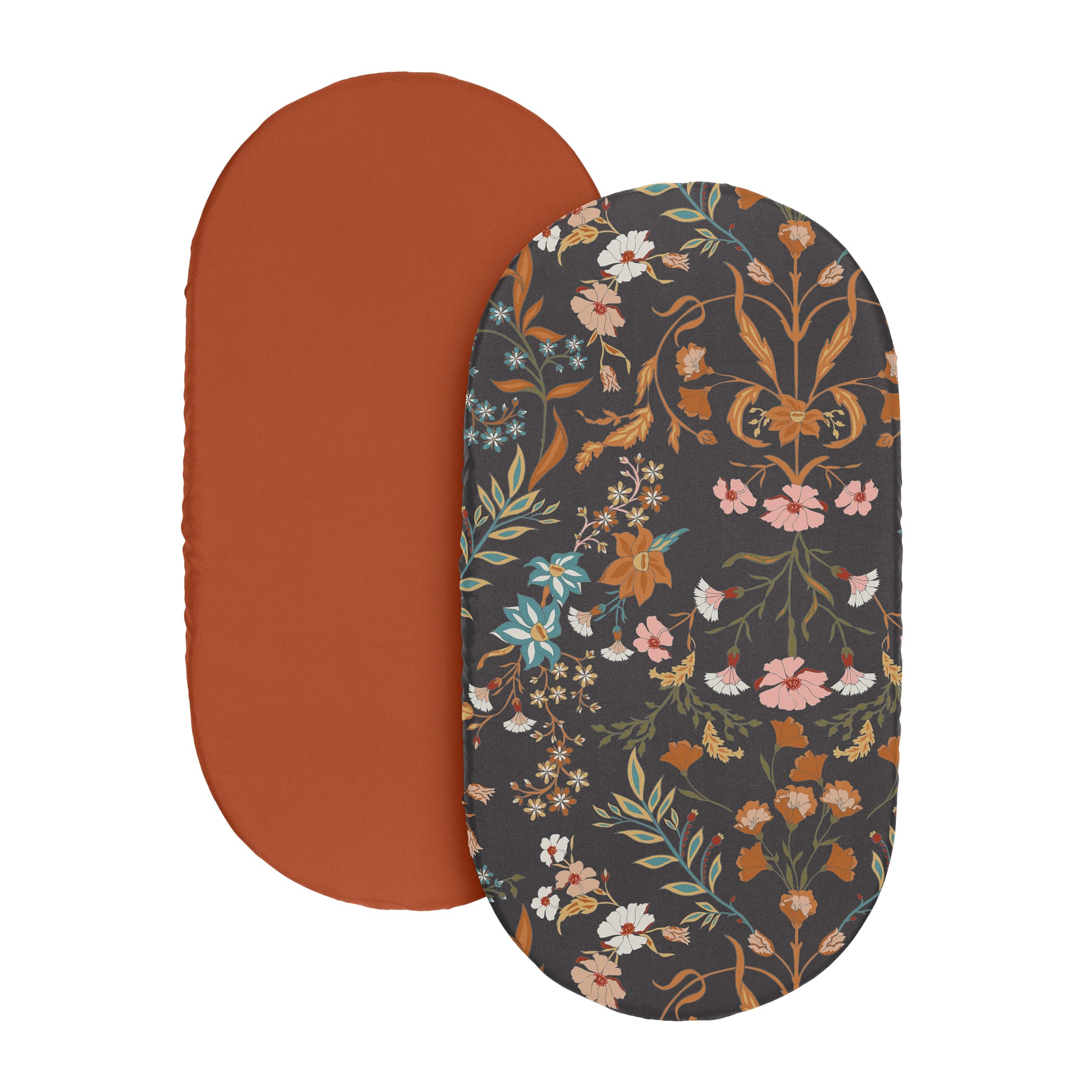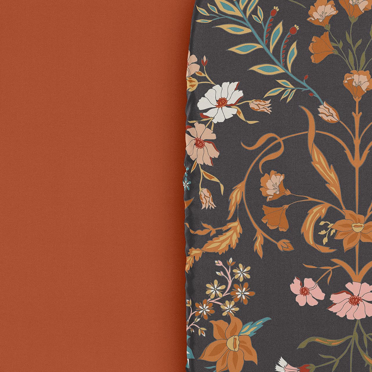 Pack of 2 Brushed Microfiber Sheets Set - (1) Solid Rust Orange paired with (1) Black Teal Turquoise Blue Green Pink Yellow Boho Wildflower Vintage Floral Bohemian Farmhouse Daisy Leaves Botanical Paisley Leaf Flower Garden Cottagecore Indie Rustic Print