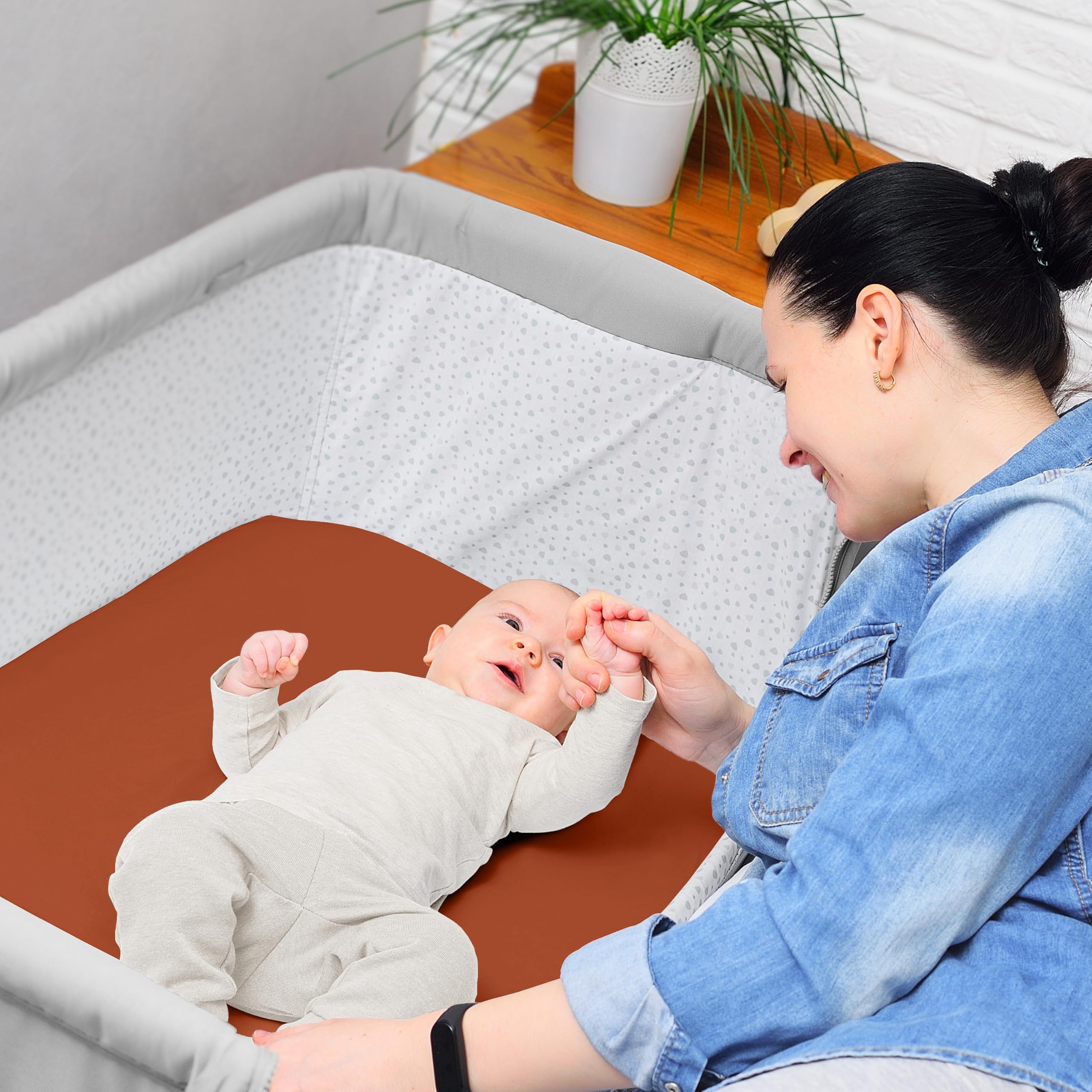 Add a pack and play bassinet sheet to your list of must haves for your newborn! This rectangle bassinet sheet is stretchy and comfortable to give your infant the perfect setting for a good nightβs rest. Itβs thoughtfully designed with elastic sewn around the entire bottom edge of the sheet for a secure fit on most standard sized bassinets, pack and play or play yard bassinets, cradles, beside sleepers, and oval, hourglass and rectangular mattress shapes.
