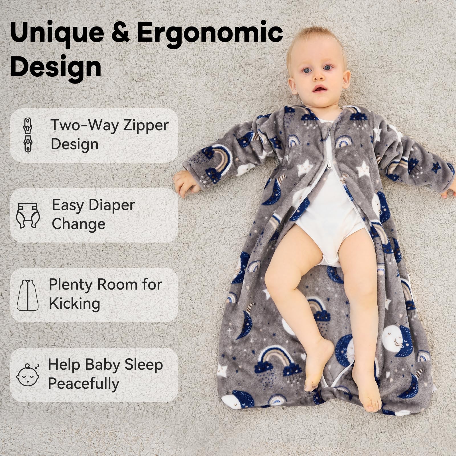 Safe Sleep - Our fleece baby sleep sack are made of comfortable and high quality 100% microfiber polyester, providing a gentle, skin-friendly touch for your baby's sensitive skin. Certified by the Consumer Product Safety Commission(CPSC), these baby sleeping bags ensure a secure and safe sleeping environment for your little one.