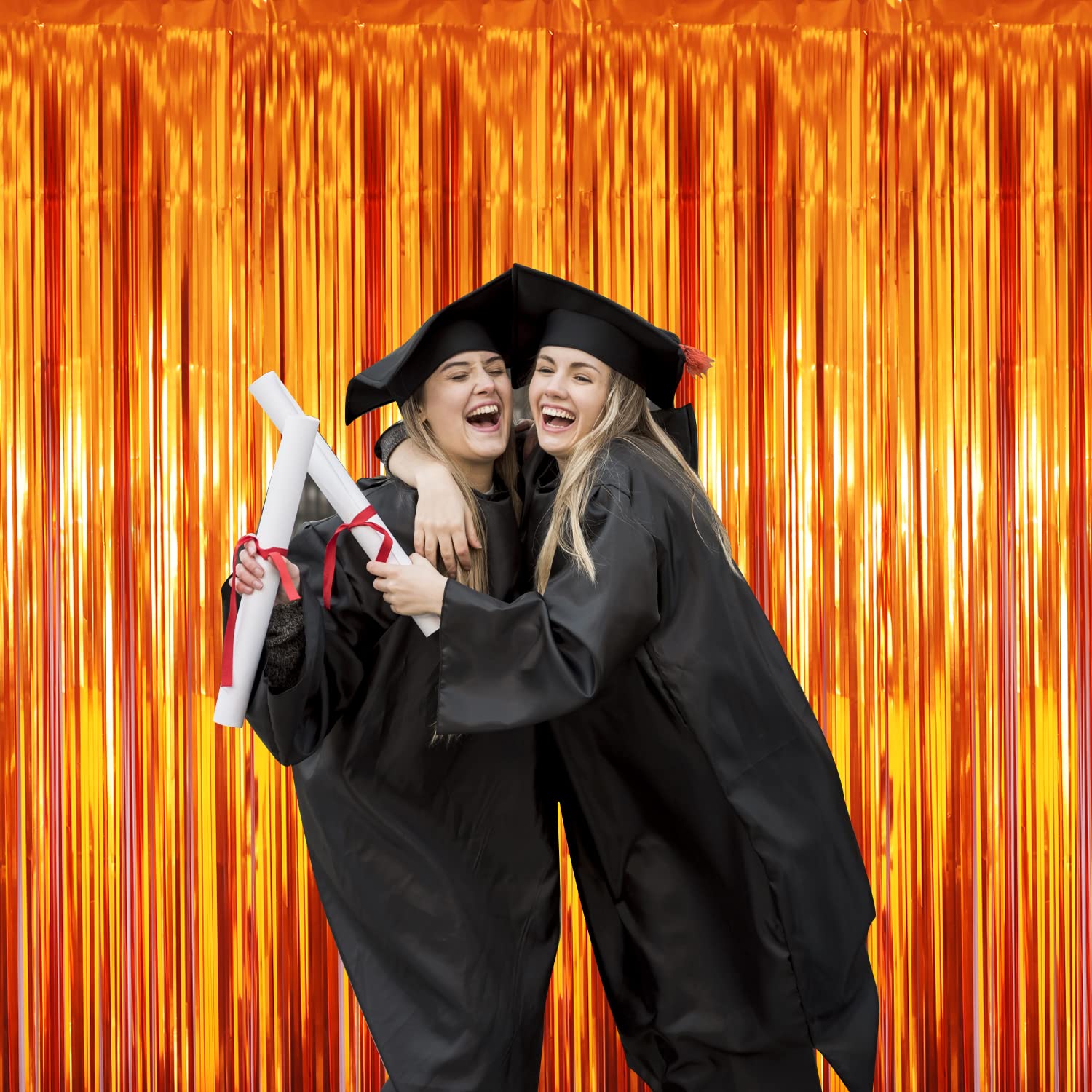 Package Includes:2 pack orange foil fringe curtains,3.2 ft x 8.2ft each,suitable for hanging on a door or coverage a wall fully