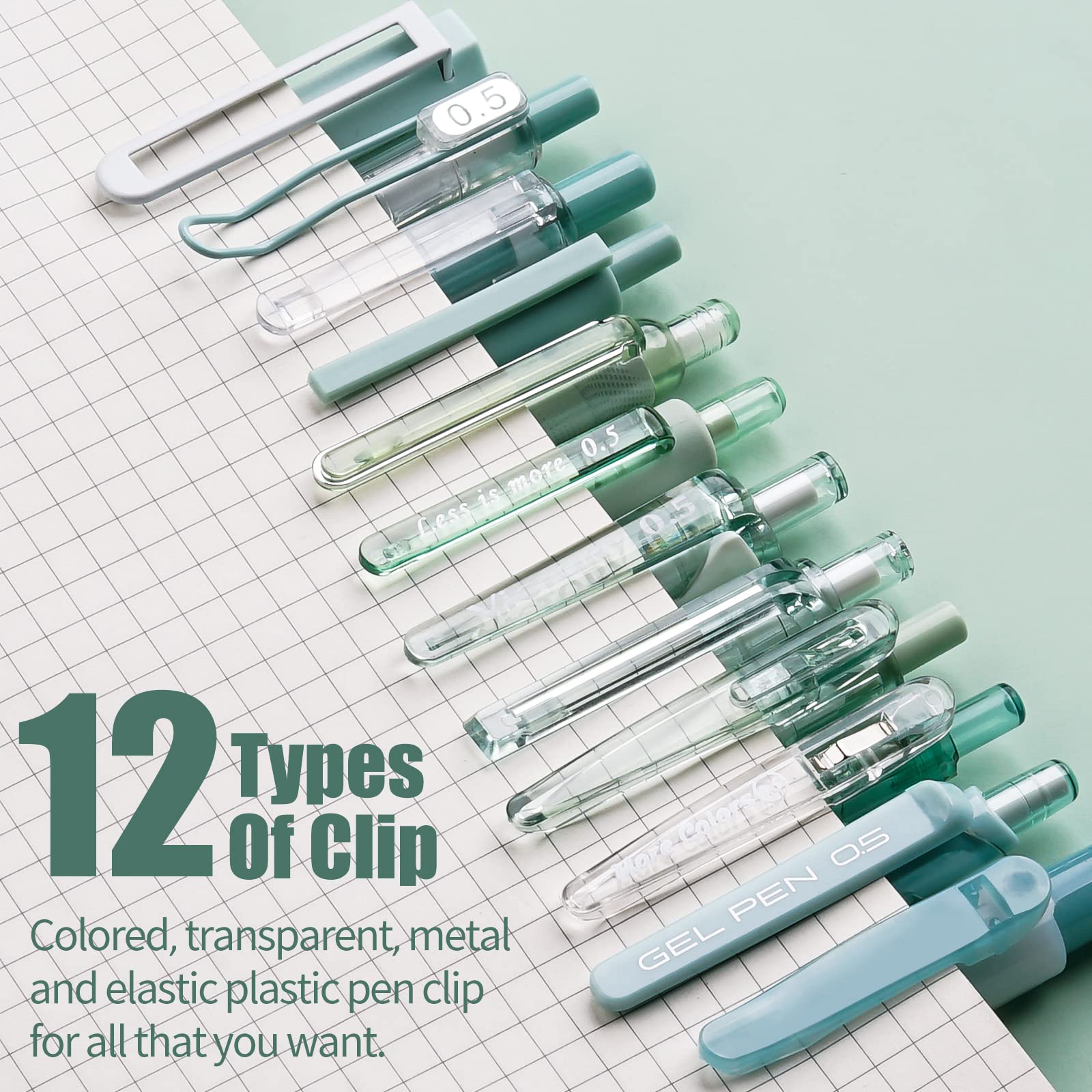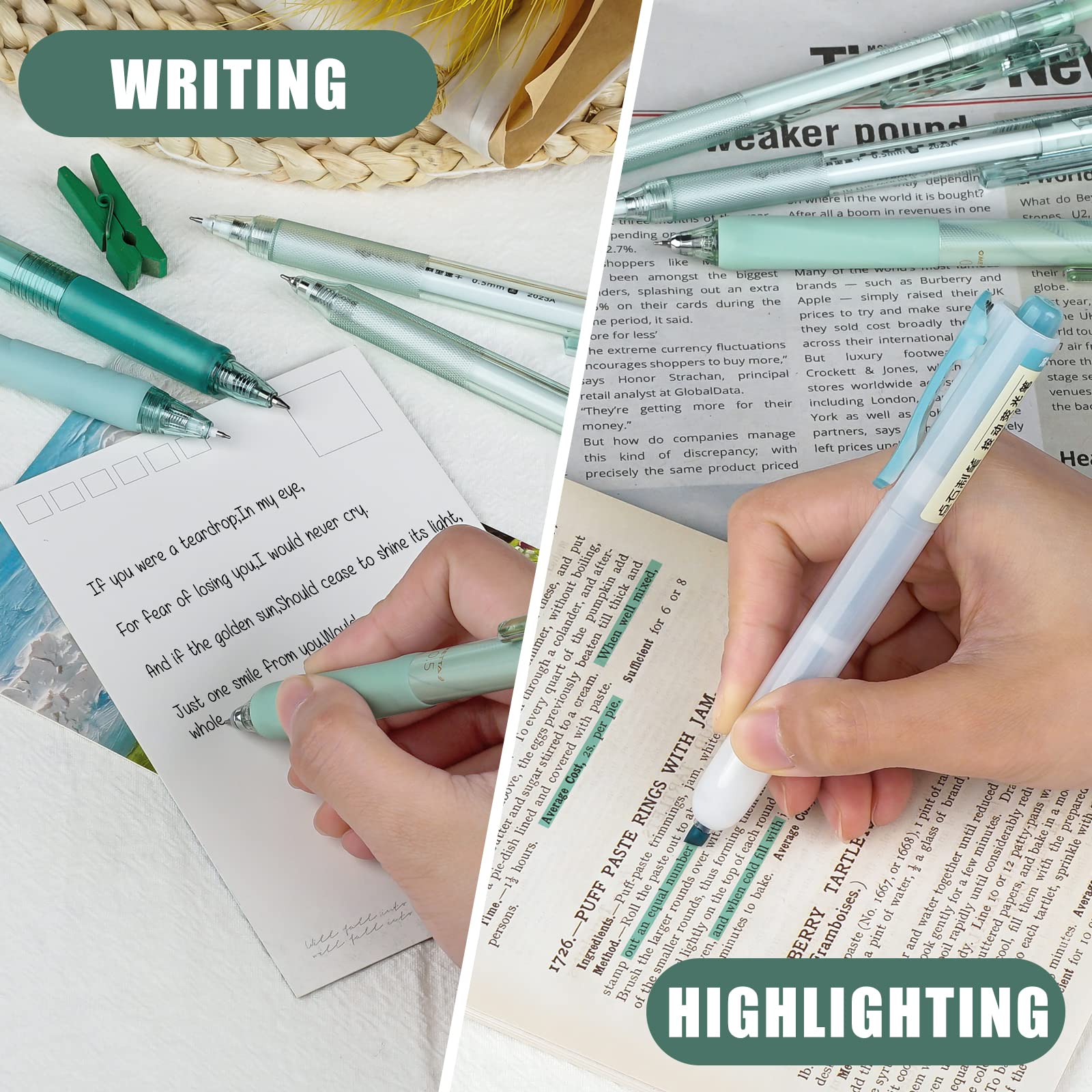 Cute & Aesthetic Desk Essential: Add a dreamy mint-green or teal pop to your workspace with these stylish pens; Their pastel accents and sleek clips make them a must-have for nurses, students, and office stationery lovers who adore viral-worthy supplies; Contains 10 pcs black gel pens, 1 green ink pen and 1 pc highlighter