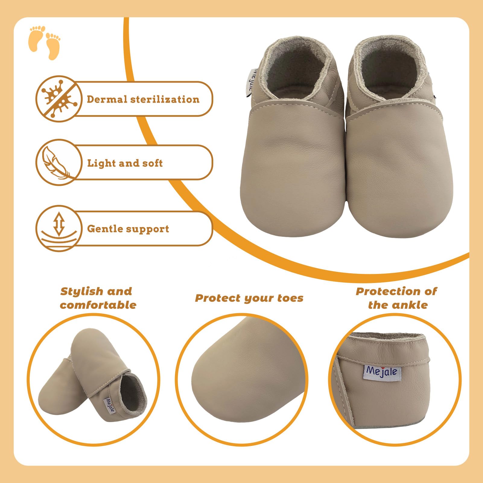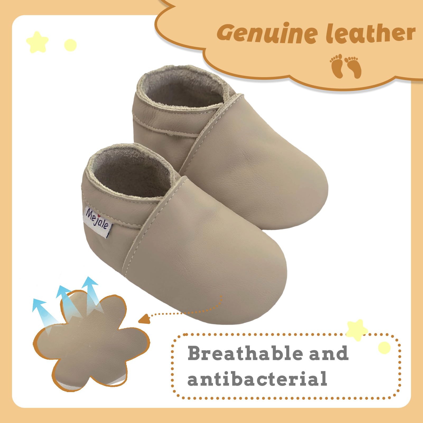 β₯Made of genuine soft Leather, slip-on shoes with elastic ankle, great shoes between a sock and a shoe for beginning crawlers and walkers. The moccasins soft leather can protect the baby's feet and enable them to learn to walk in a positive and natural manner
