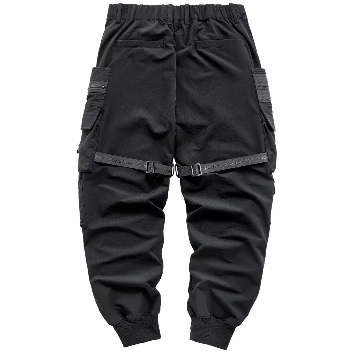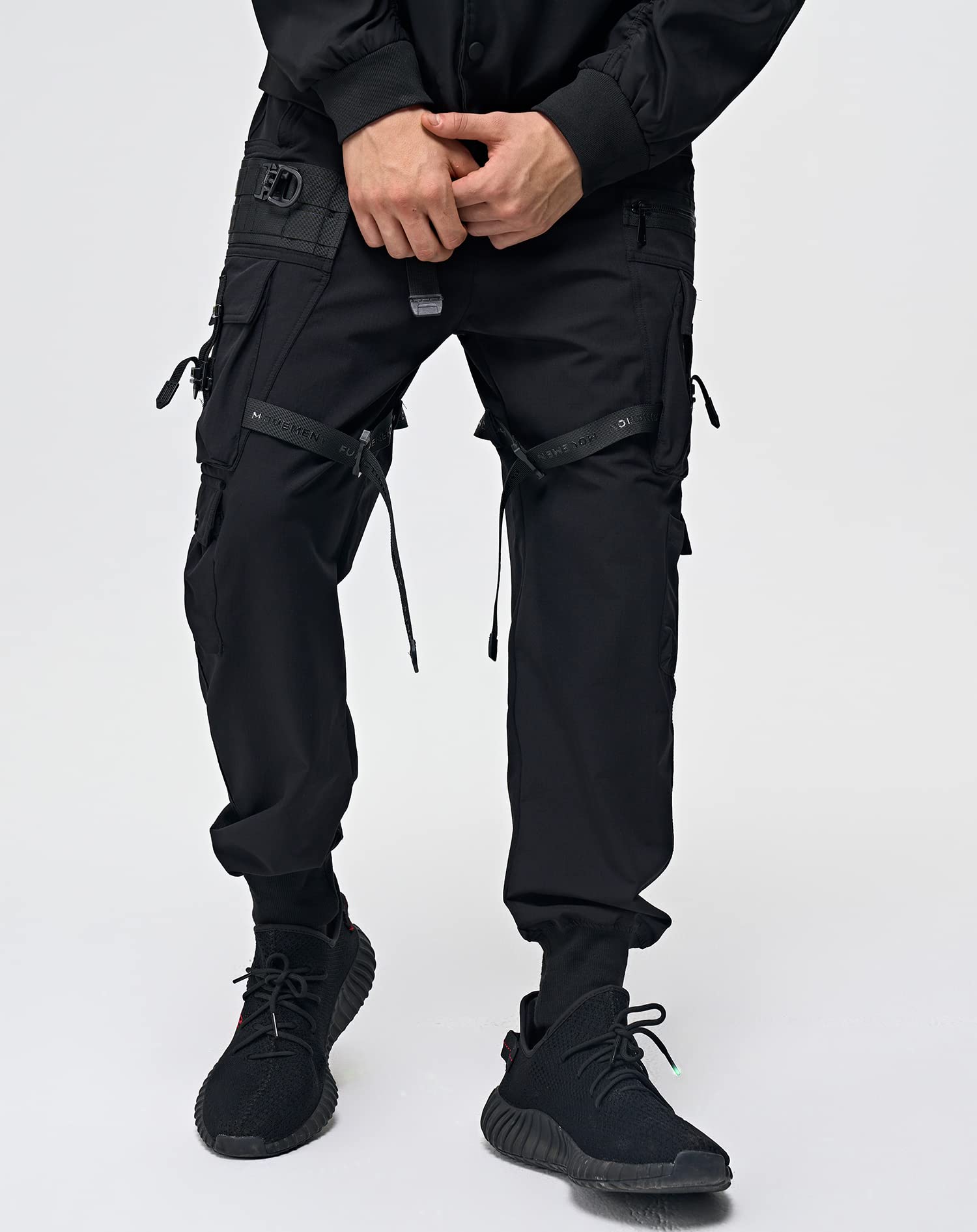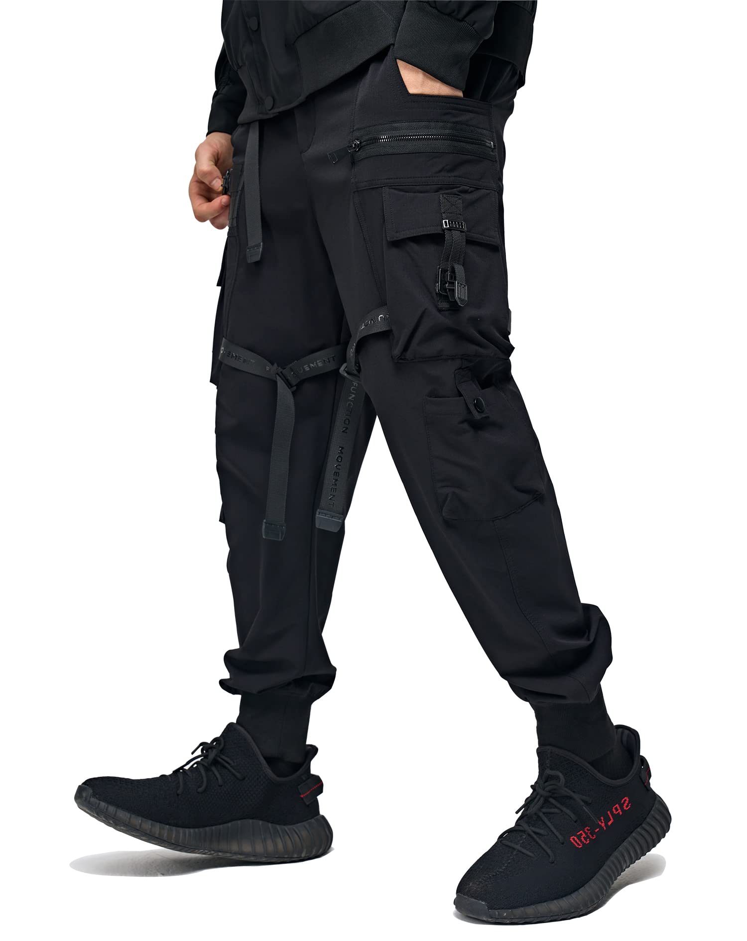 Description Techwear cargo pants made from power stretch material for comfort and fit. Cut in a relaxed fit silhouette. Features utility style cargo pockets for extra storage. These jogger pants perfect for both streetwear and techwear enthusiasts.