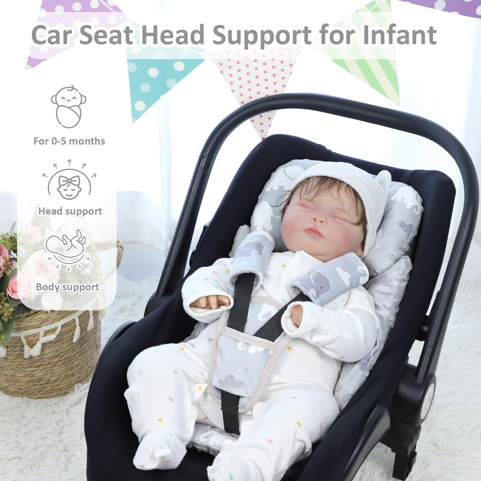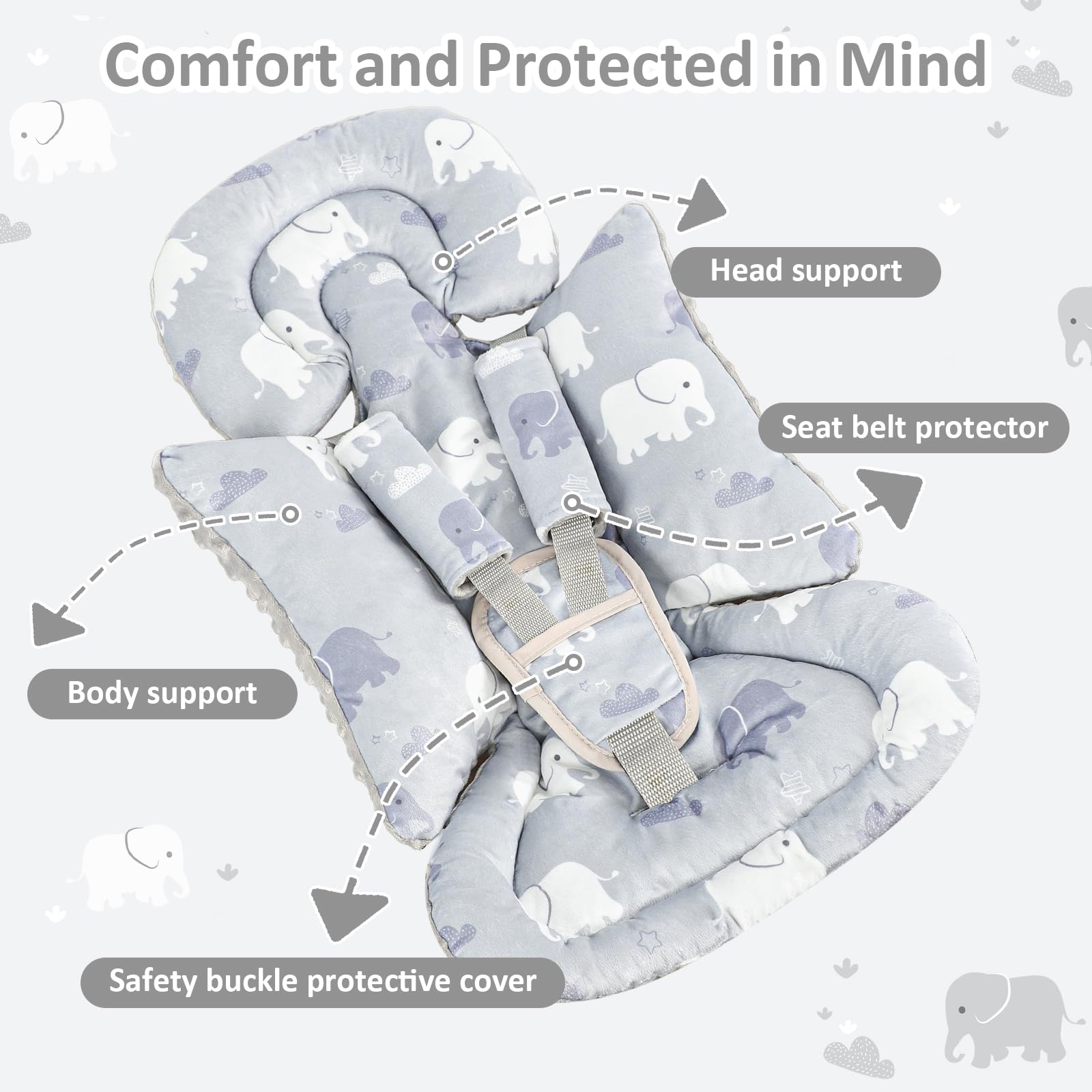 Thickened Head & Body Support: The Newborn carseat insert designed with full and thick head fillings provides the most effective head support for babies, Comfort of highly filled natural cotton in the body provides good body support for the baby.