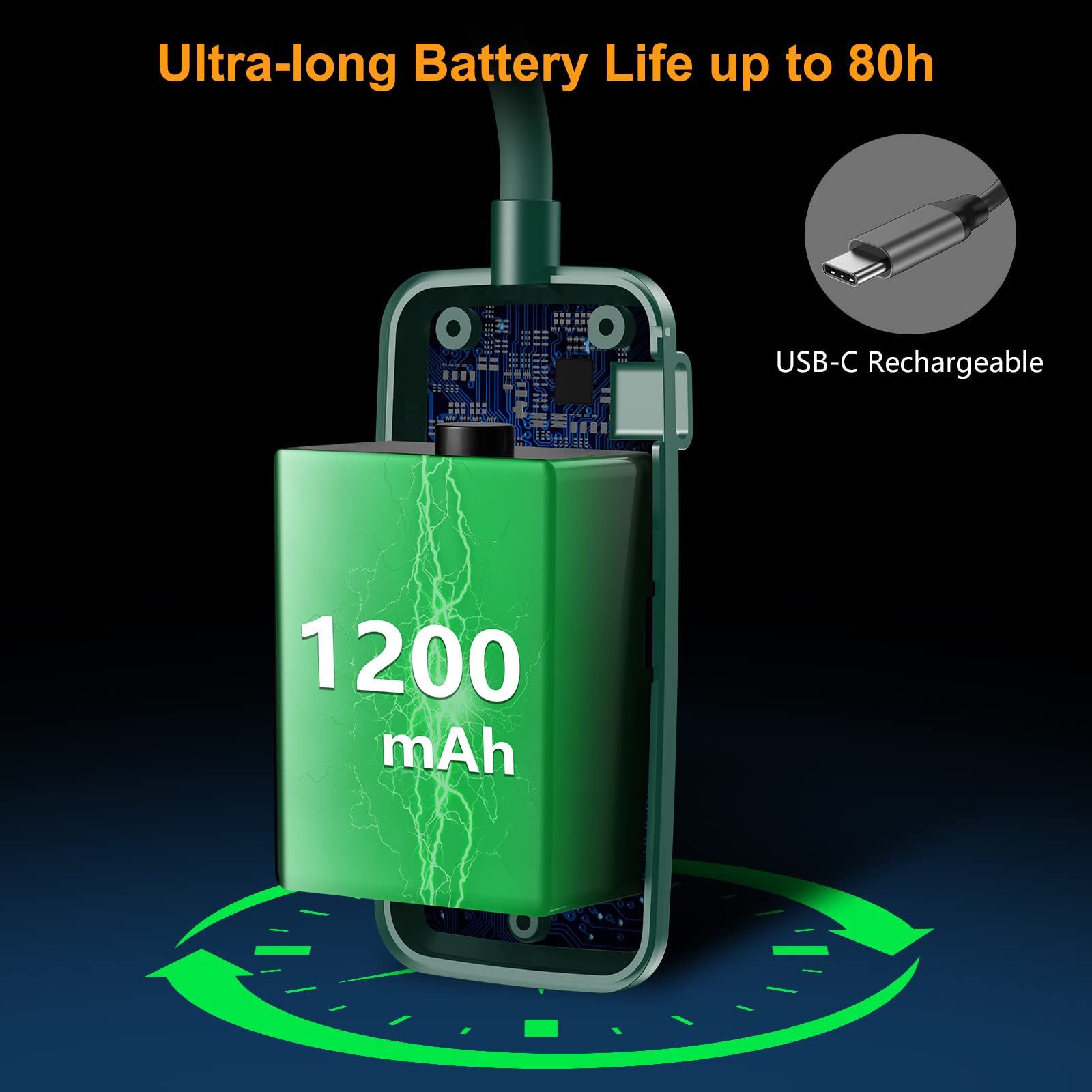 Rechargeable & Long-Lasting: Built-in 1200 mAh high-capacity battery, the reading light can provide you with 8-80 hours of long-lasting illumination. It only takes two hours to fully charge, and 4 LED indicators can show the real-time power level