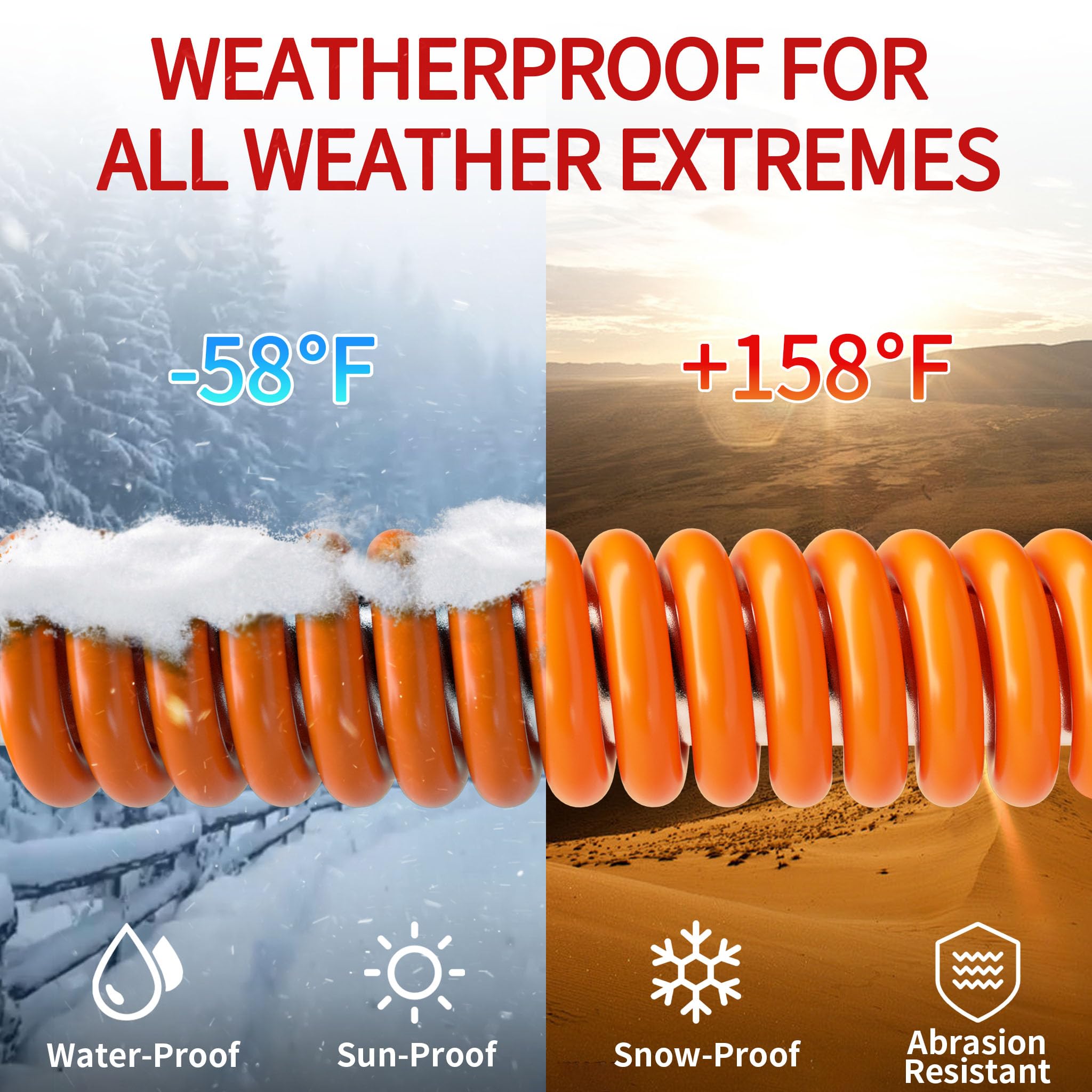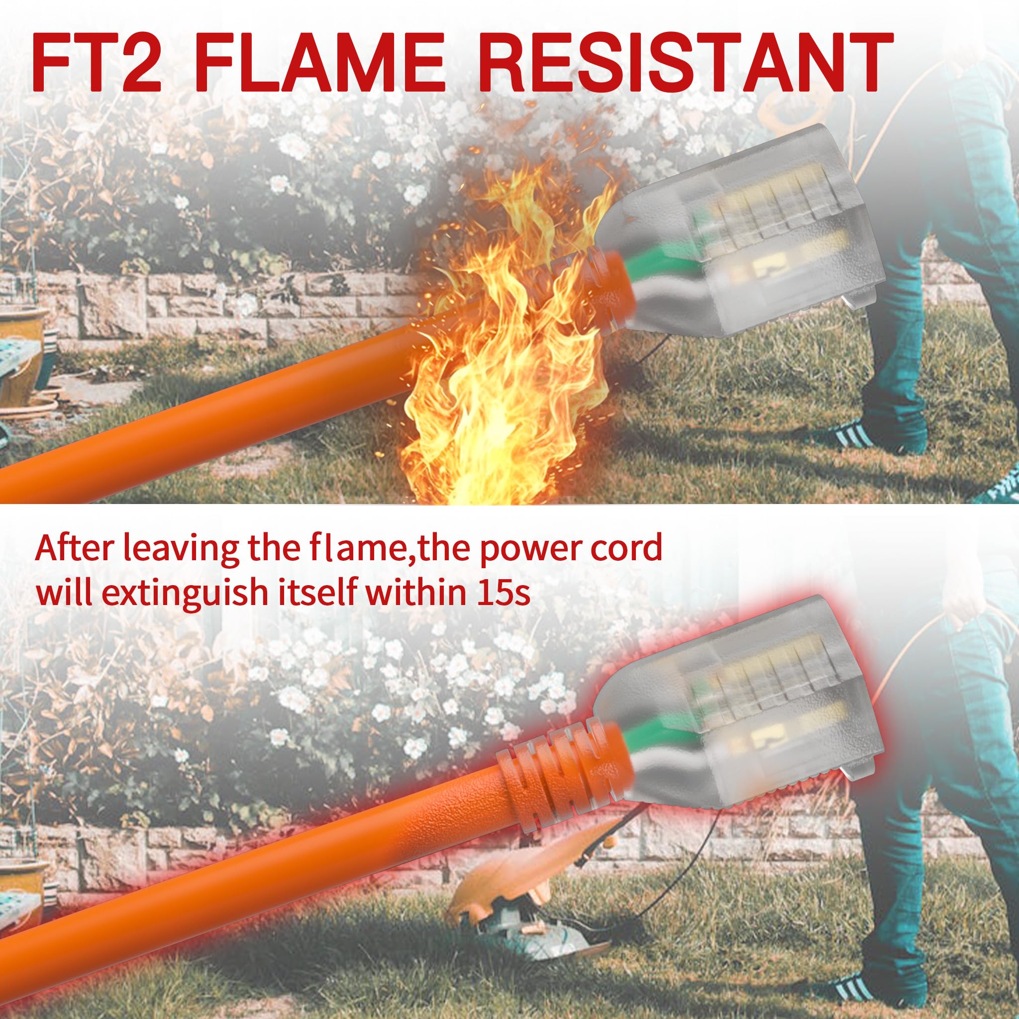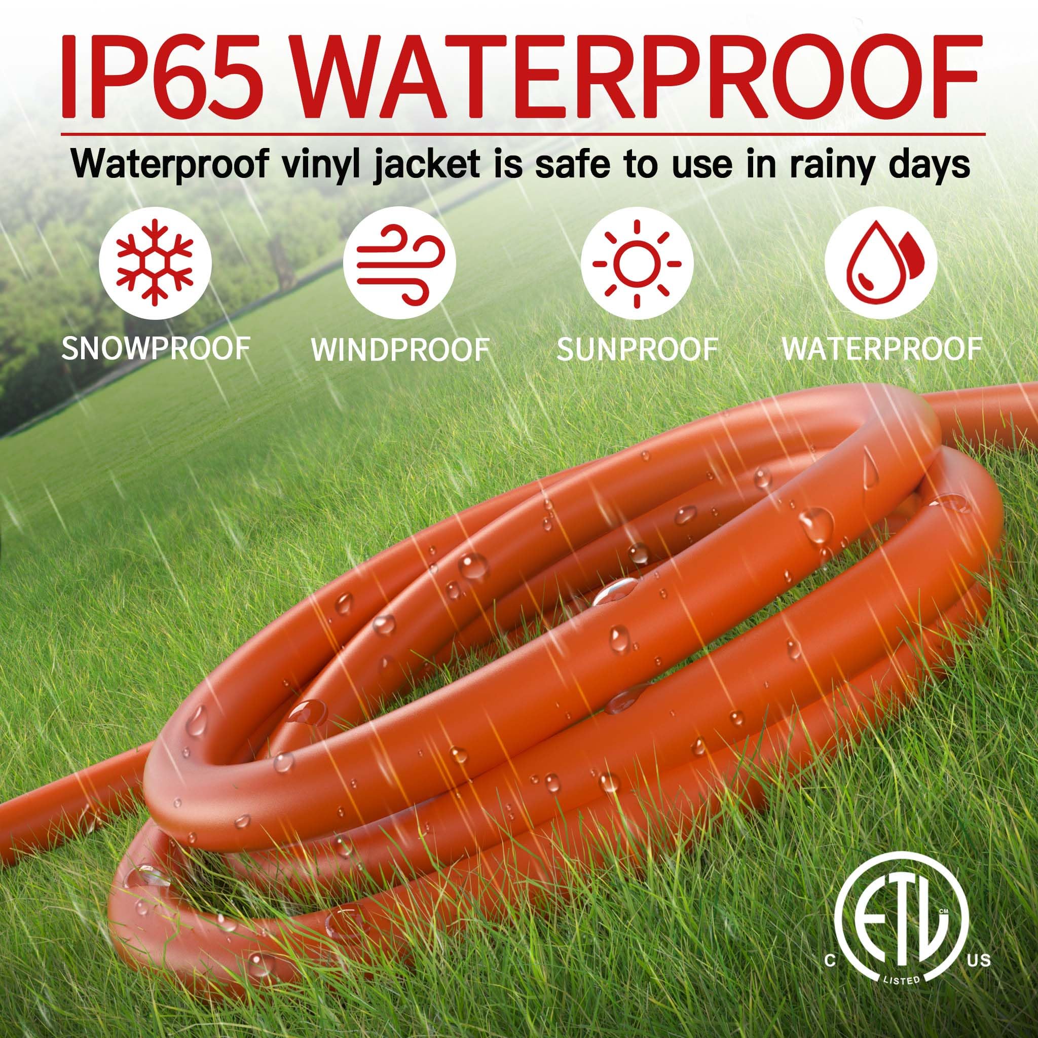 Weatherproof & Abrasion-resistant: 6ft extension cord designed to withstand the elements; 6 foot extension cord is waterproof and weatherproof; Confidently use orange extension cord outside without worrying about damage caused by wind, sun UV,rain, snow, or extreme temperatures; It's abrasion-resistant to combat drag when you're on rough and rugged surfaces