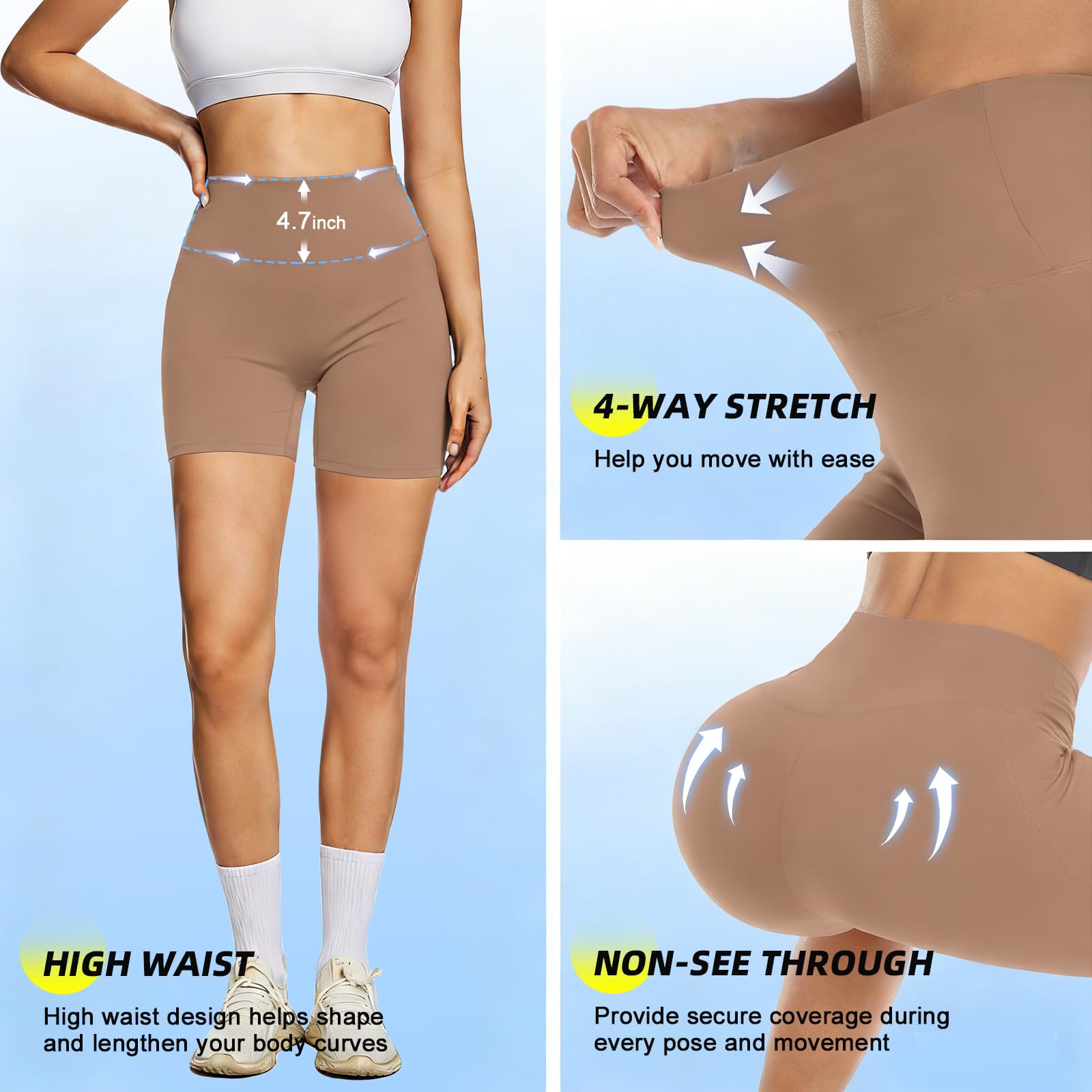 4 WAYS STRETCH & NON-SEE-THROUGH - This workout spandex shorts for women is made of 4 way stretch and non see through fabric, which provides maximum comfort and protection during your every pose and movement, allows for maximum comfort and wear ability