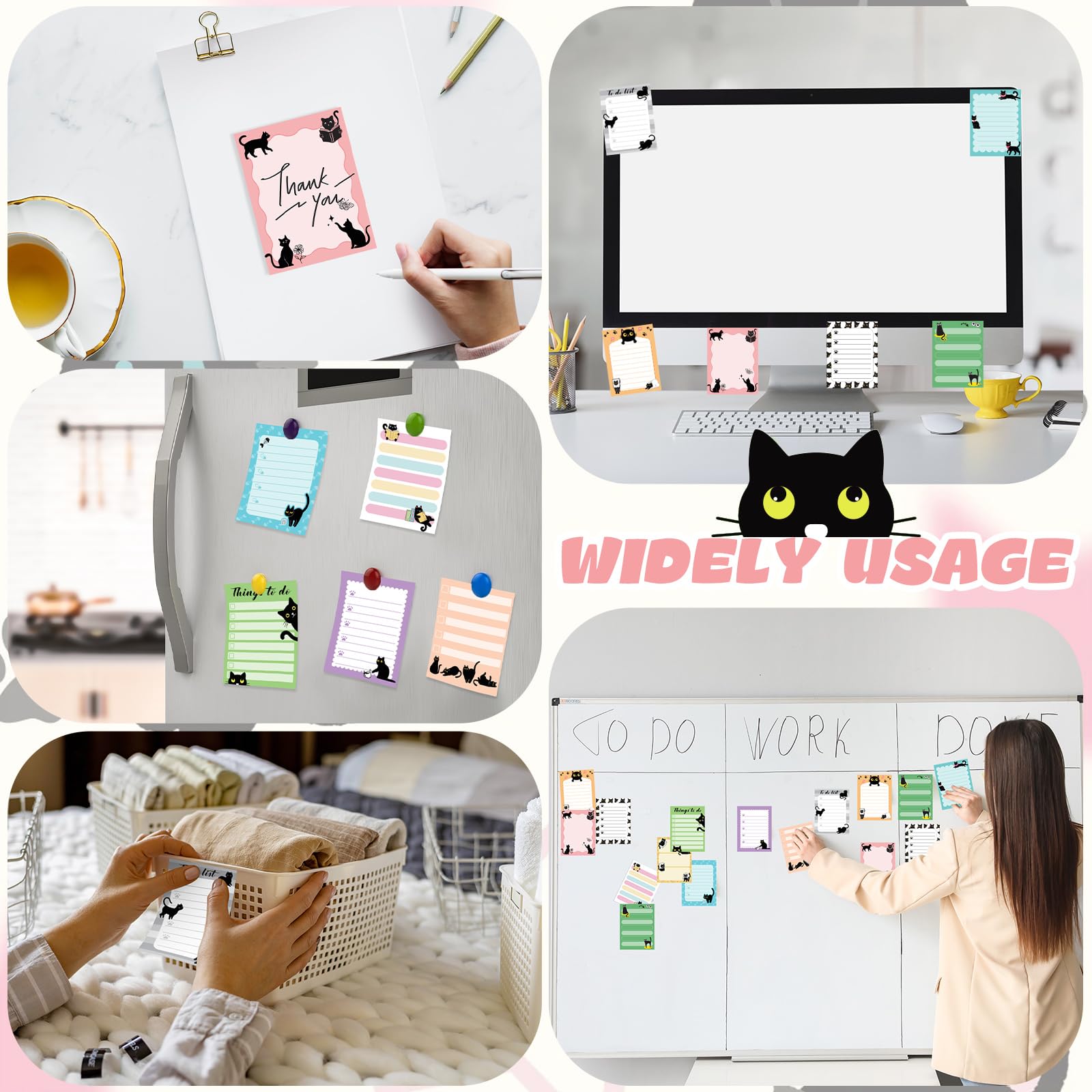 Adhesiveness and Detachability: with good adhesion, these black cat sticky notes can be easily pasted on smooth and dry surfaces, such as textbooks, notebooks, refrigerators, blackboards, walls, windows, doors, bulletin boards, etc., and can be easily removed without leaving stains