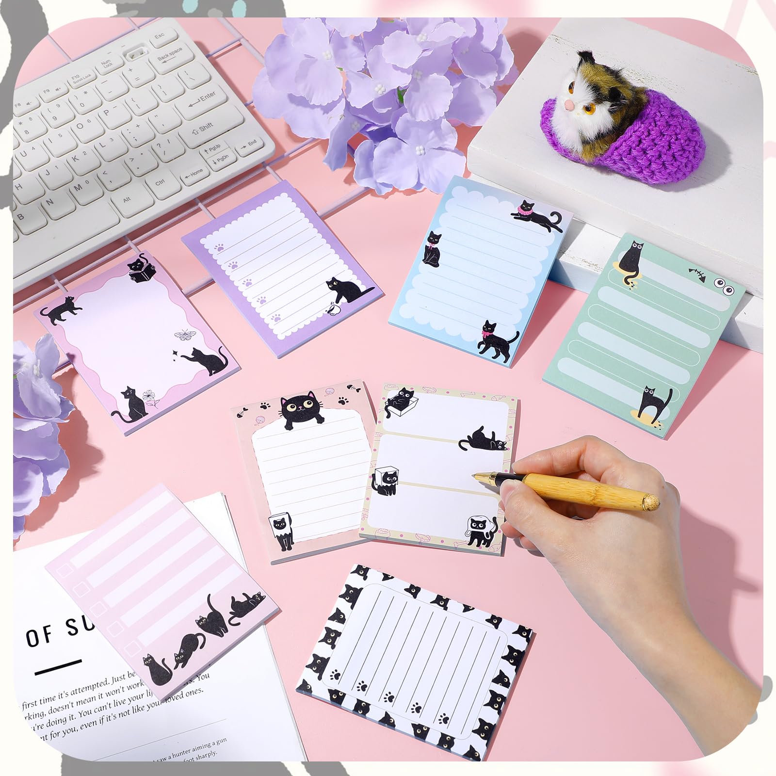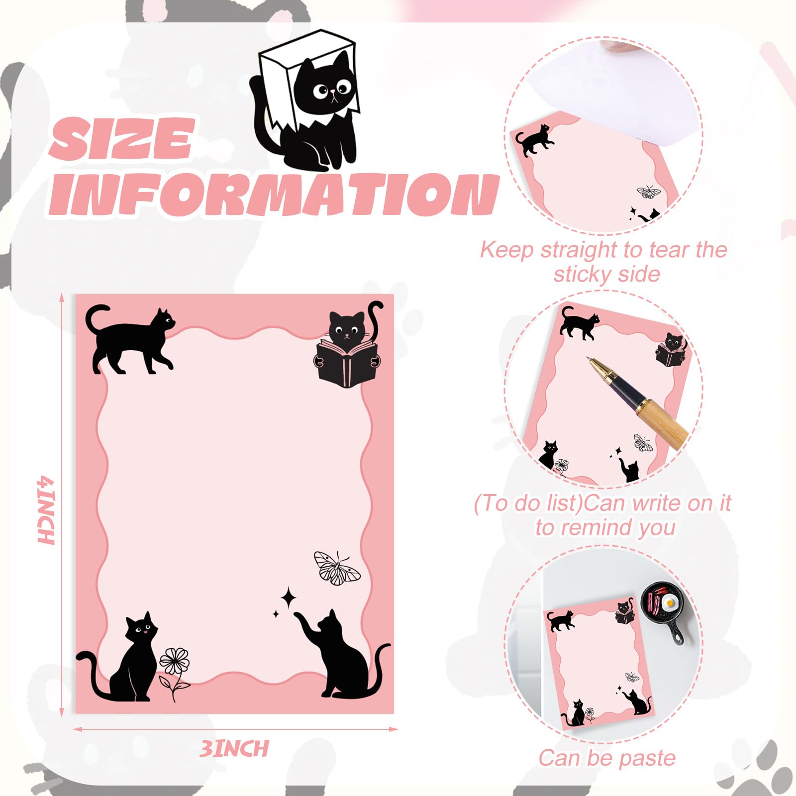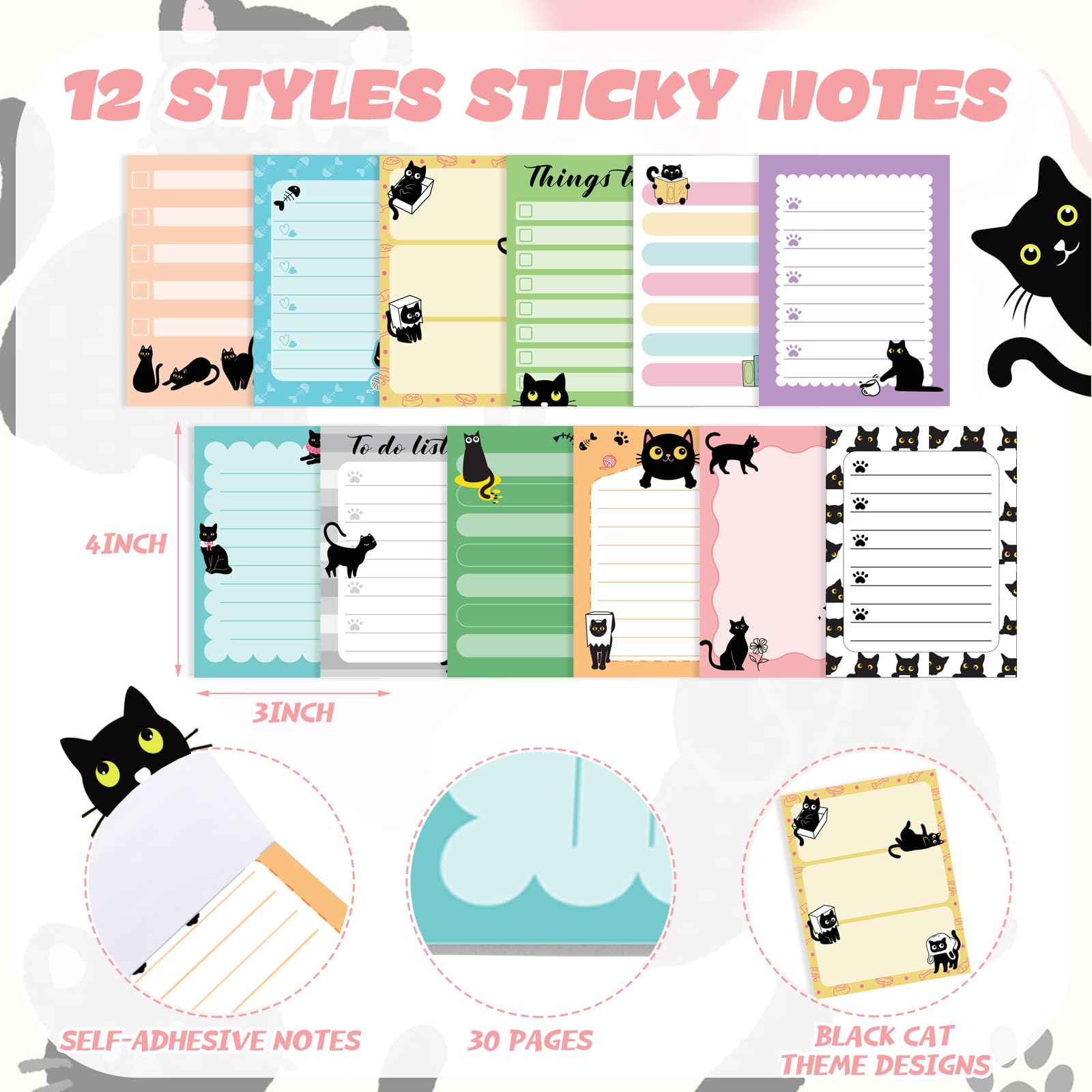 cute sticky notes set:you will receive 12 pieces of black cat themed sticky notes, packaged with 30 pages each, for a total of 360 sheets; The dimensions are a handy 3x4 inches /7.6x10 cm, enough quantity and rich design to meet your various needs and replacements