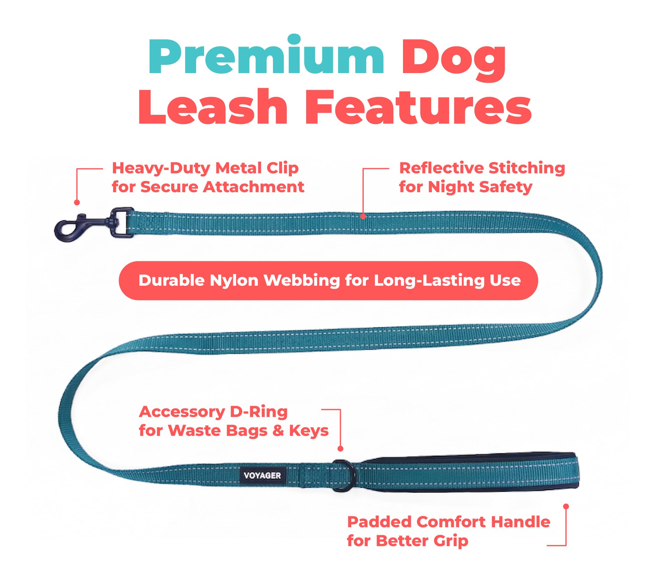 Premium All-Purpose Dog Leash – Voyager 5’ dog leash is designed to support pet owners and dogs who lead active lifestyles which means they’re ideal for jogging, running, trips to the dog park, hiking, late-night walks, and more