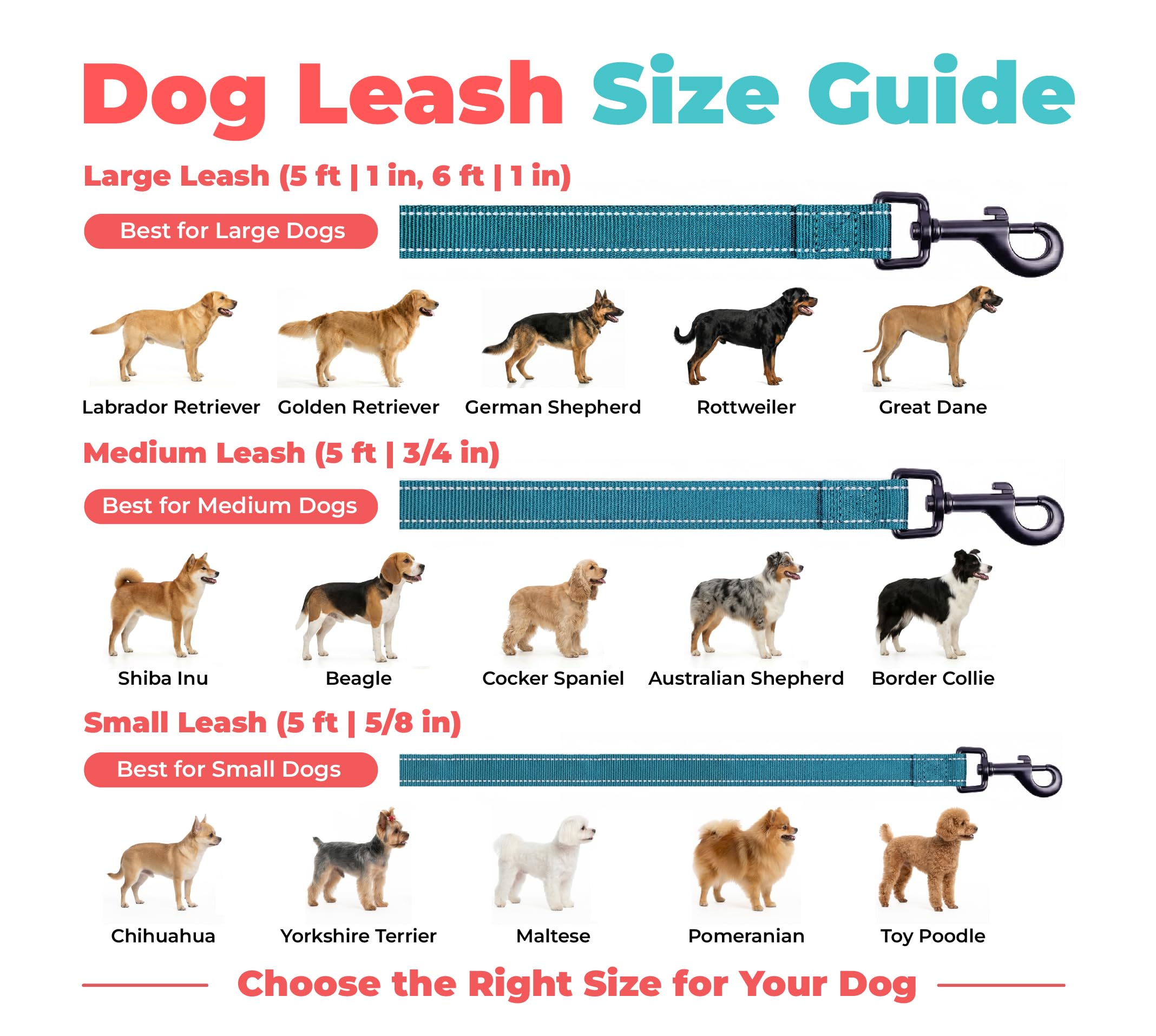 Comfortable Neoprene Handle – Our cute dog leash features a cushioned neoprene handle on the end to give pet owners more comfort and control when managing their dog, so the leash doesn’t dig into your hand when they’re tugging