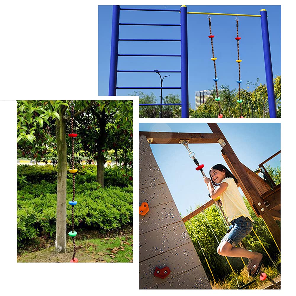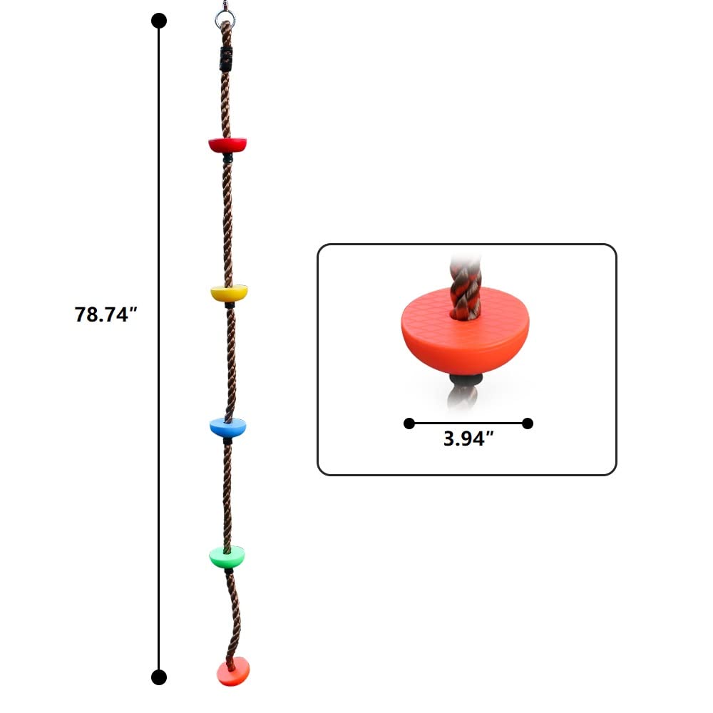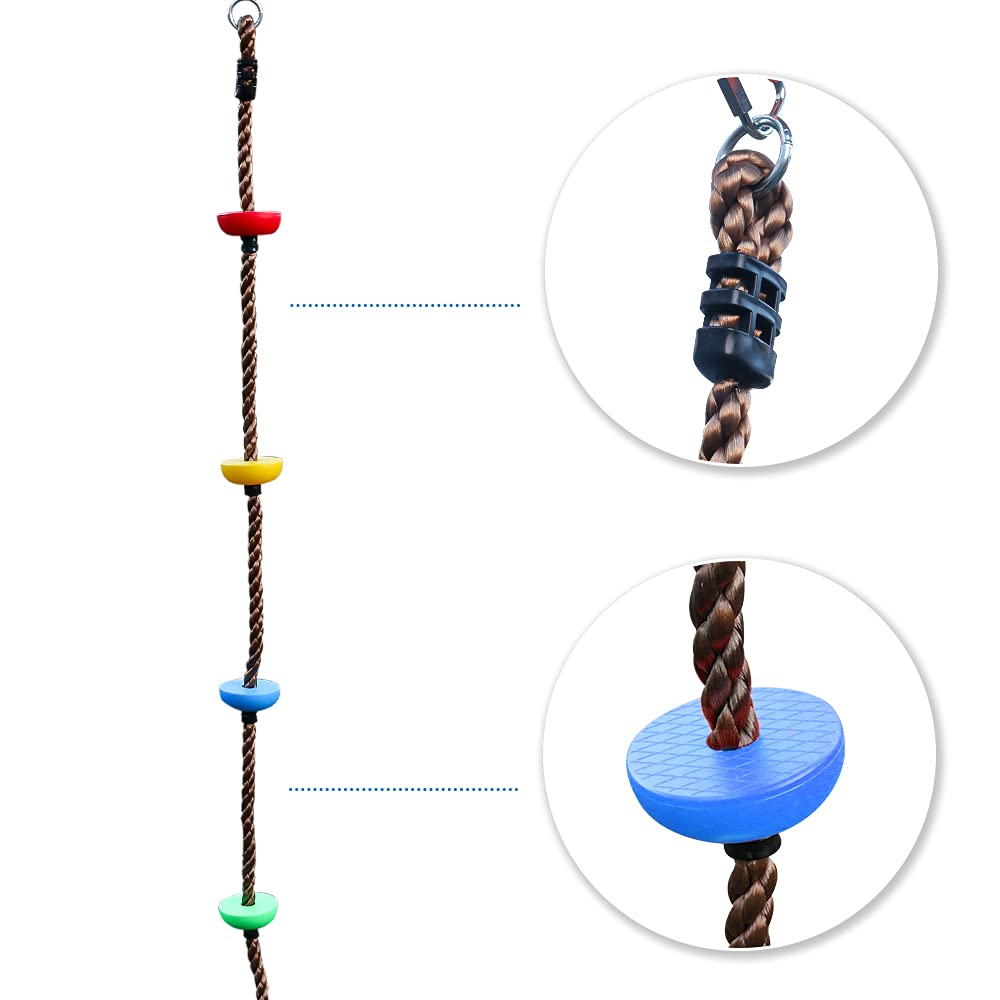 Climbing rope made of robust, weather-resistant material is constructed with sturdy footrests. The climbing rope holds up to 300lbs (approx. 1 adult + 1 child).