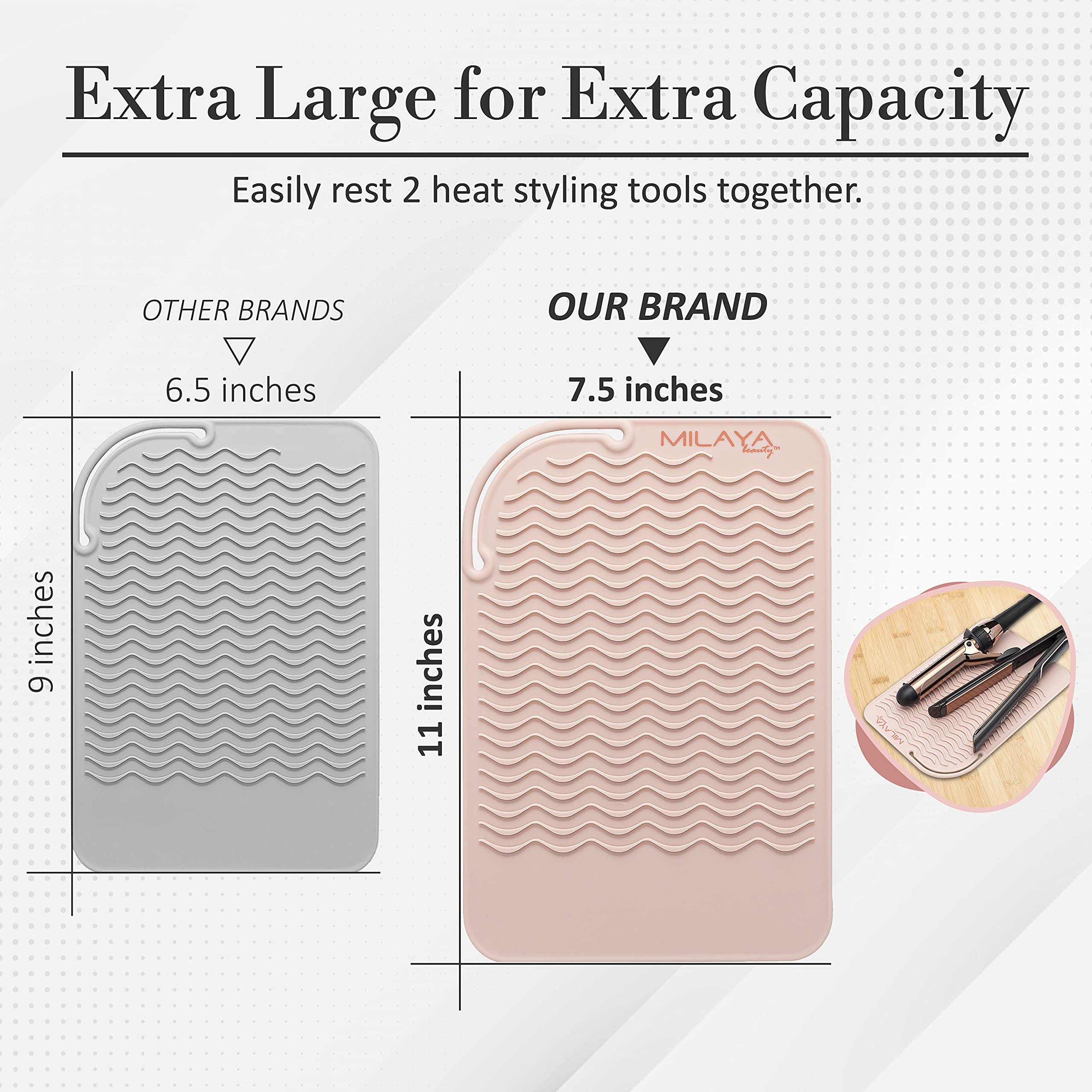 Our heat resistant silicone mat shields all types of surfaces from the heat of flat irons, curling wands, and other hair styling tools. Perfect for use at home, work, during travel, or in storage, it’s ideal for hair salons and hair stylists on the go. An essential addition to both vanity decor and vanity accessories.