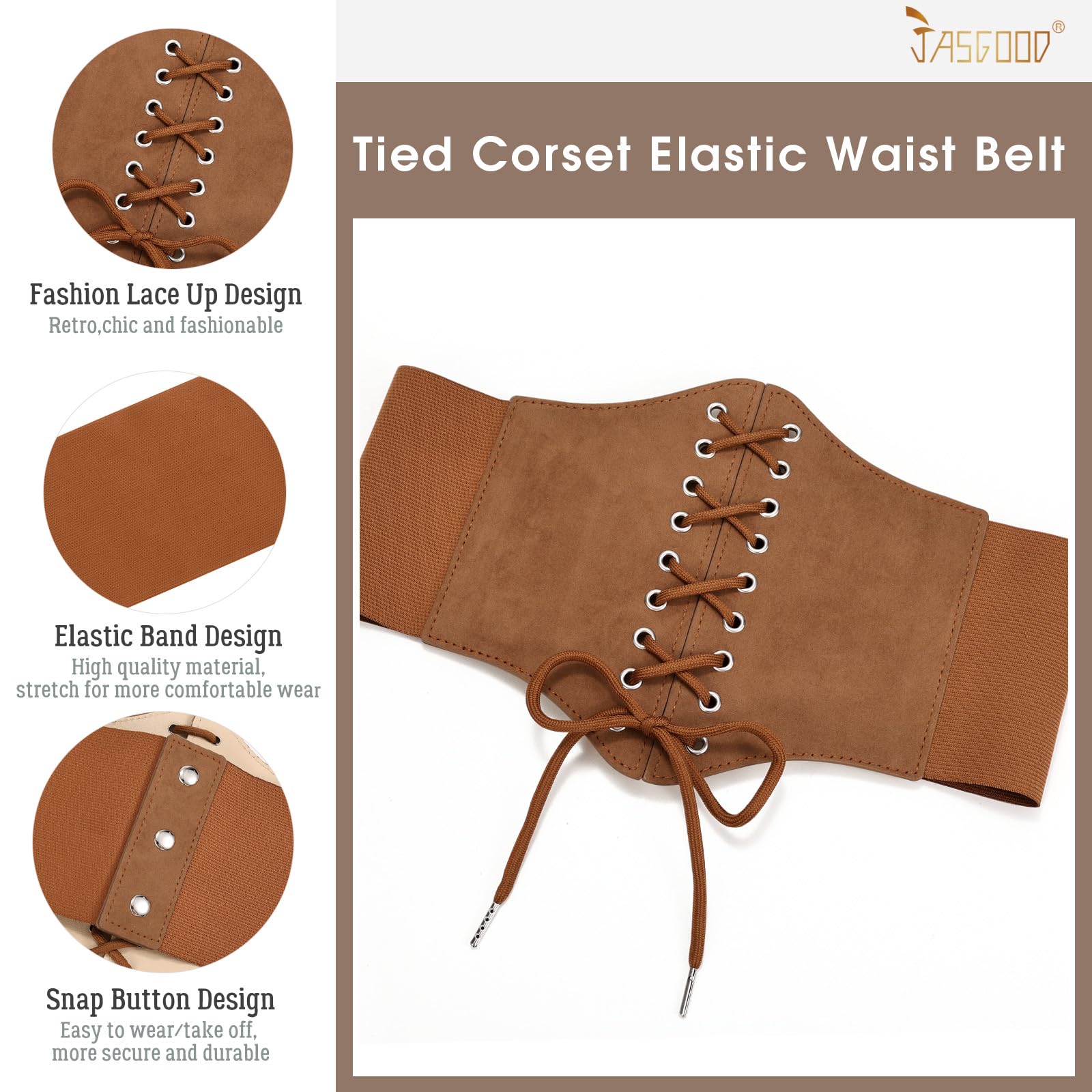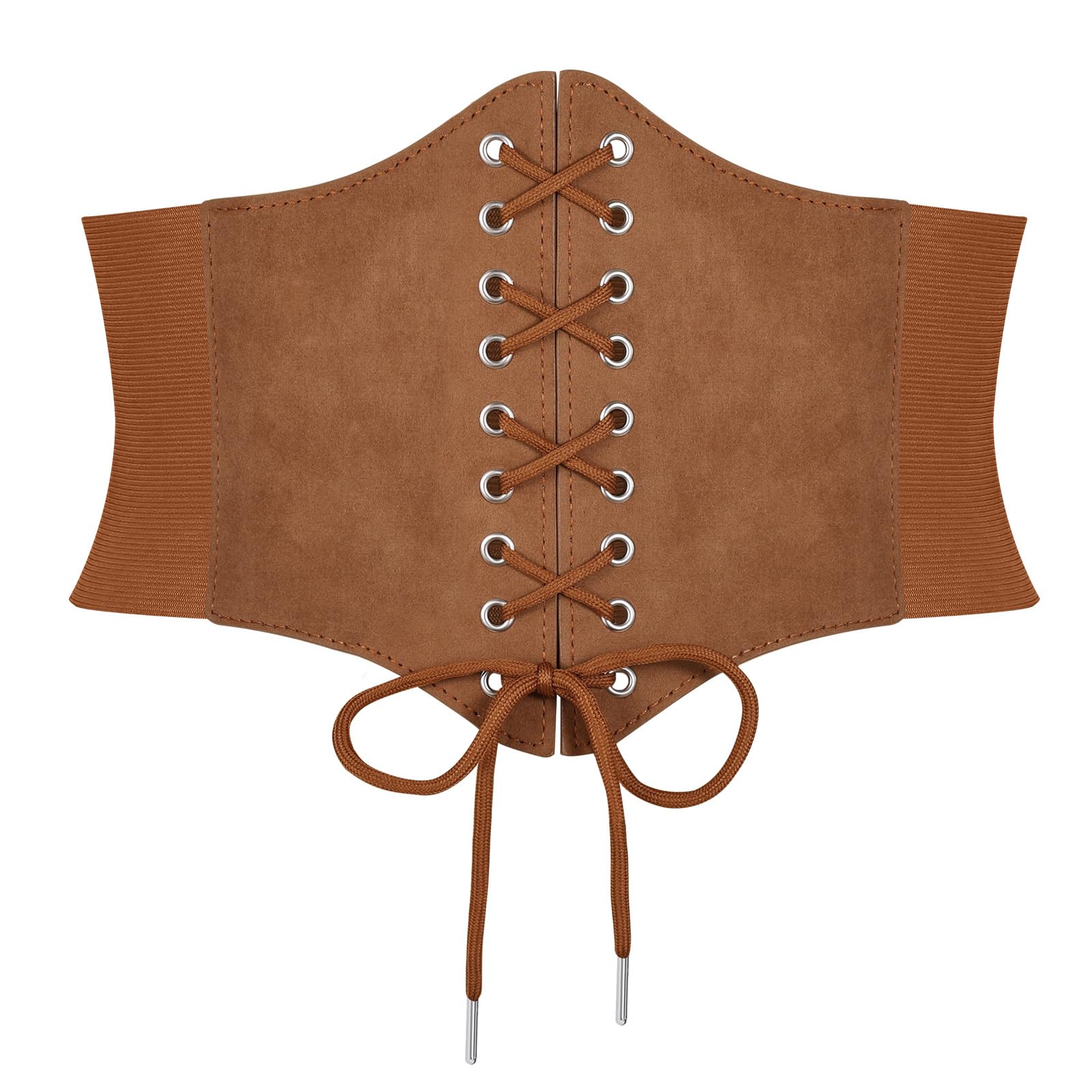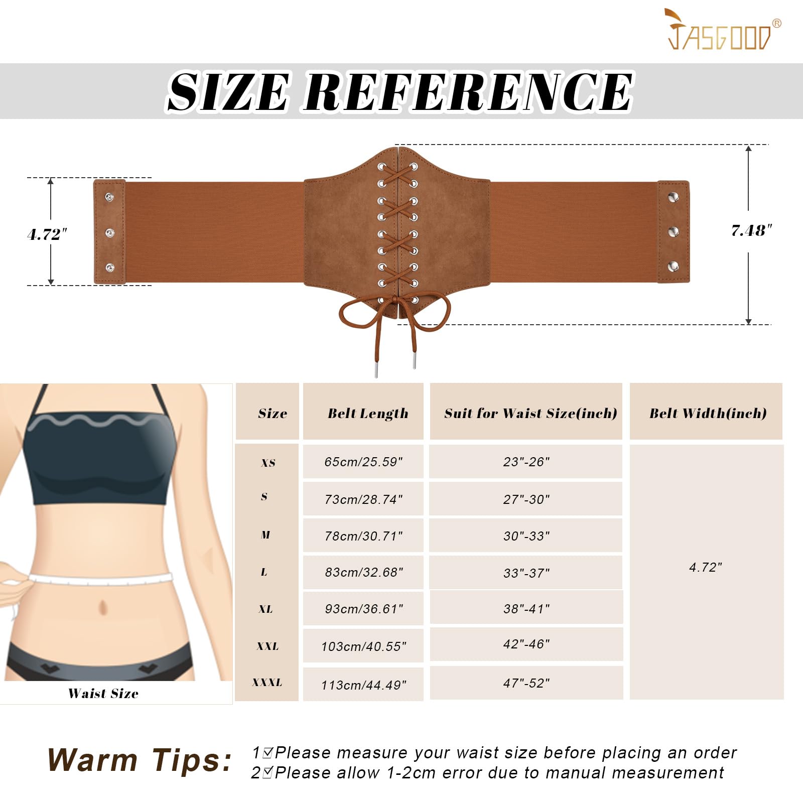 CLASSIC DESIGN– Classic vintage style leather lace-up tied waspie corset belt, quality PU leather front sewed with well elastic wide band, fastened by 3 snap buttons, which is easy to put on and remove. This waspie corset belt is super comfortable to wear. Flatters your waist. The 7.6" width prevents dress belt from rolling up or rolling down in wearing.