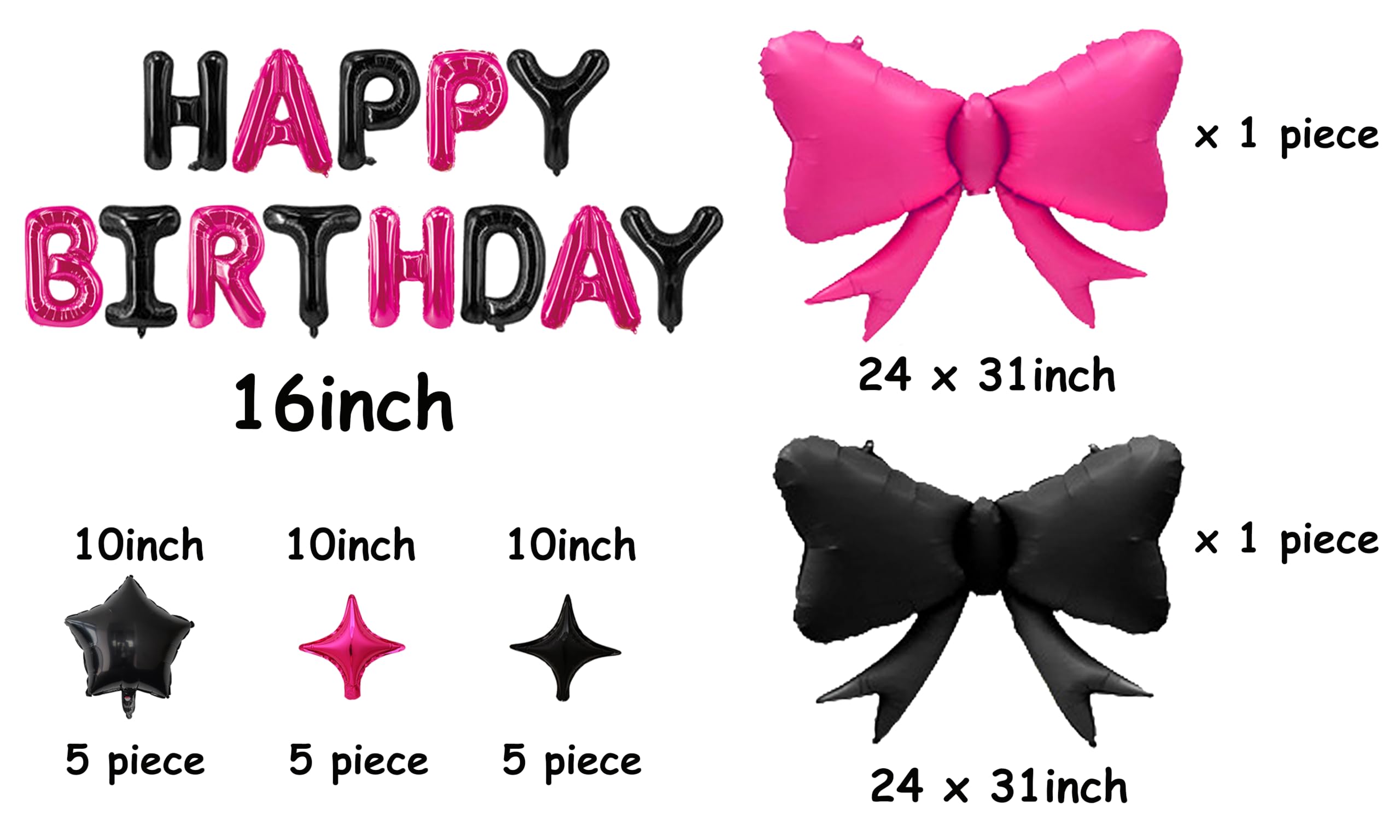 Happy Birthday Balloons Black & Hot Pink for Kids and Adults Birthday Party Decorations Supplies (Hot Pink Bow set)