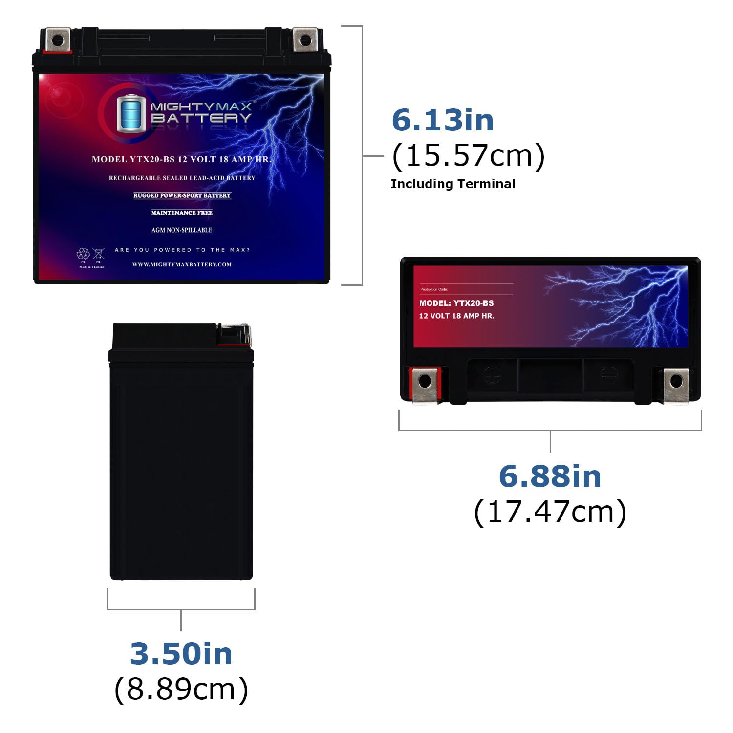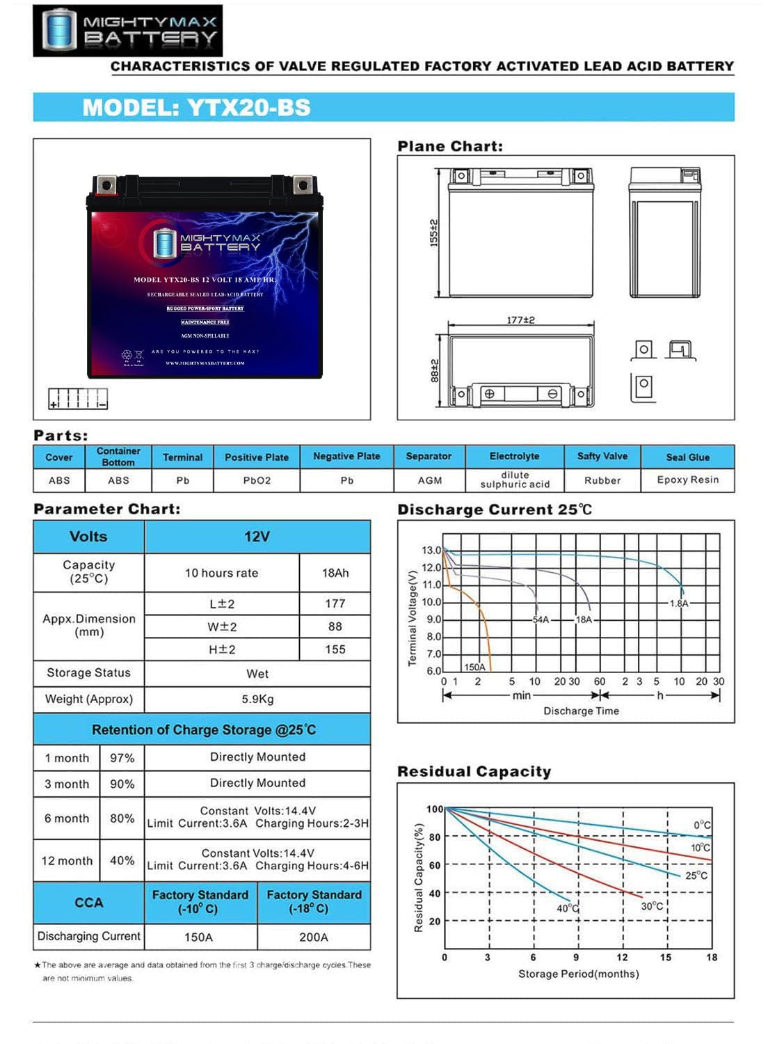 YTX20-BS is a 12V 18AH 270 Cold Cranking Amps (CCA) Sealed Lead Acid (SLA) Battery